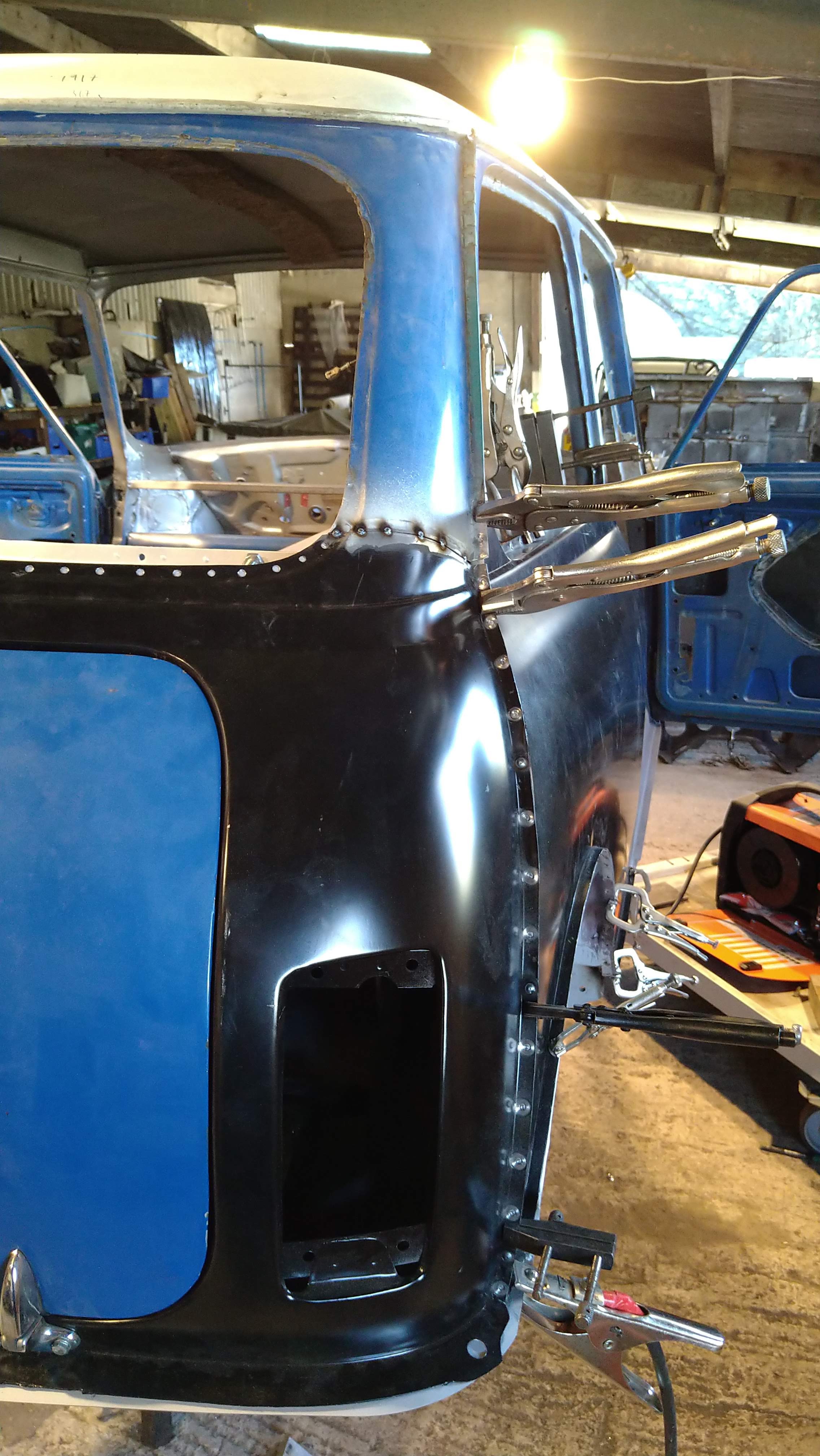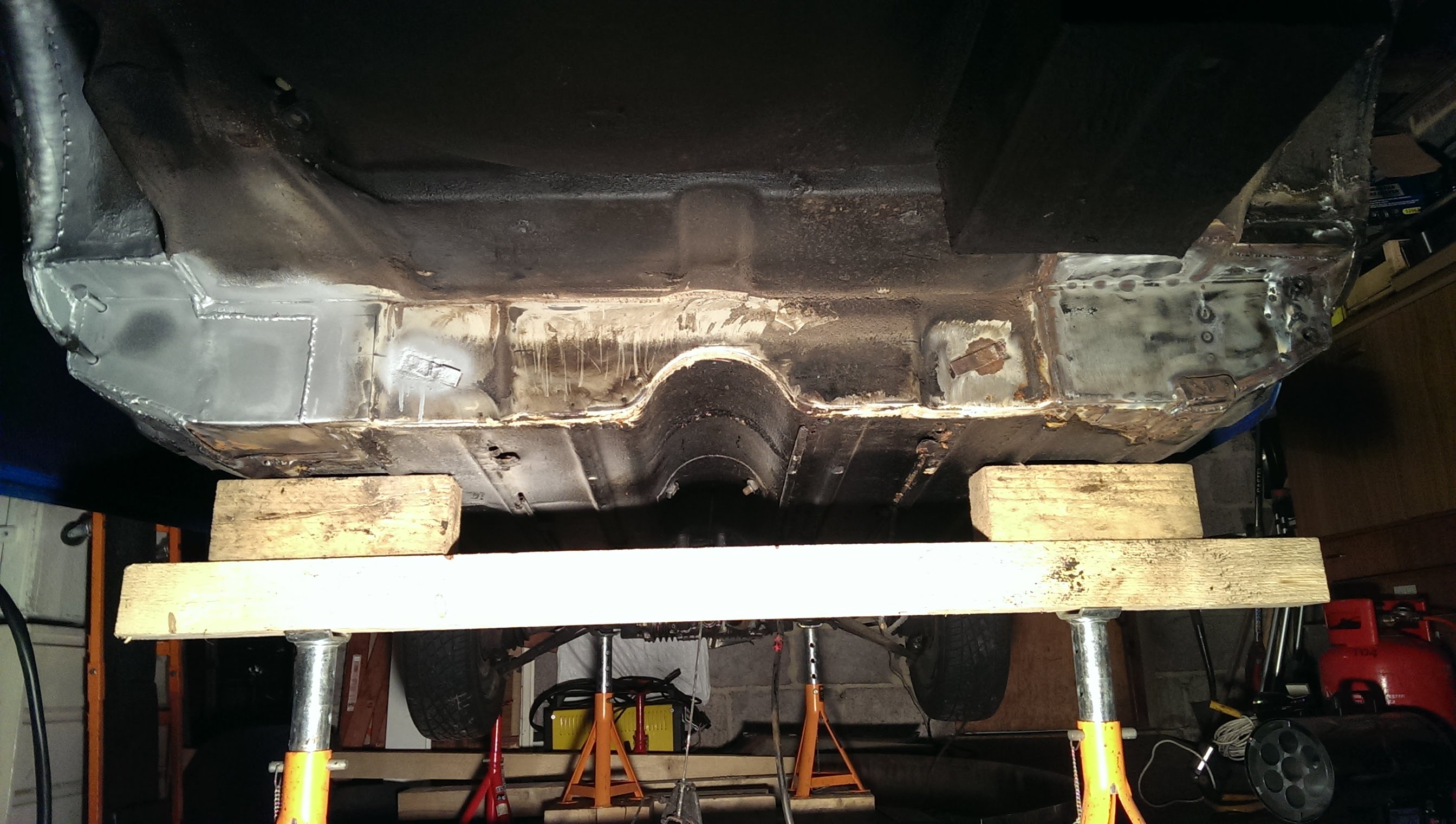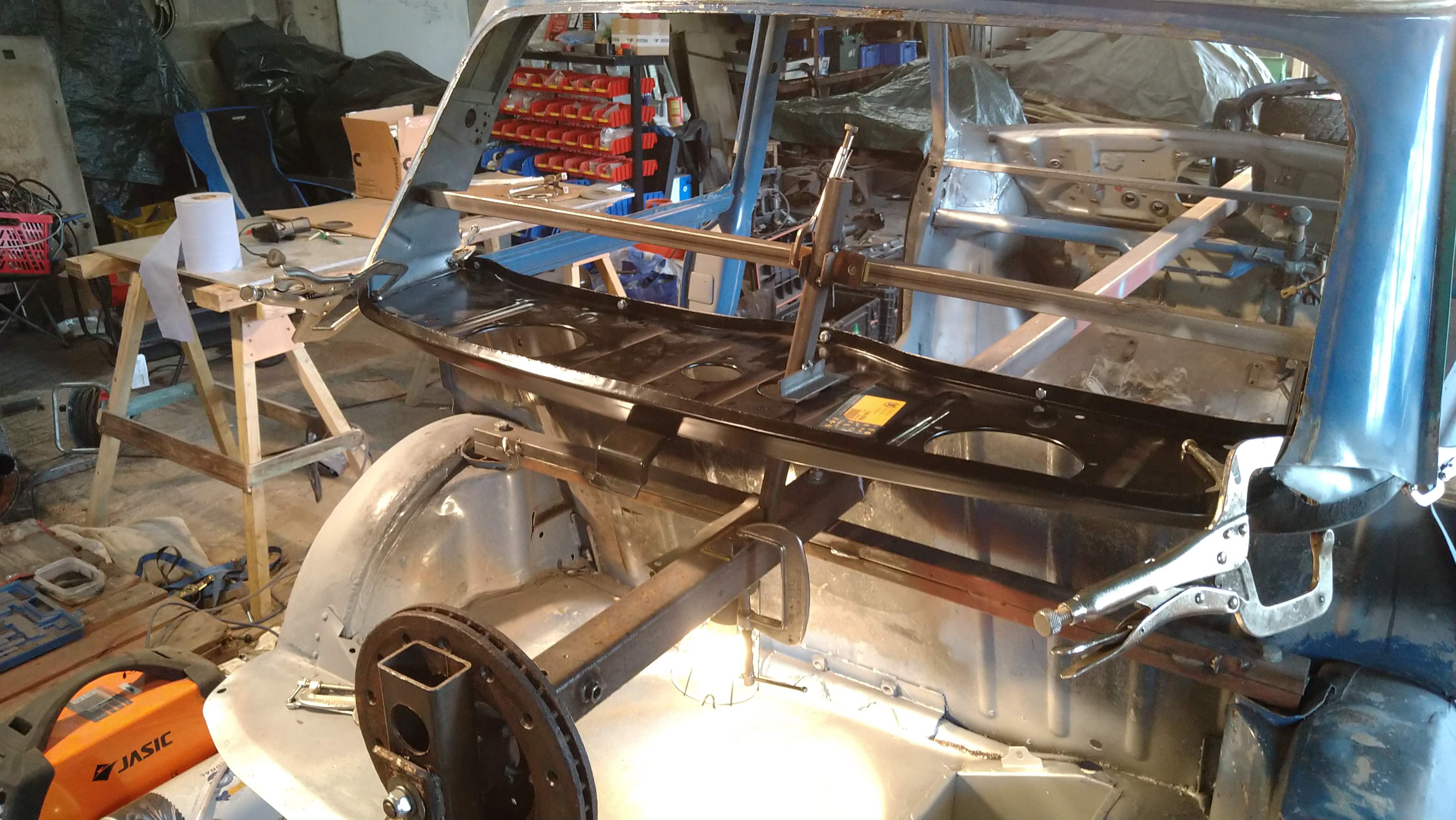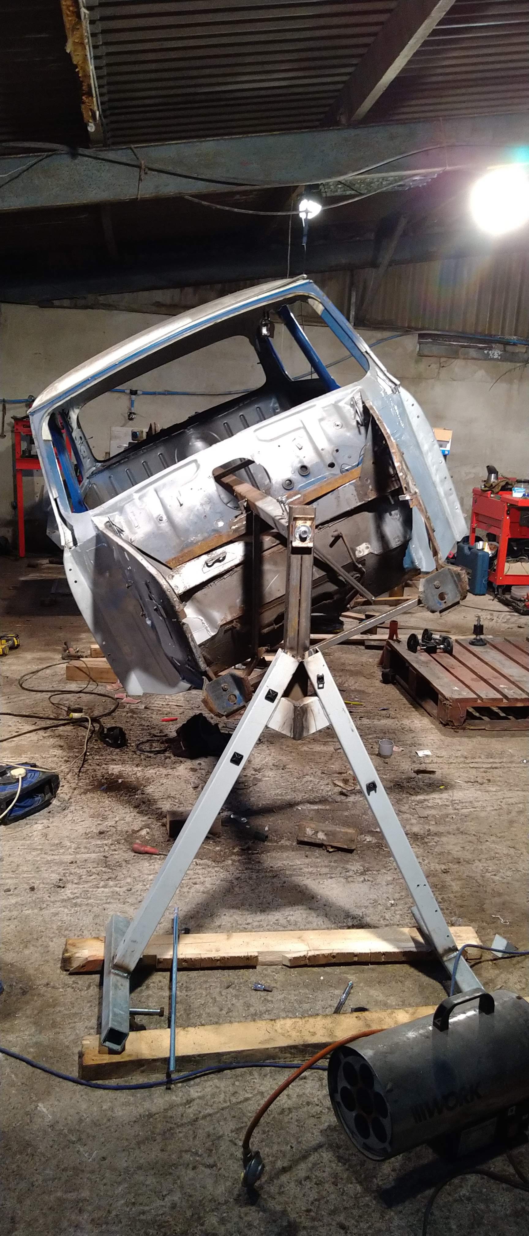 The rust just kept on appearing on pretty much every panel. So got it off the massive axel stands and built the most scrap-heap-challenge roll over jig you’ve ever seen. But it worked.