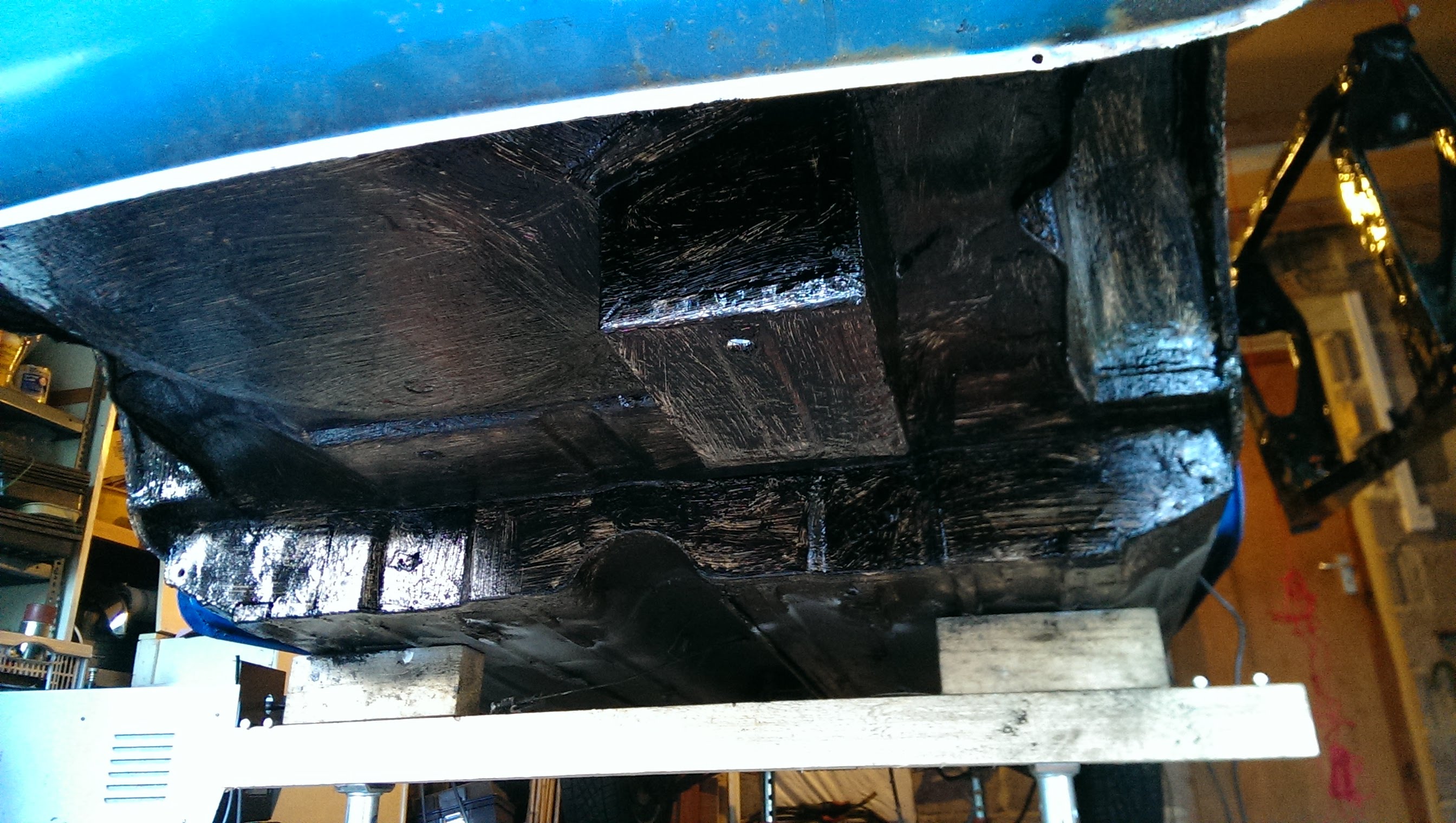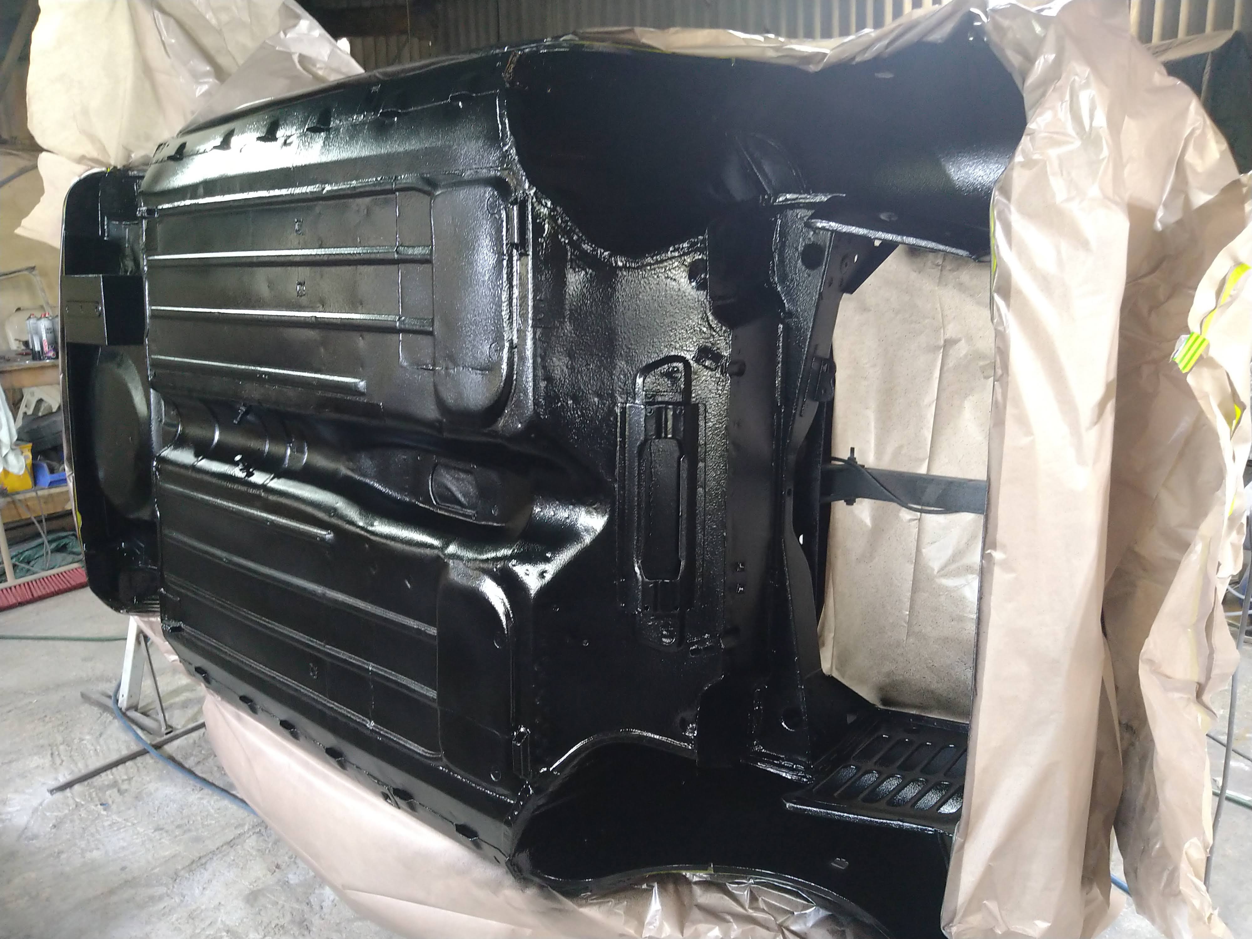 Then on to the underneath. Raptor Epoxy followed by Gavitex, then a thin coat of some old chassis paint I found in the corner of the barn (think it was from Andy’s Landrover 8 years ago!)