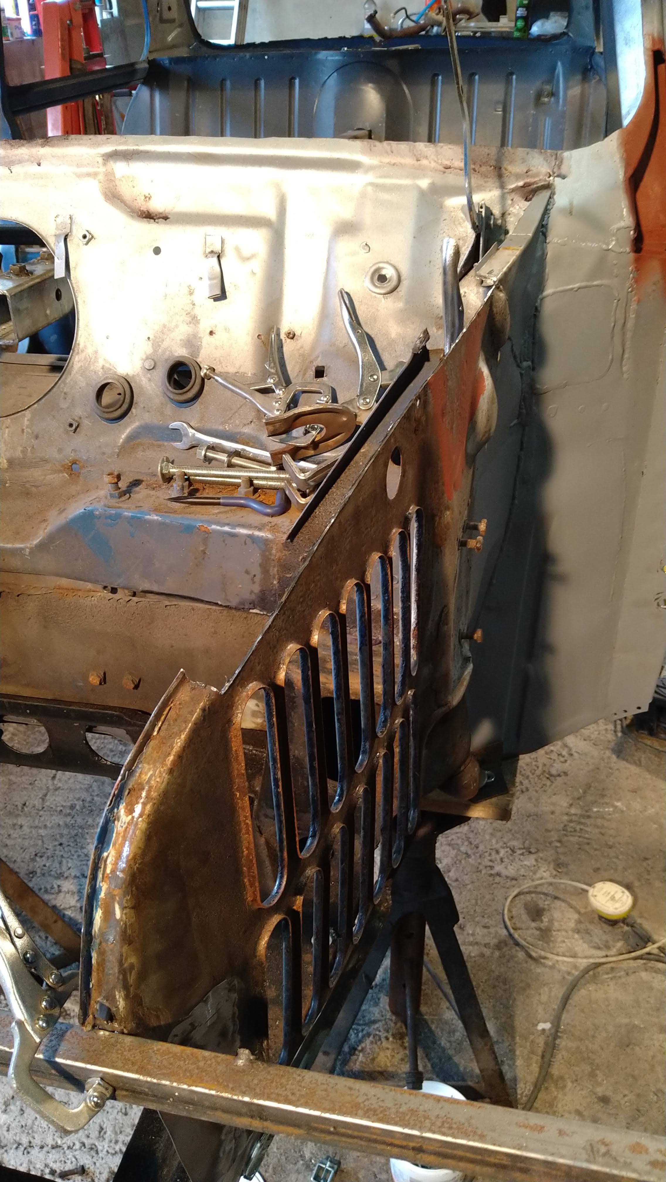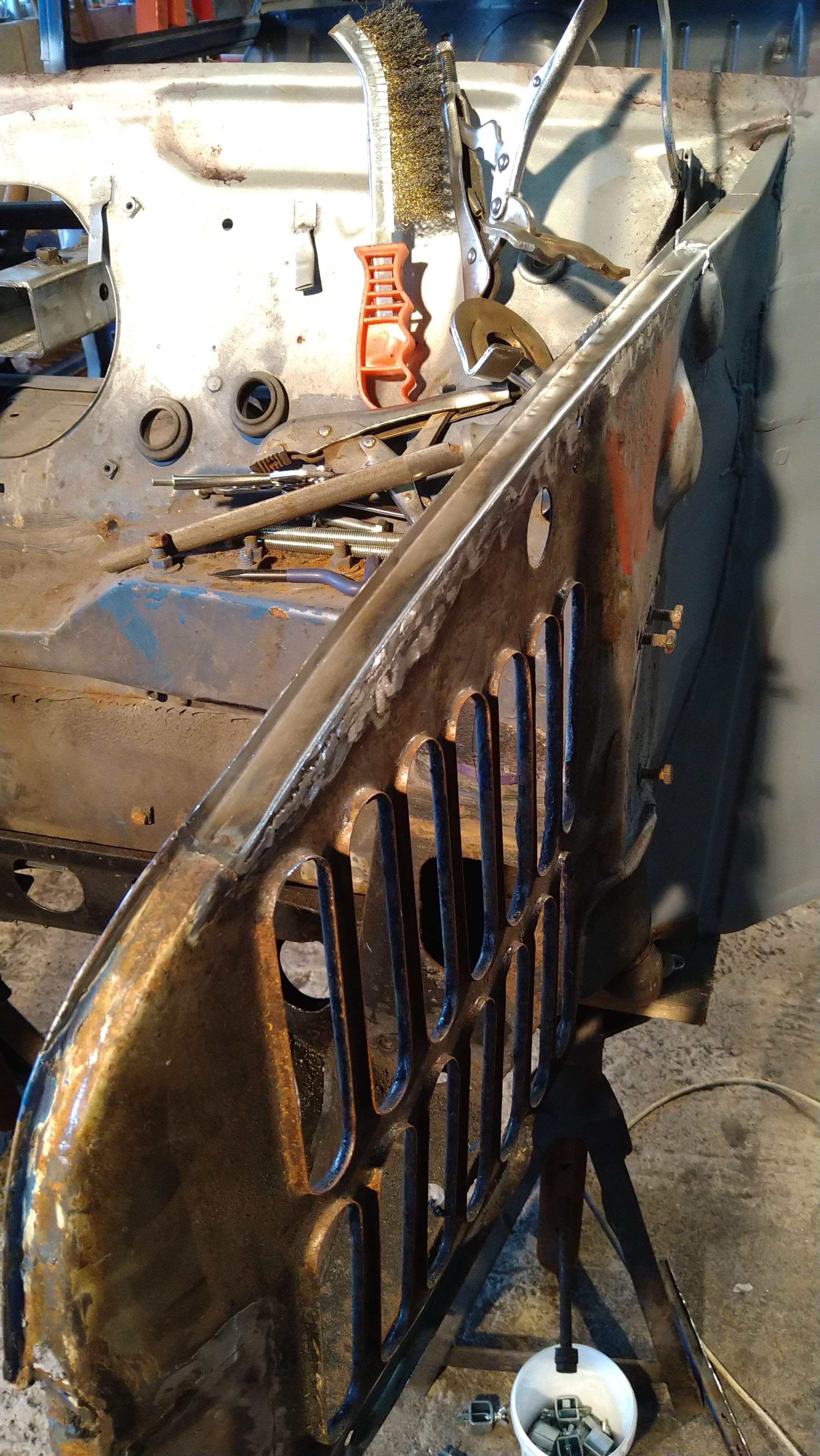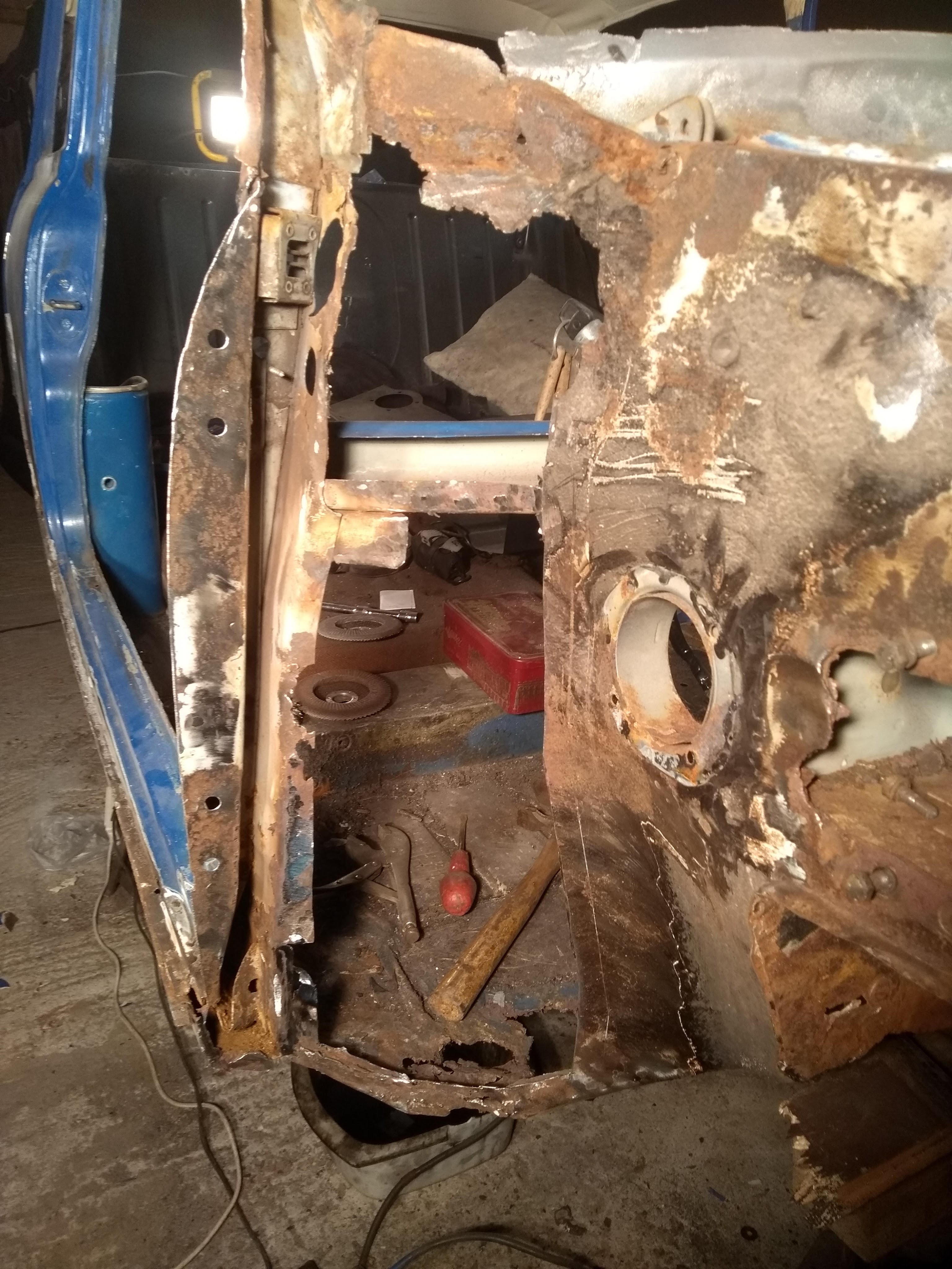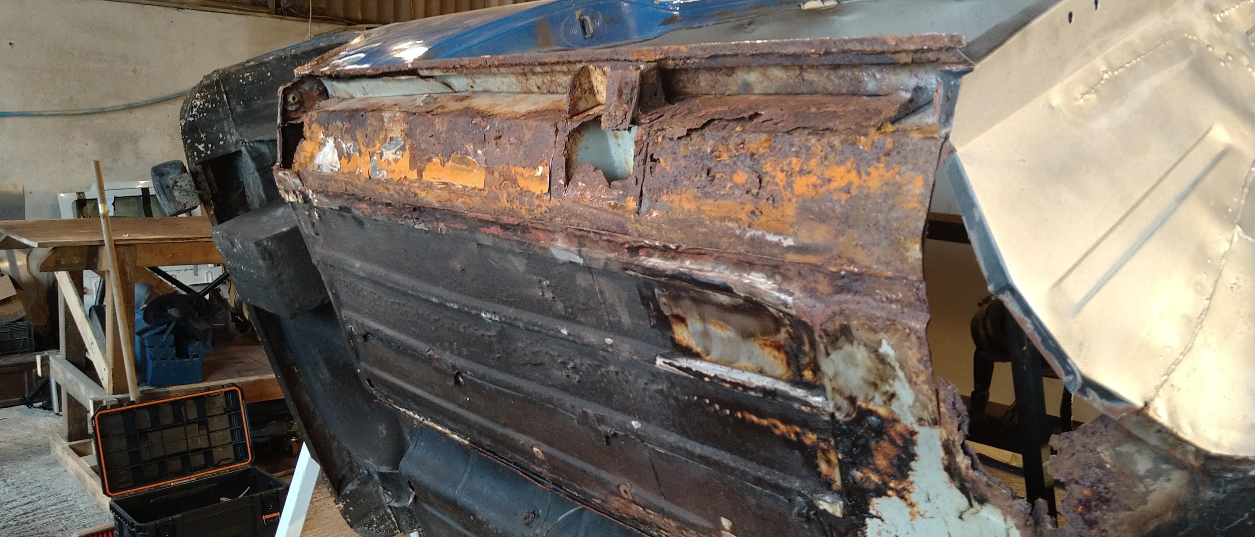 I started out buying a few cheap aftermarket non-genuine panels and welded them in (pretty badly). No plan. Just hack away brown stuff with the grinder and bash a bit of shiny metal back in.