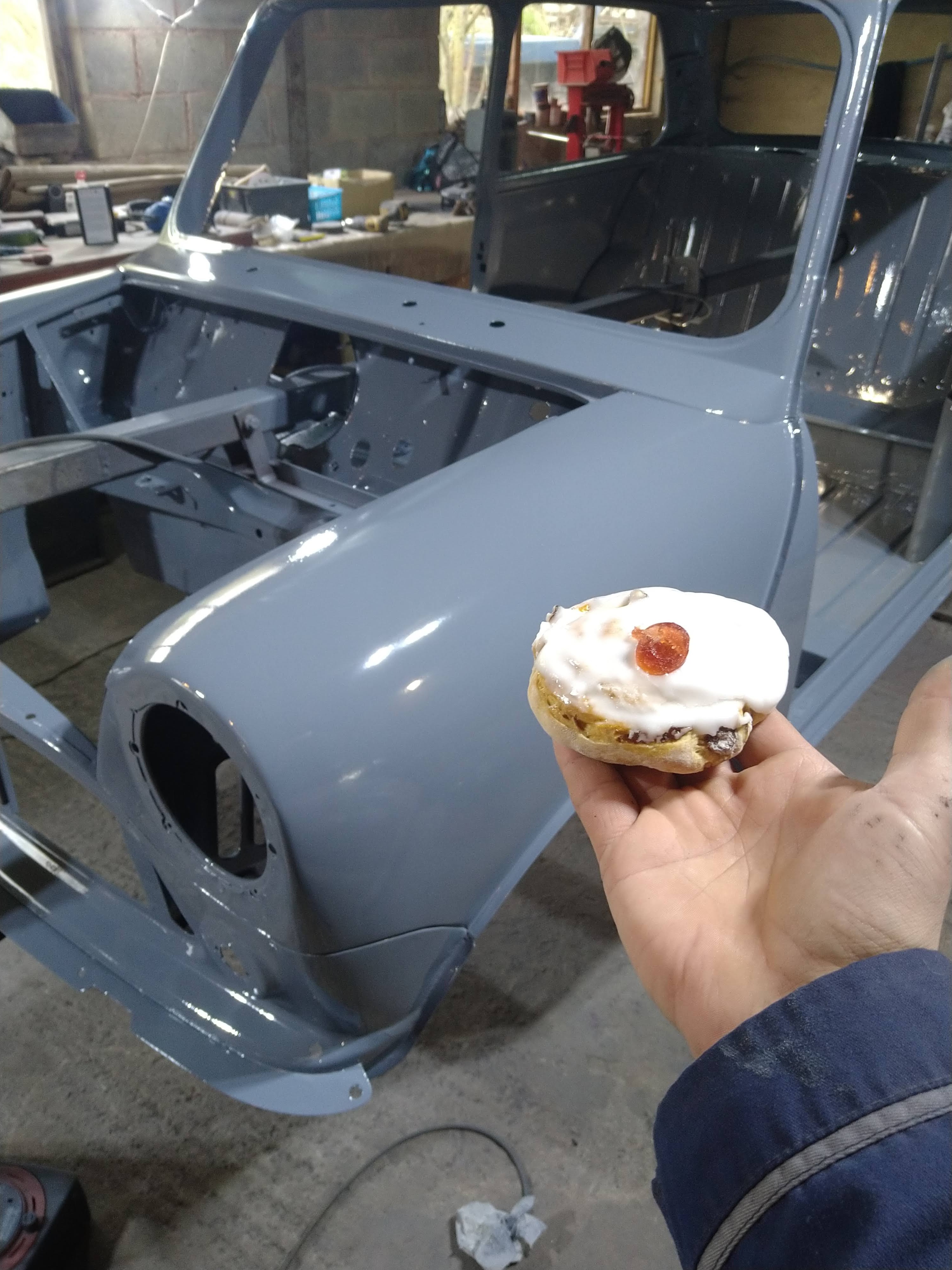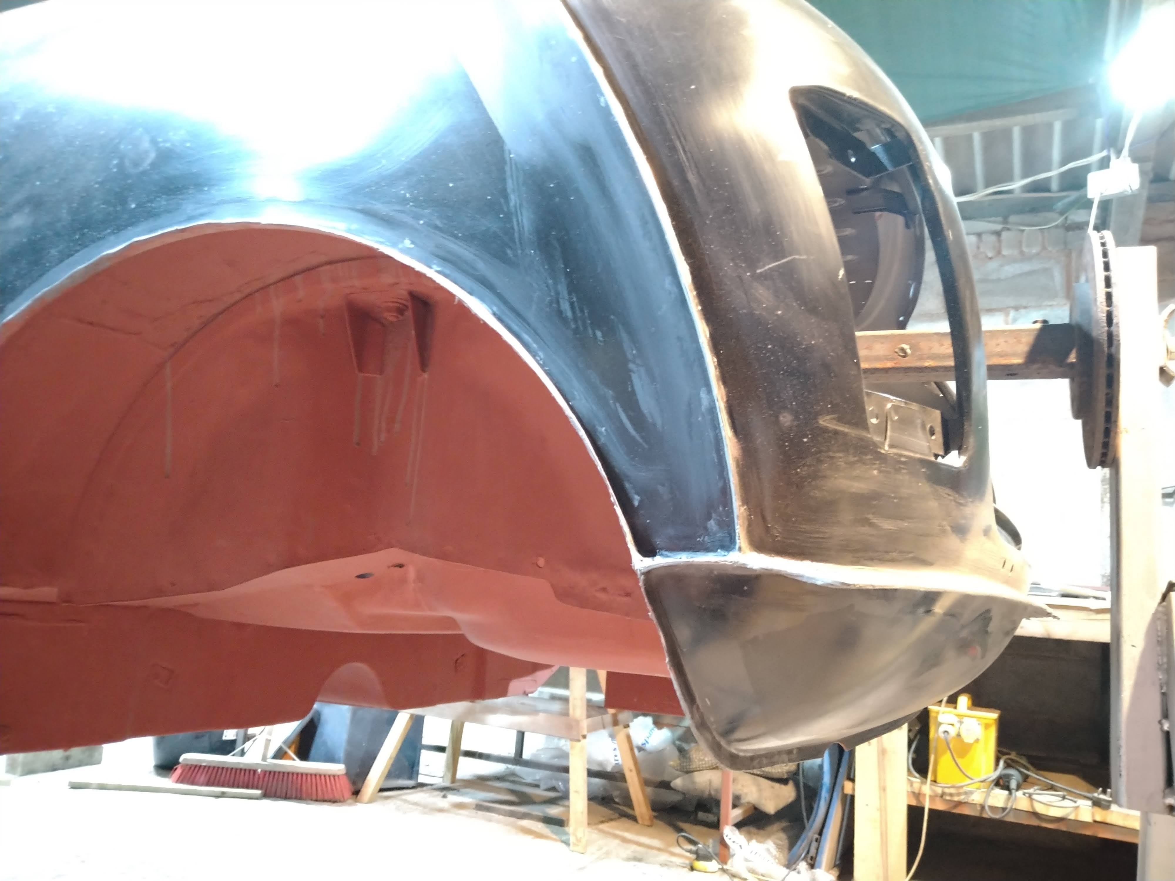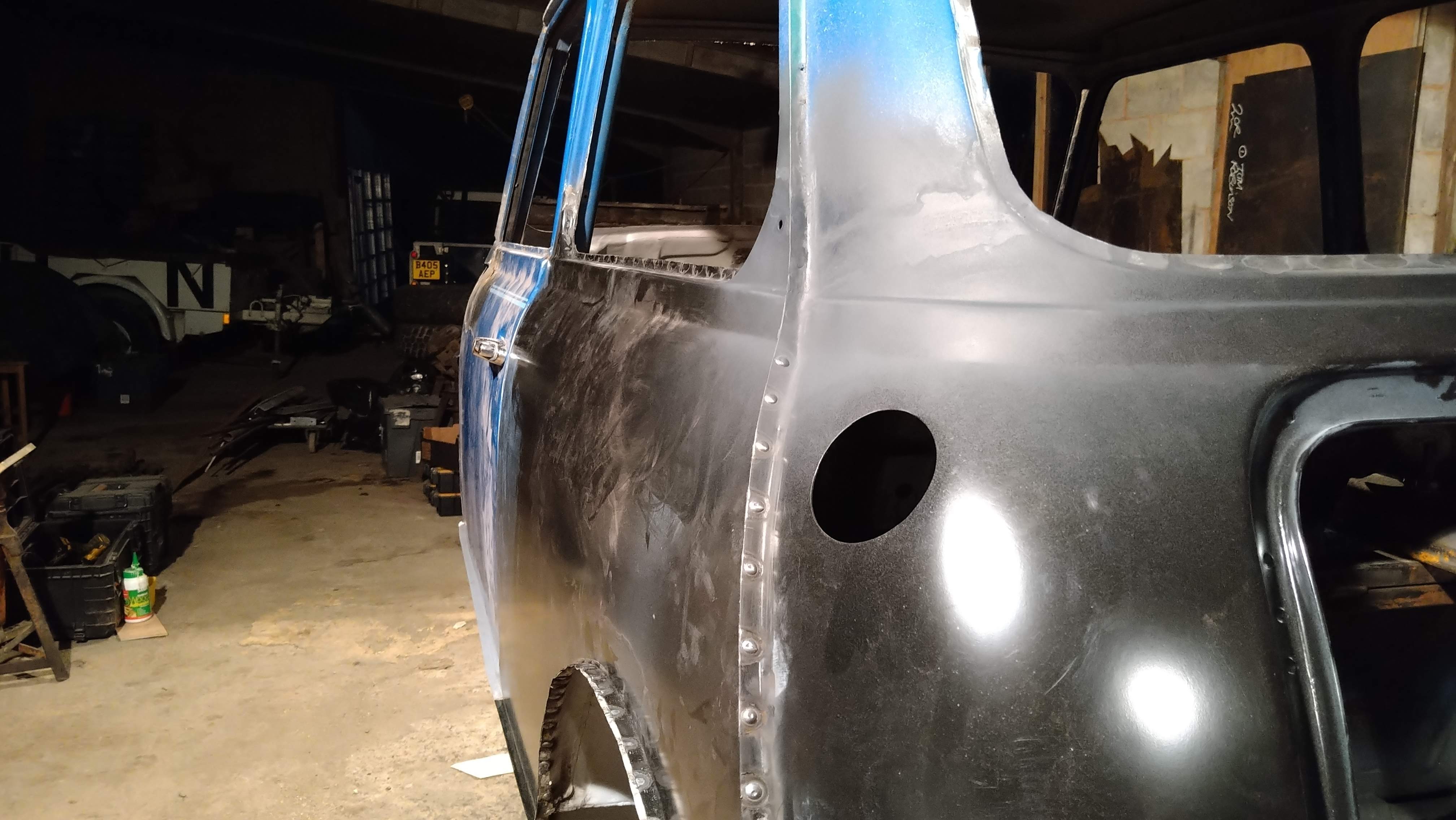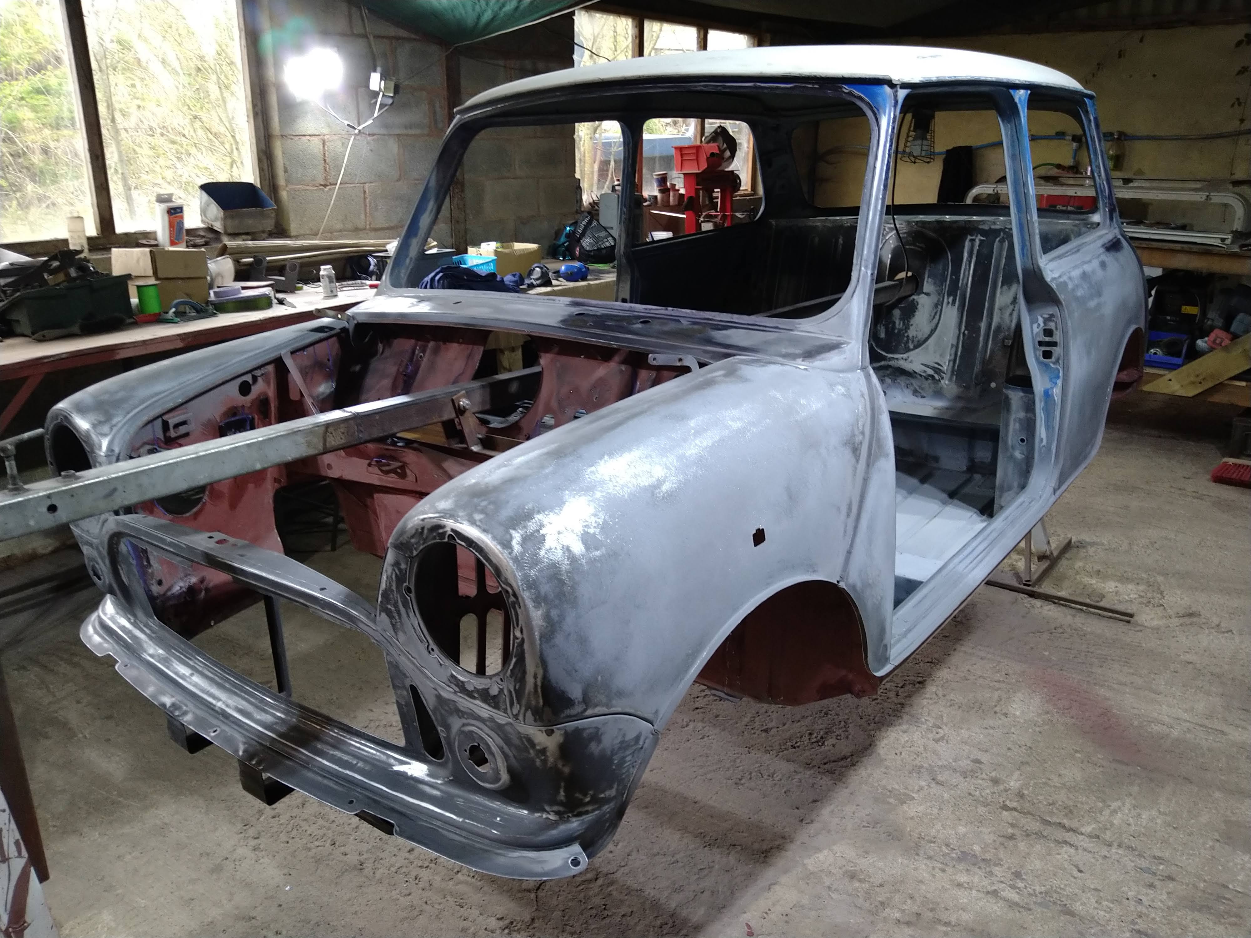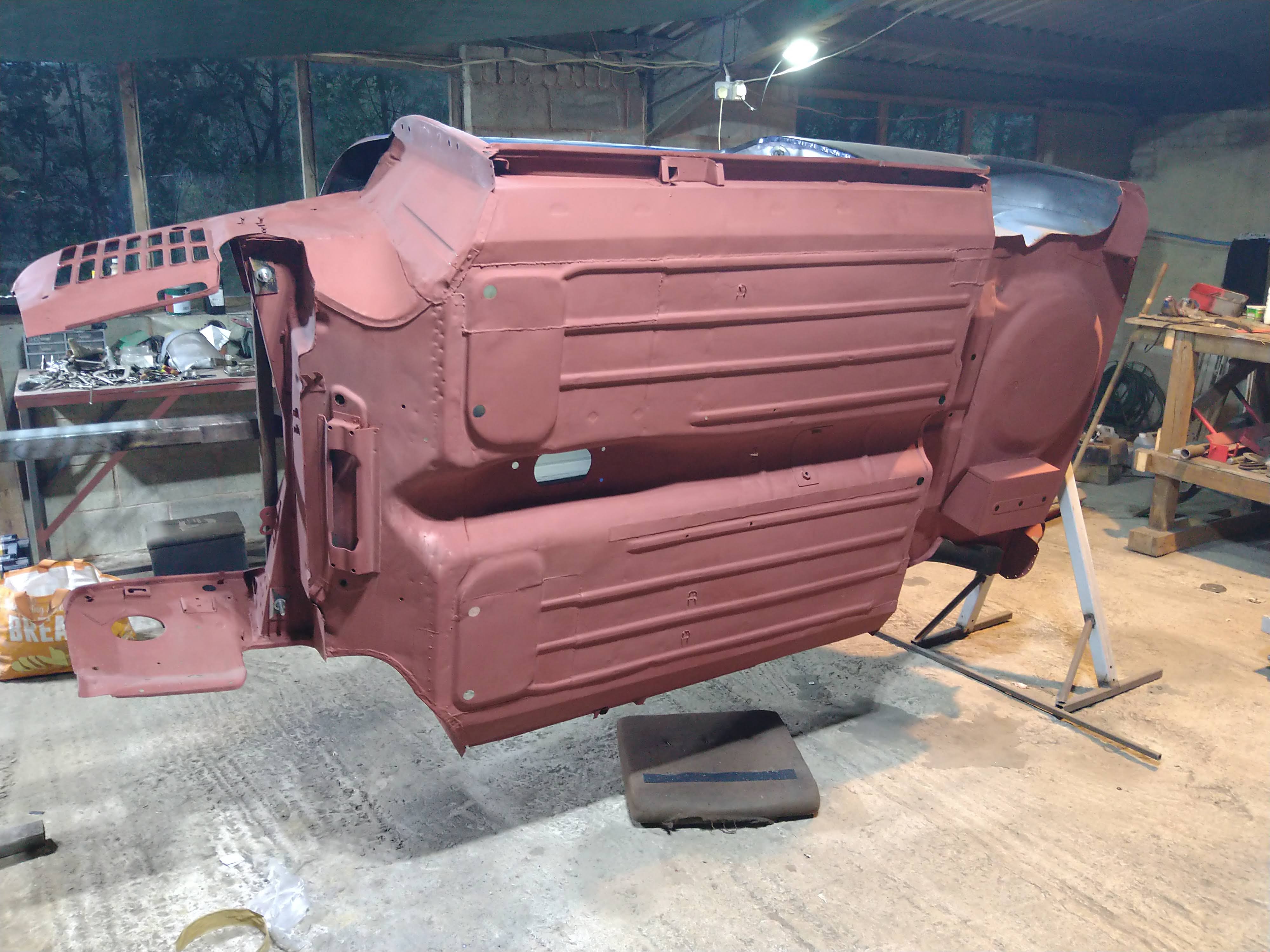 In 2022 I did a few stints here and there to get the front end on and slapped some £6.99 red oxide primer over the whole thing – to kinda get it to the point where it was a complete body shell.