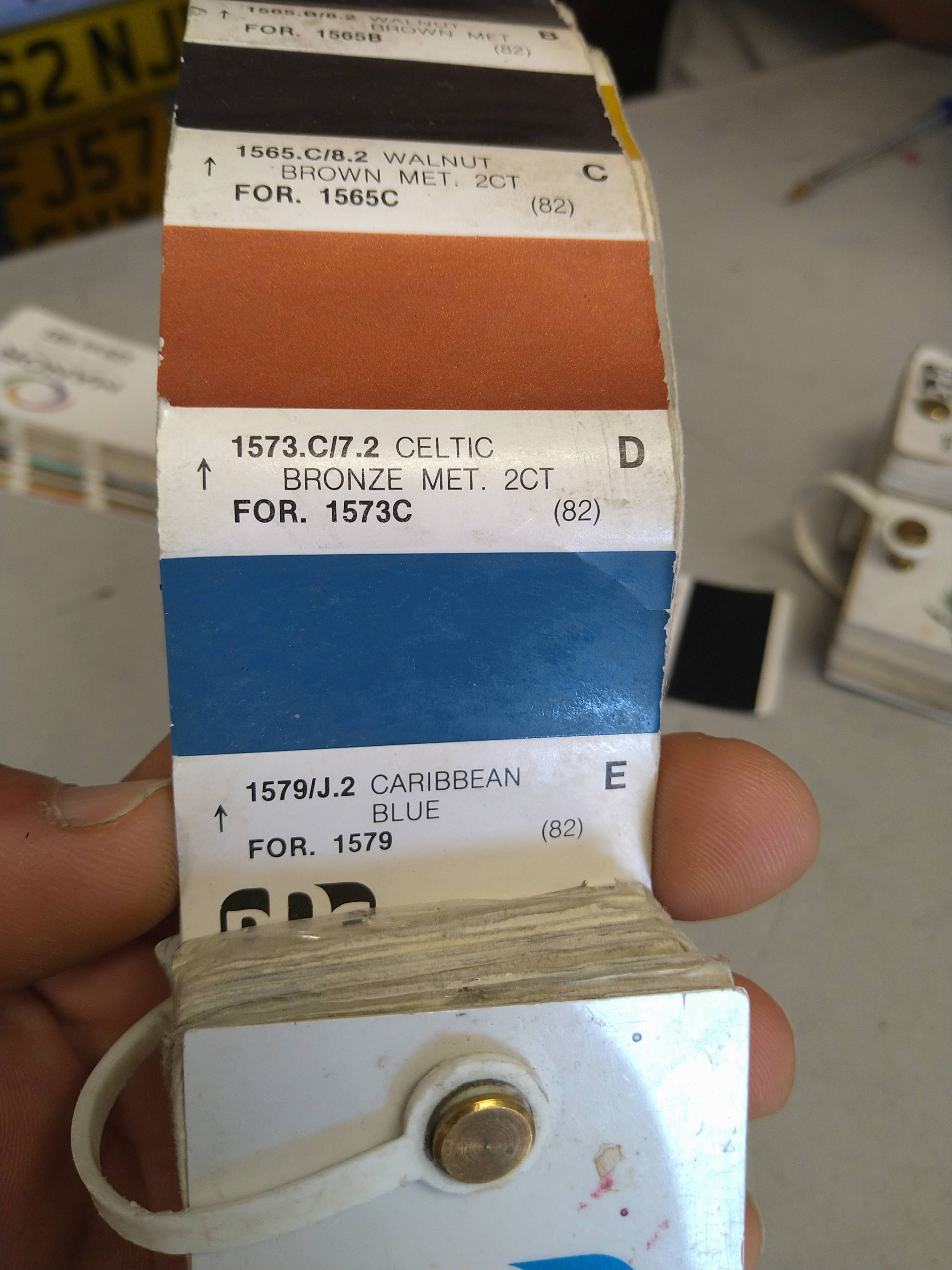 Found a dodgy shop that was willing to sell me the most toxic paint I’ve ever used. Sarah helped choose the colour of 1982 Ford Caribbean Blue. Got myself a £35 spray gun, and the best mask I could afford (or was willing to pay for) and had a go spraying a car in a dusty cow shed.