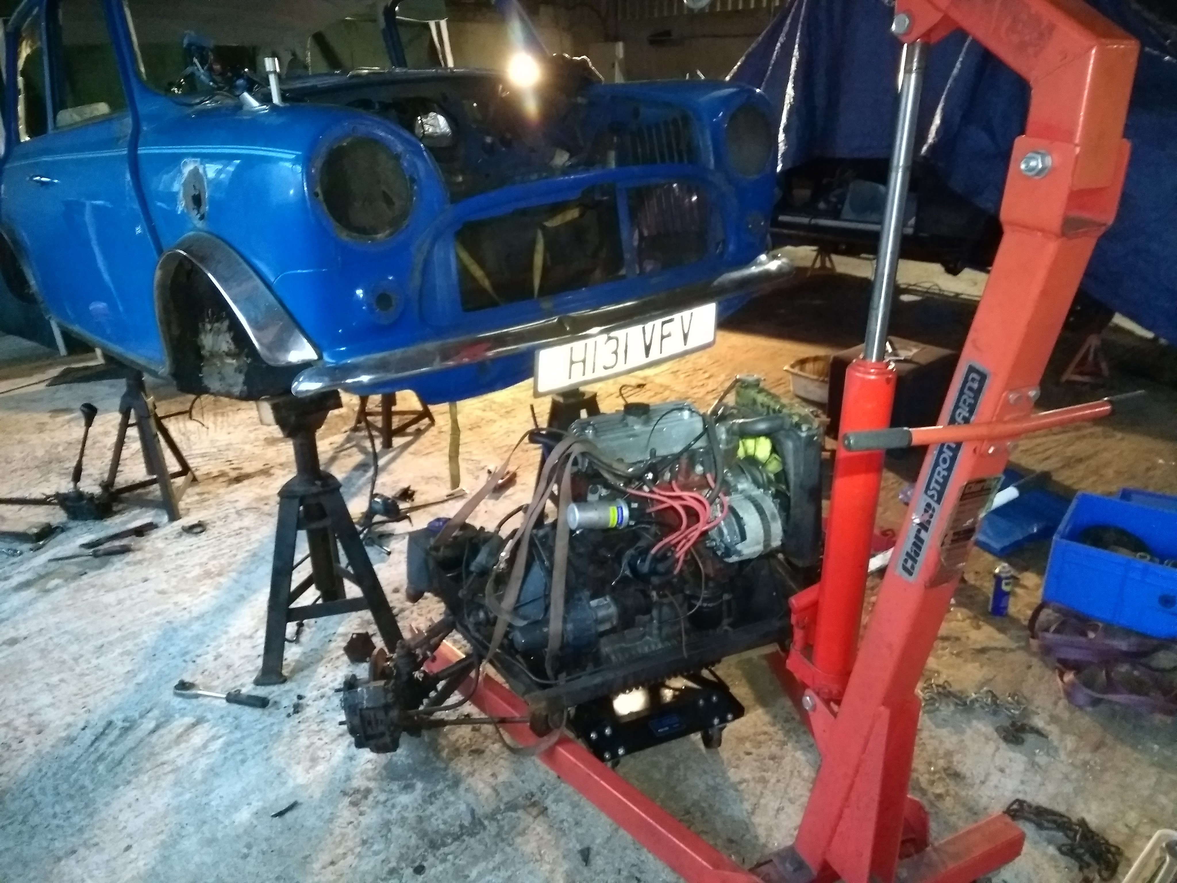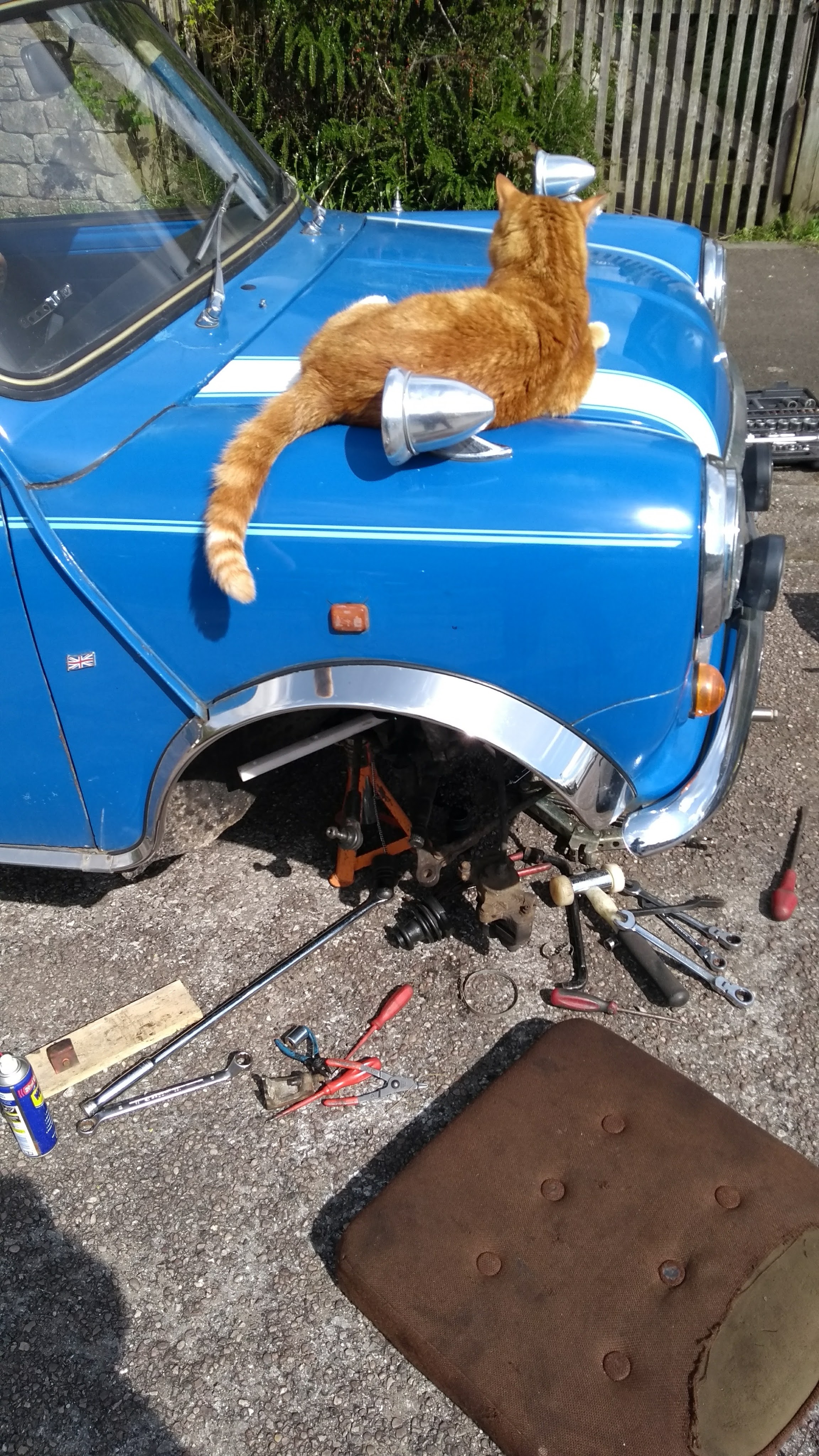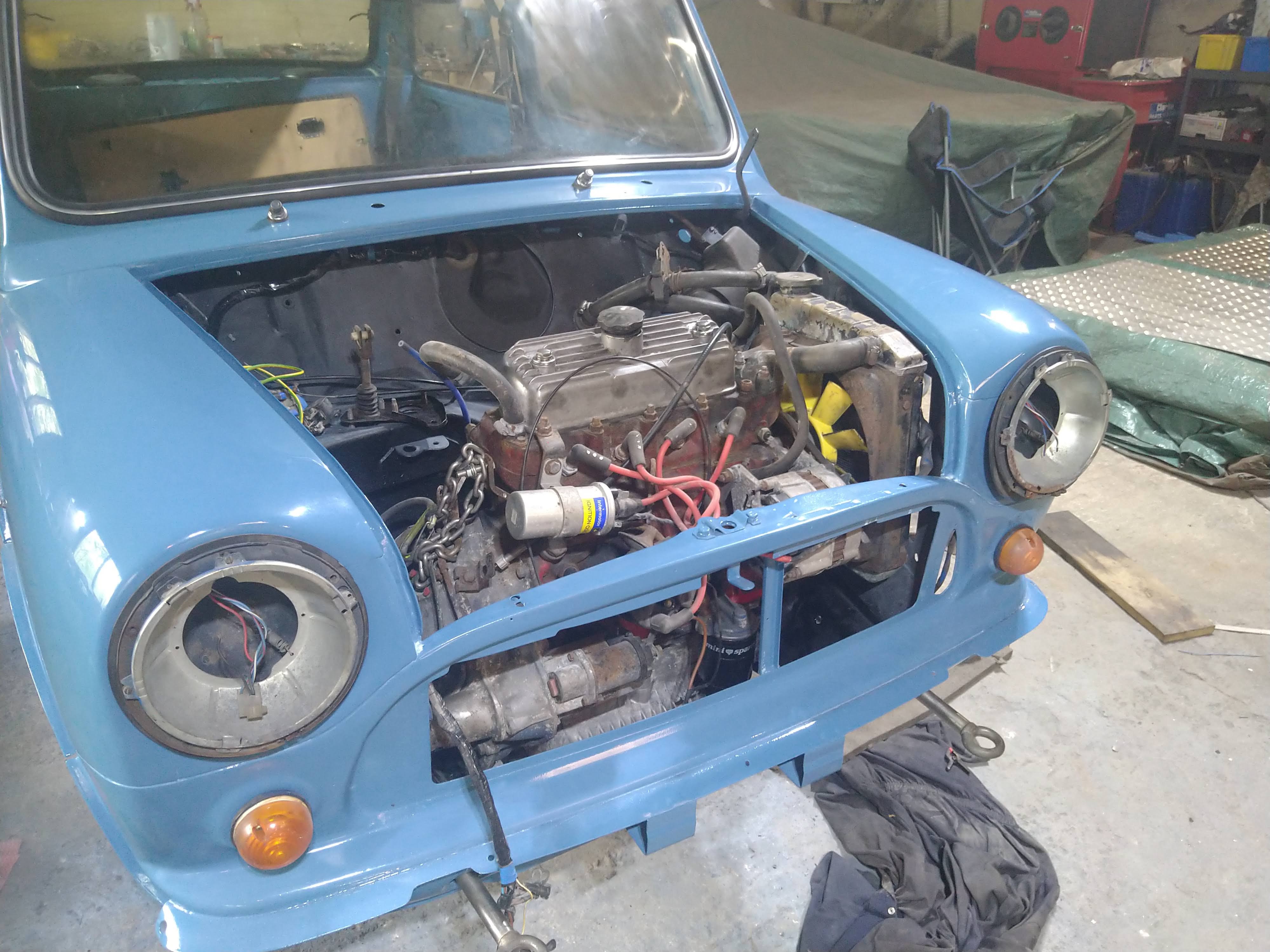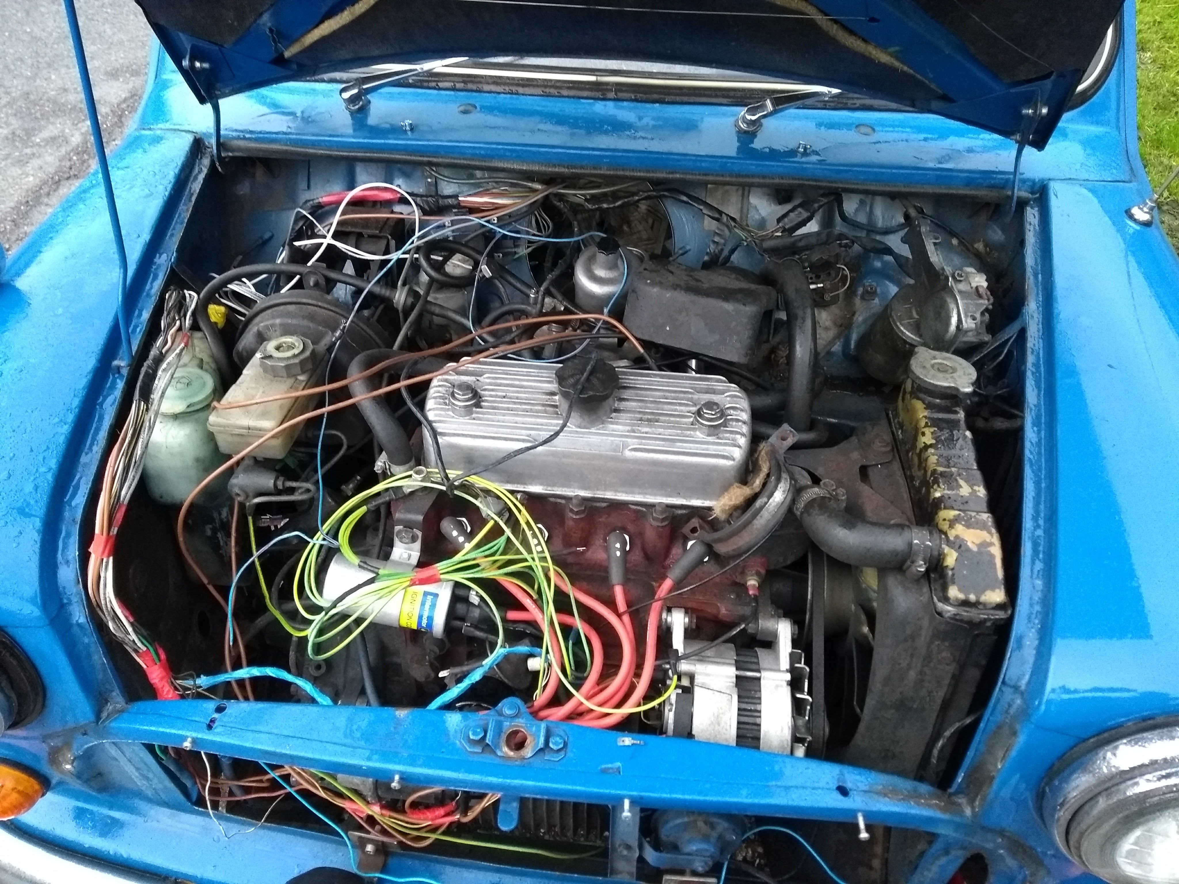 with the fuel line stuck into a jerry can and some jump leads from the van, the mini started on the first turn of the key.