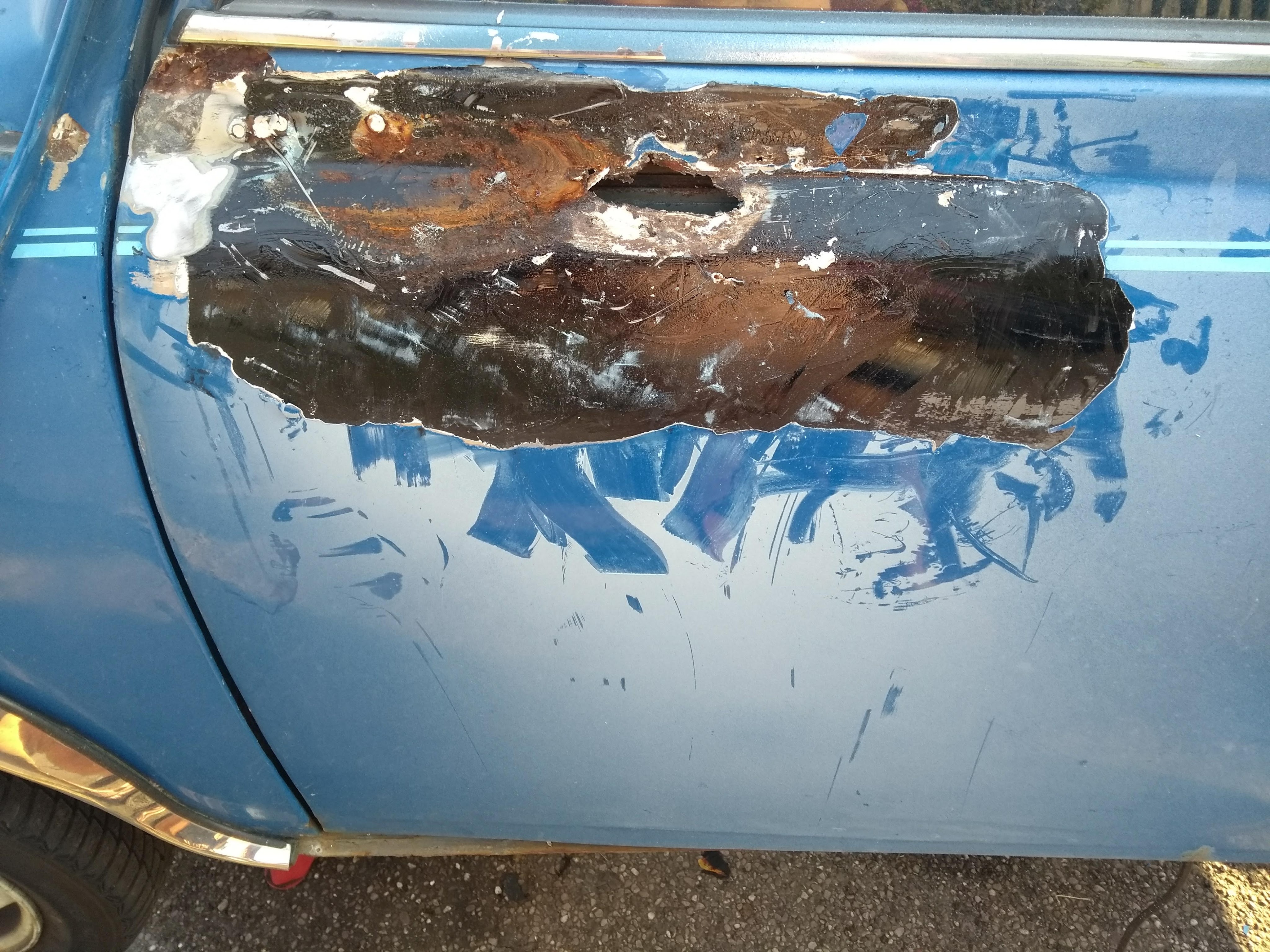 I thought the doors and boot would be simple. Sand them down. Maybe weld up a few holes.