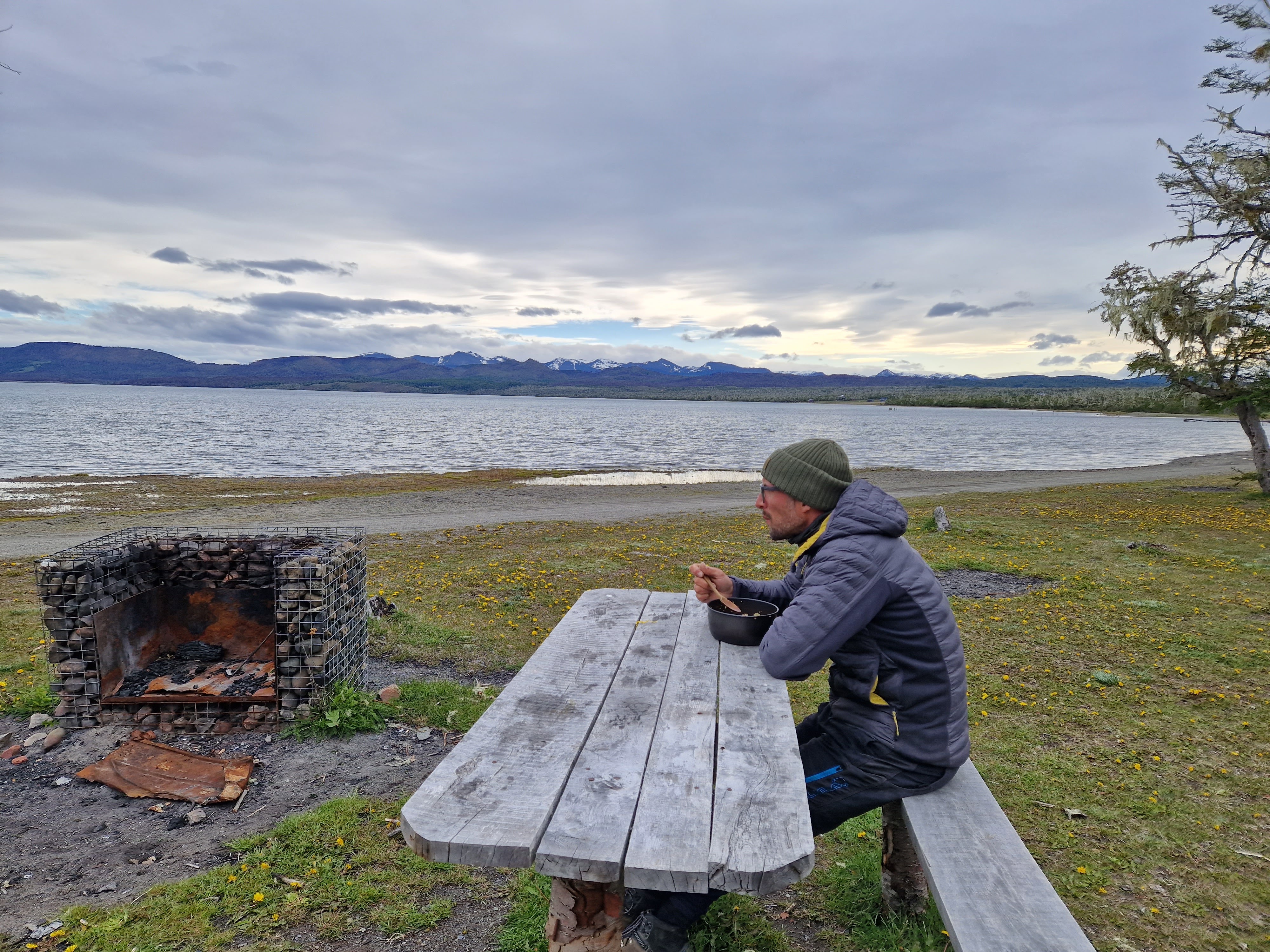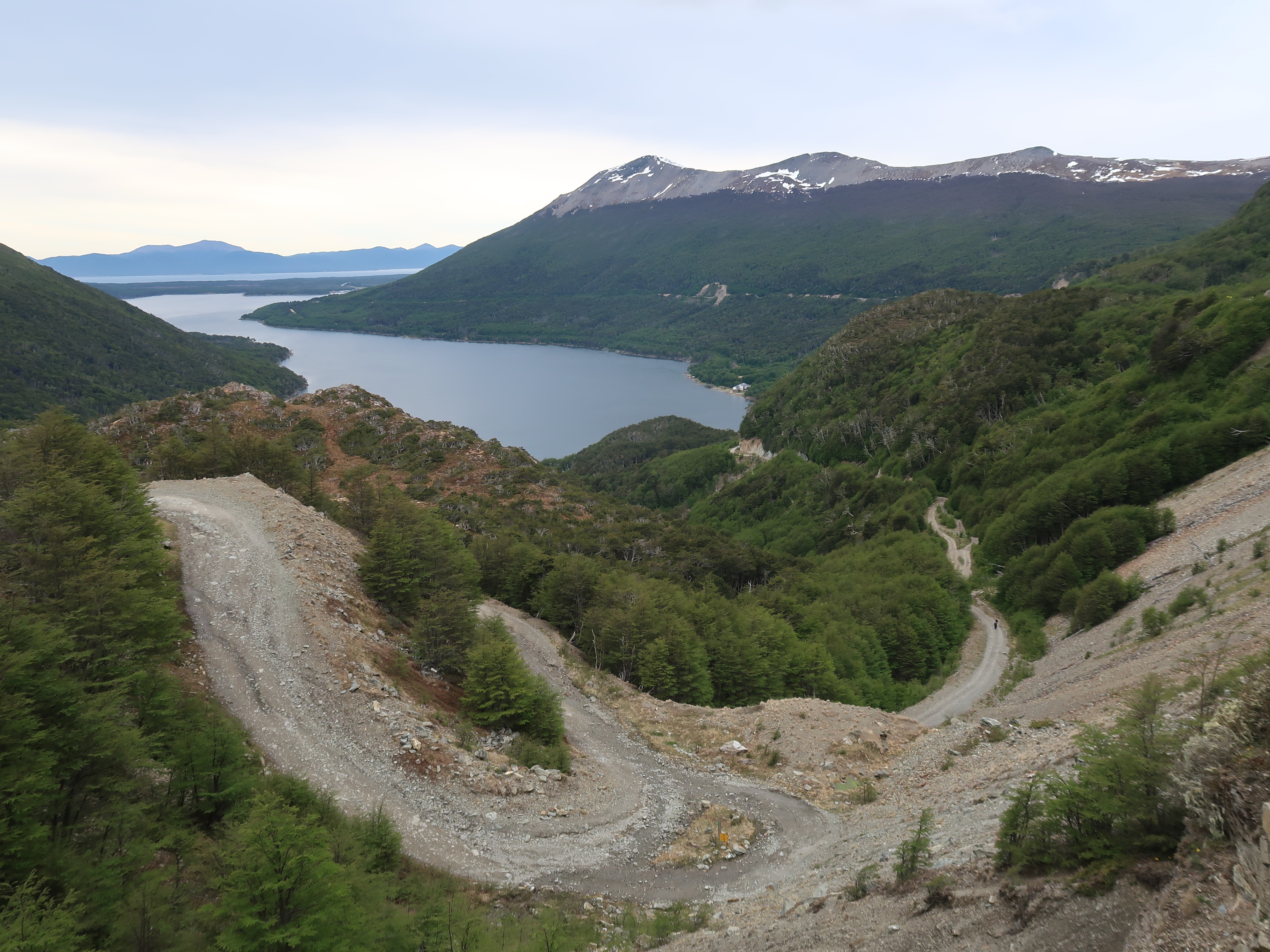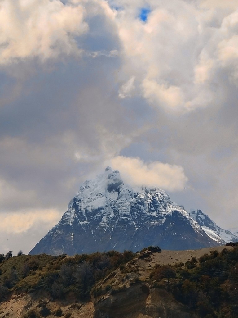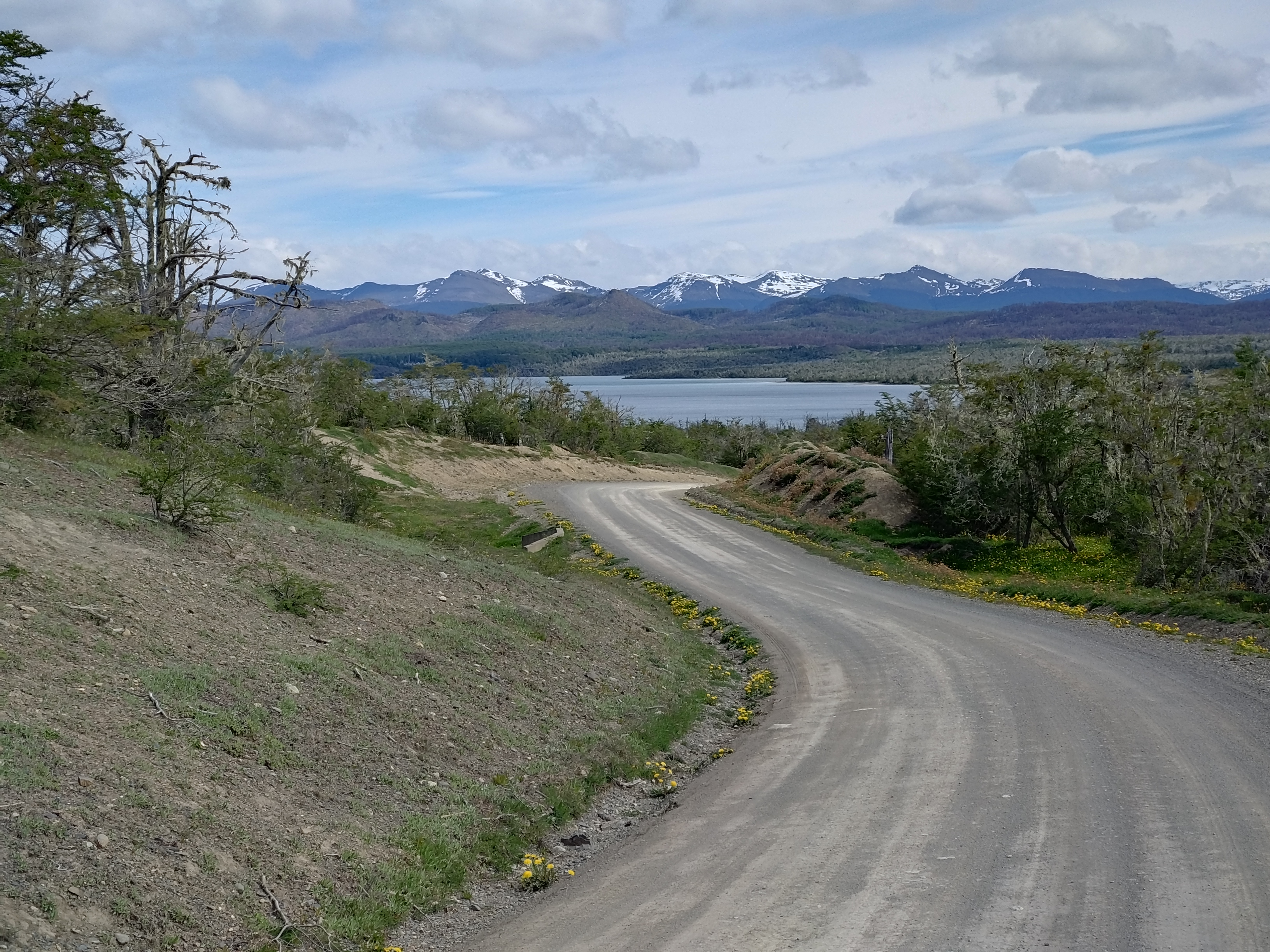 Leaving Ushuaia (on the one road in/out!) we were blessed with good weather and hardly any wind, which was needed as Ted really wasn’t feeling great. The landscape was amazing, such beautiful mountains, capped with snow, with glaciers in between the peaks. We soon got used to the trucks whizzing by. We were also really hearted to experience the encouragement and respect from the motorbikers who all seemed to wave, give you the peace sign or toot their horns as they passed in either direction (it’s not something we’ve ever experienced from the motorbike community before). It brought the hugest smile to my face every time it happened and earned them a Forrest-Gump-esk wave in return from me – it even made Ted’s frown reduce slightly on a few occasions too.