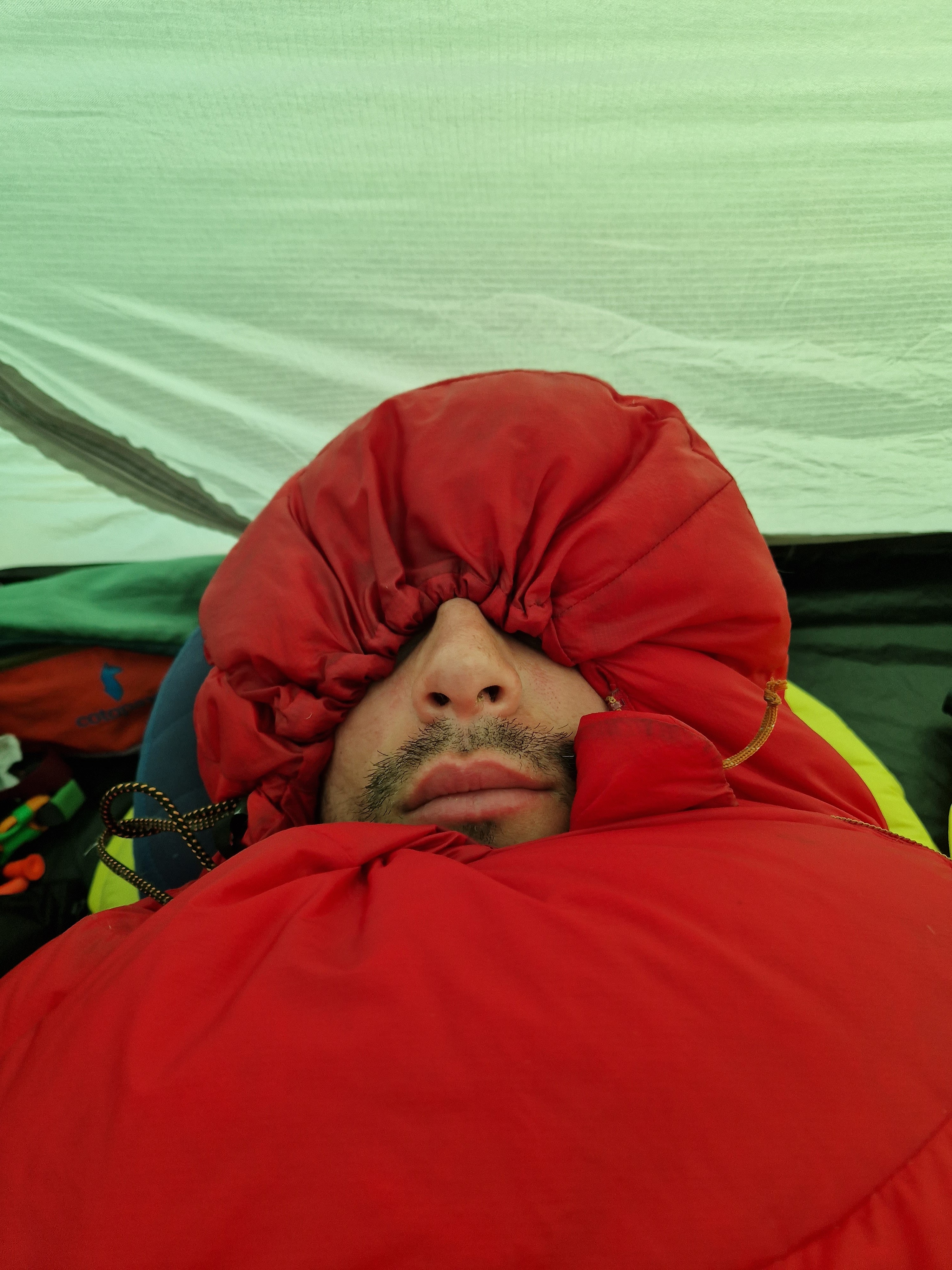 Sitting in the tent, our ears reverberating, it felt like someone had finally turned off the roaring white noise for the first time in 12 hours. We were exhausted, a little shaken, humbled by nature’s power, but finally safe and cosy warm wrapped in our sleeping bags. We fell straight to sleep trying not to think about the fact that the following day would have to be a repetition of the same.