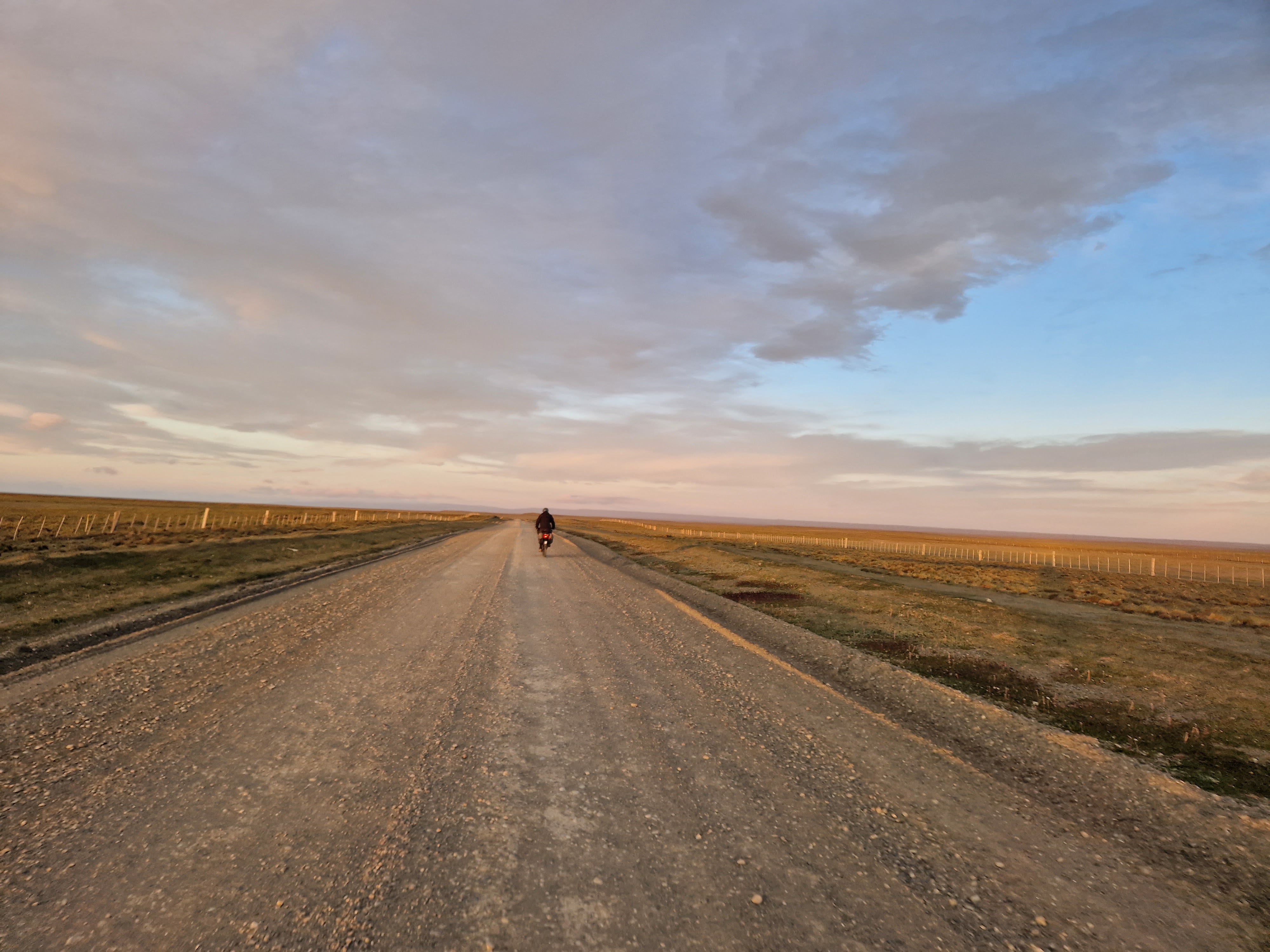 By 9pm, we’d done about 50km, and looking ahead we could see the mirage outline of an Estancia (farm). It would be the only place that could offer our tent any protection from the relentless wind and the only chance we’d have of a safe night. So we set our sights on reaching it before it got dark at 10:30pm. It took us an hour to cover the additional 5km. On approaching the driveway the name read ‘Estancia Sara’ – I forgave them immediately for missing off the ‘h’ and saw it as a positive sign from the universe. Thankfully they let us pitch our tent outside their office building, which provided us with some shelter.