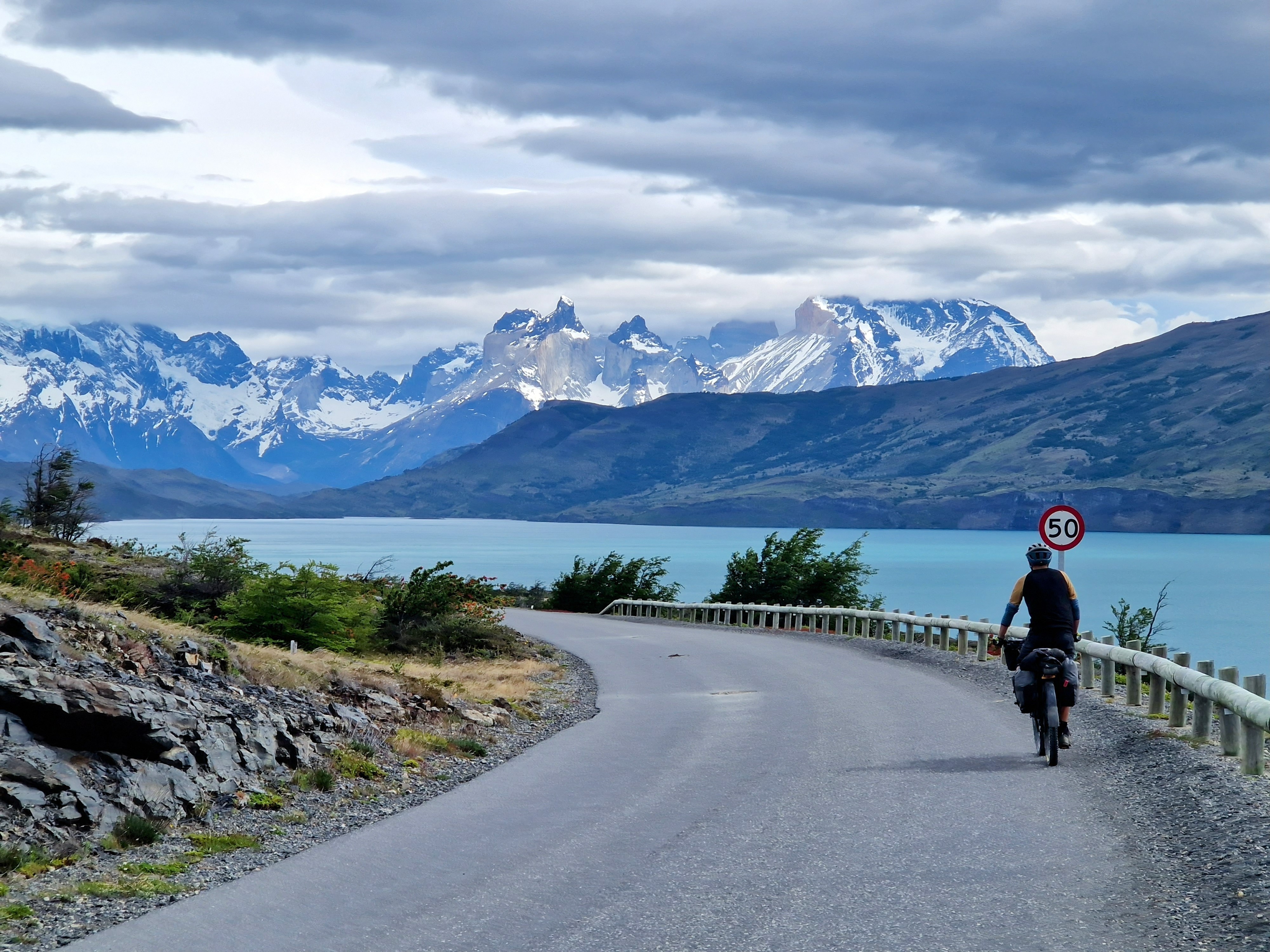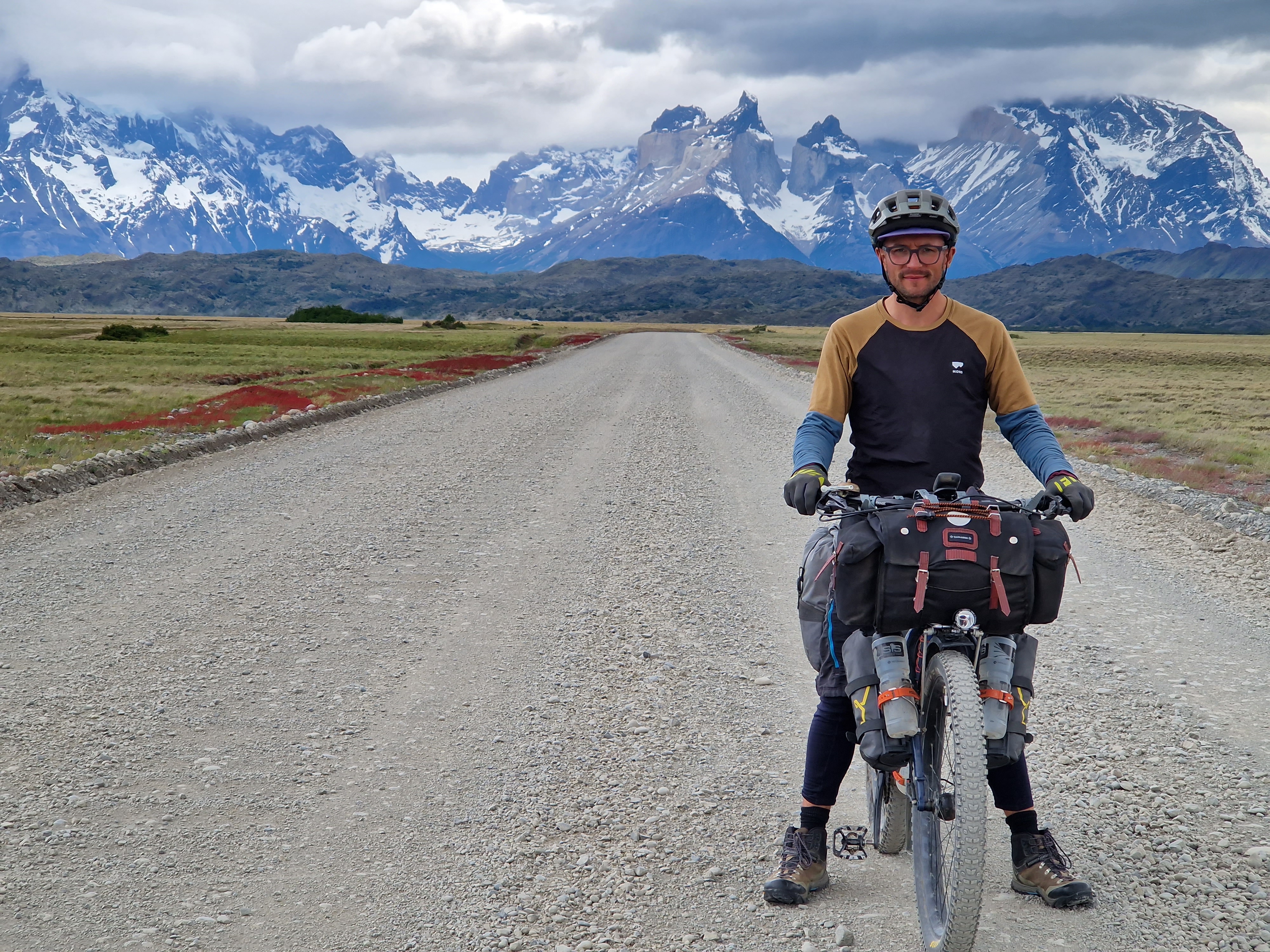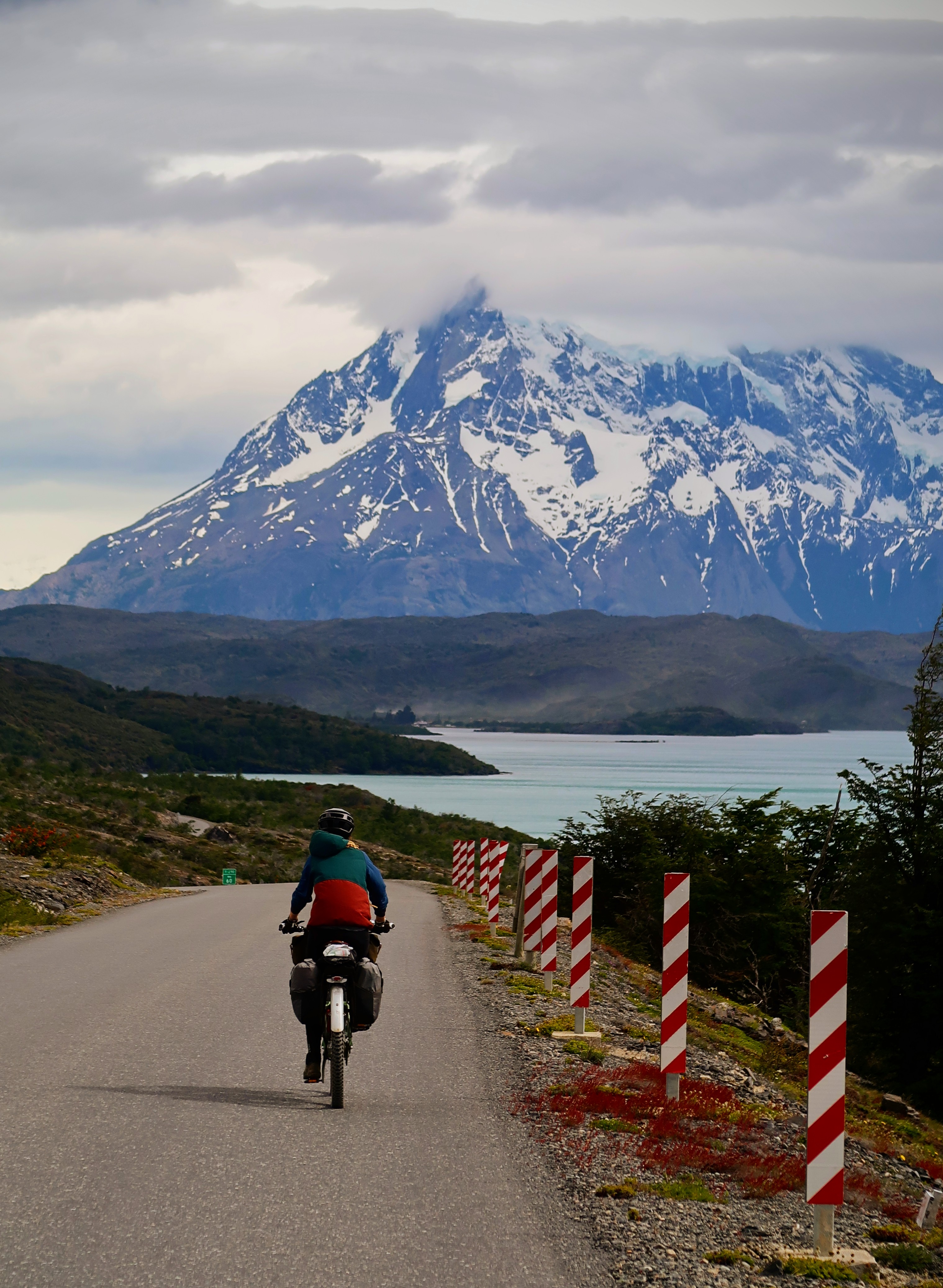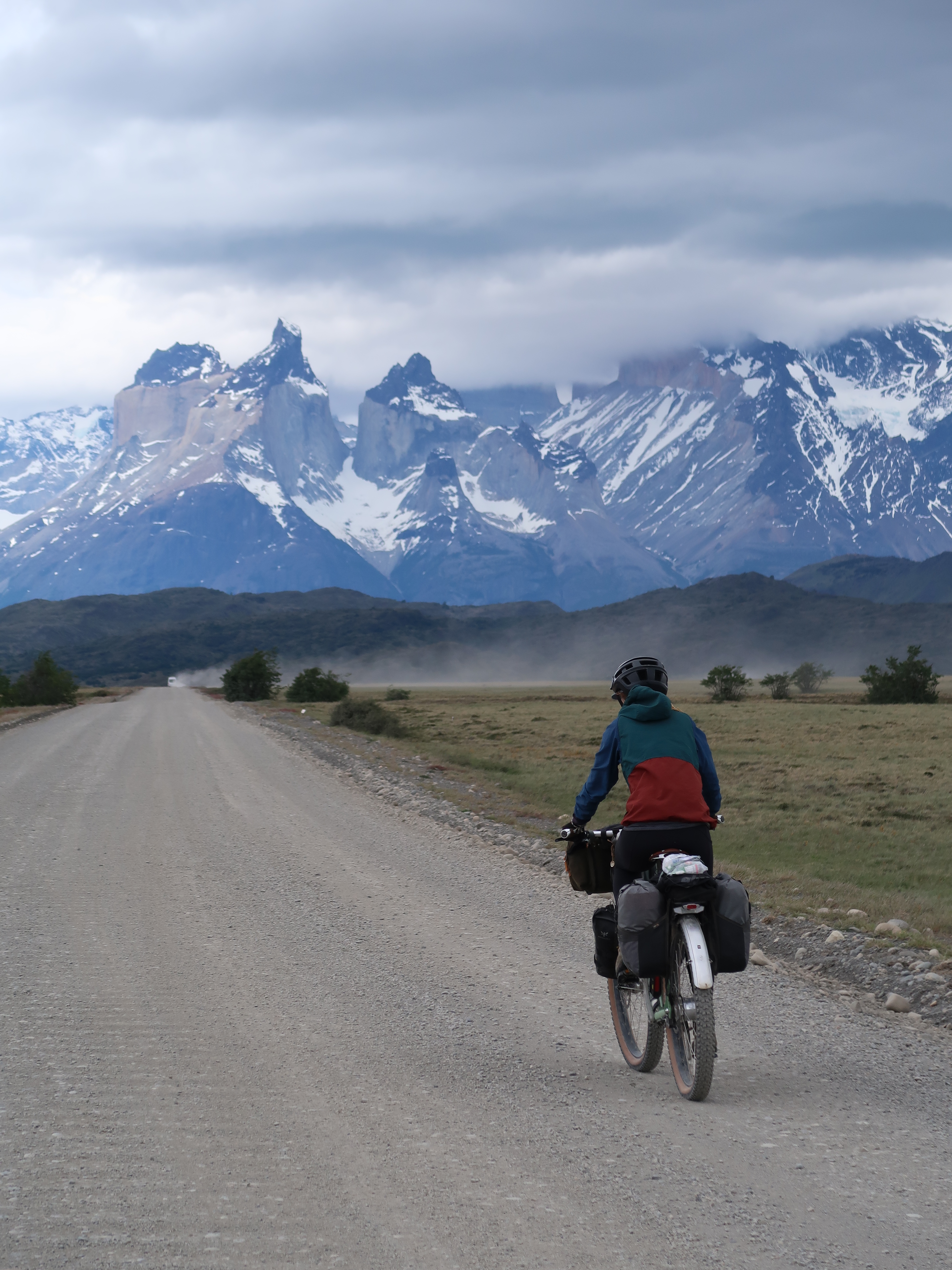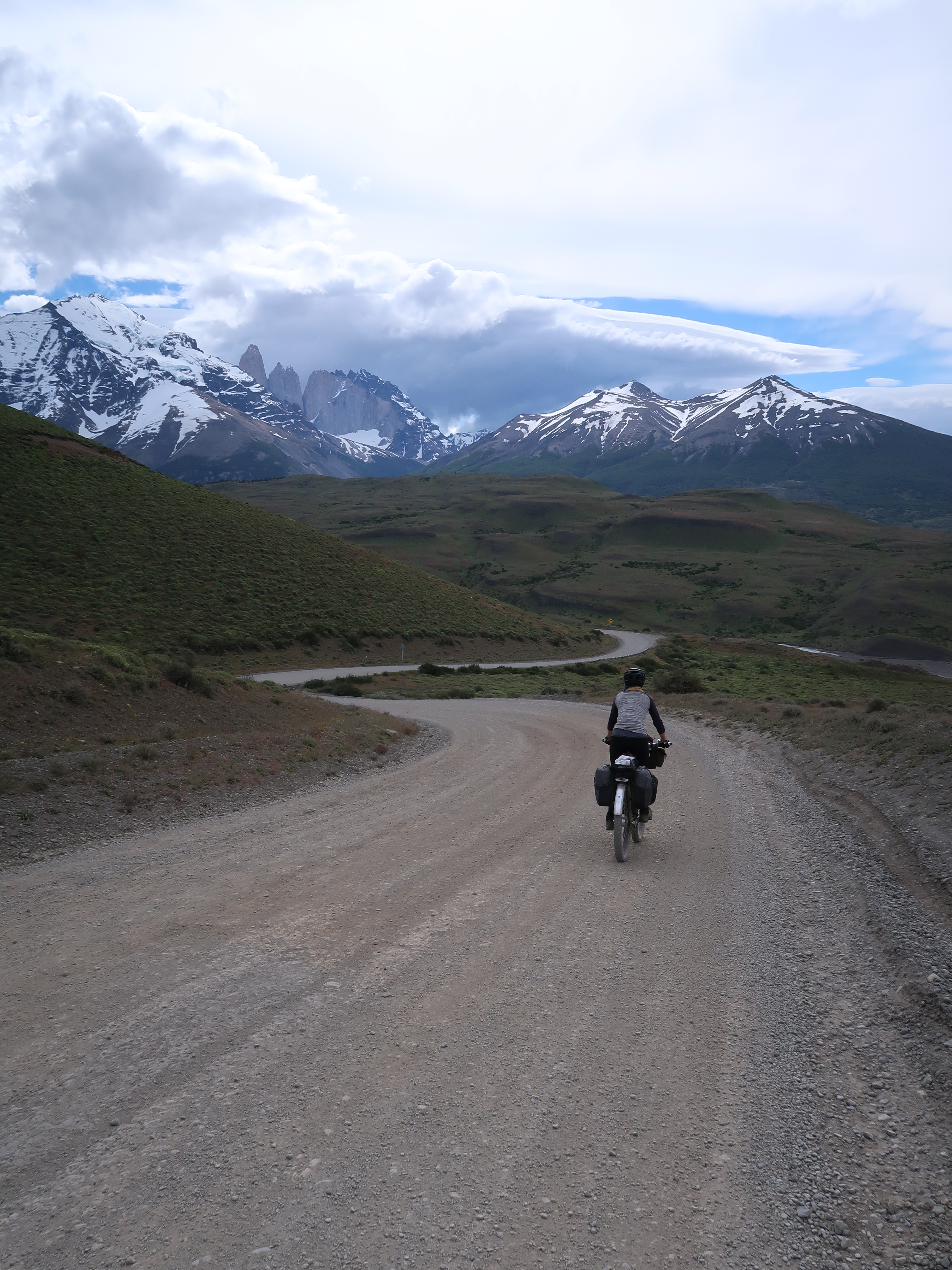 Heading North, you’ll be pleased to hear the wind hasn’t continued in the same vain as the last post (But we have had a few pre-dawn starts to avoid the afternoon winds). We set out from Puerto Natales (Chile) to cycle a classic loop through the Torres del Paine National Park to Cerro Castillo on the Chilean/Argentinian border. Immediately on leaving the town we could see the snow capped peaks in the distance, and knew thats where we were heading for. Unlike the typical tourists, who fly, enjoy the comfort of a private driver, or the luxury of a reclining seat on a bus, and whizz through the National Park in a day or so, we experience the roads in between the tourist attractions. For us this often means a 2-4 day cycle ride across wilderness without resupply of food. It means stocking up on multiple days of food before leaving town and knowing where our water resupply is likely to come from before we set out. But we’re starting to get used to this now. Although I don’t think I’ll ever get used to the amount of food we seem to be able to munch through in a few days (everyday is like a day in the life of the Very Hungry Caterpillar!)
