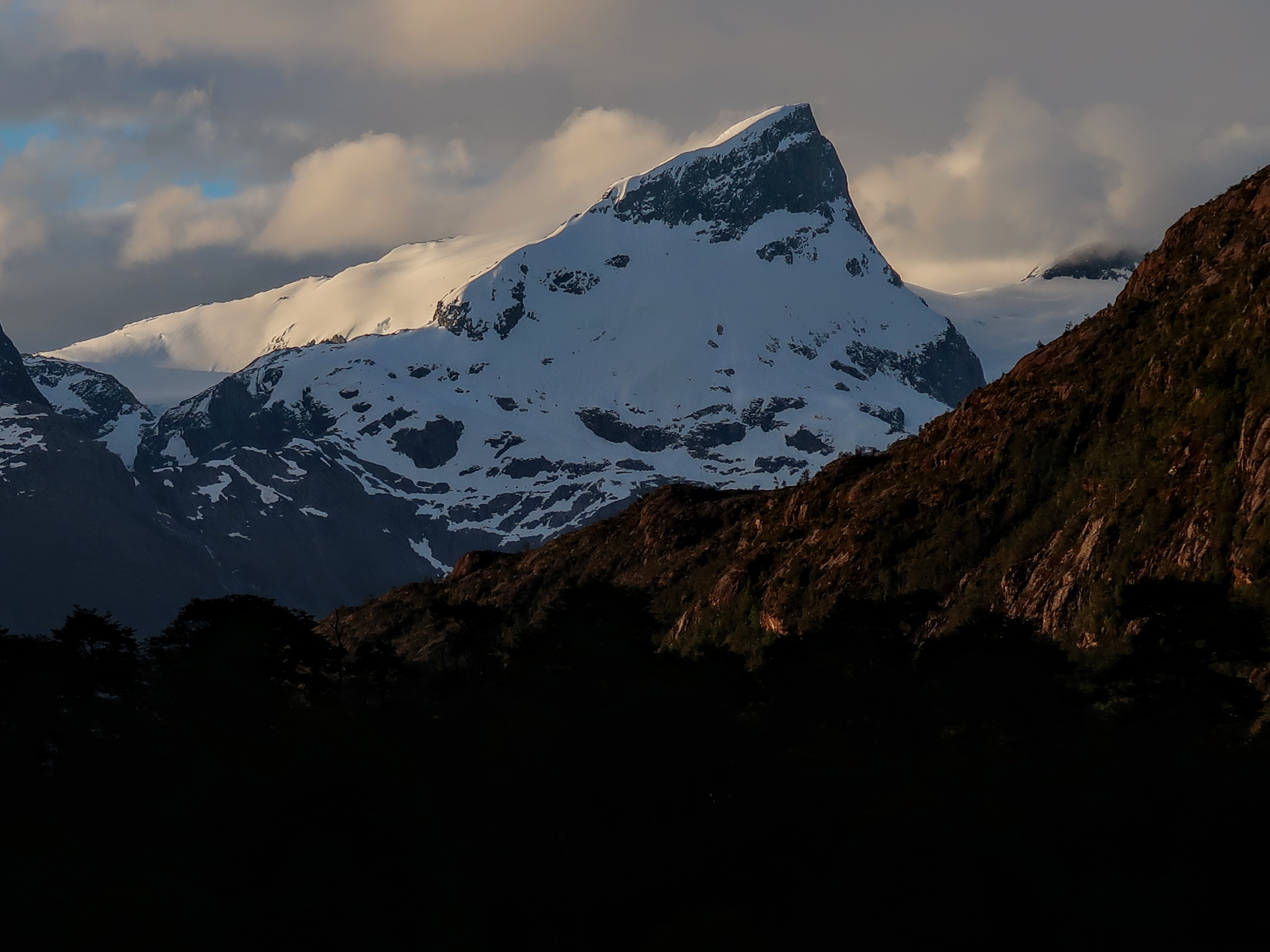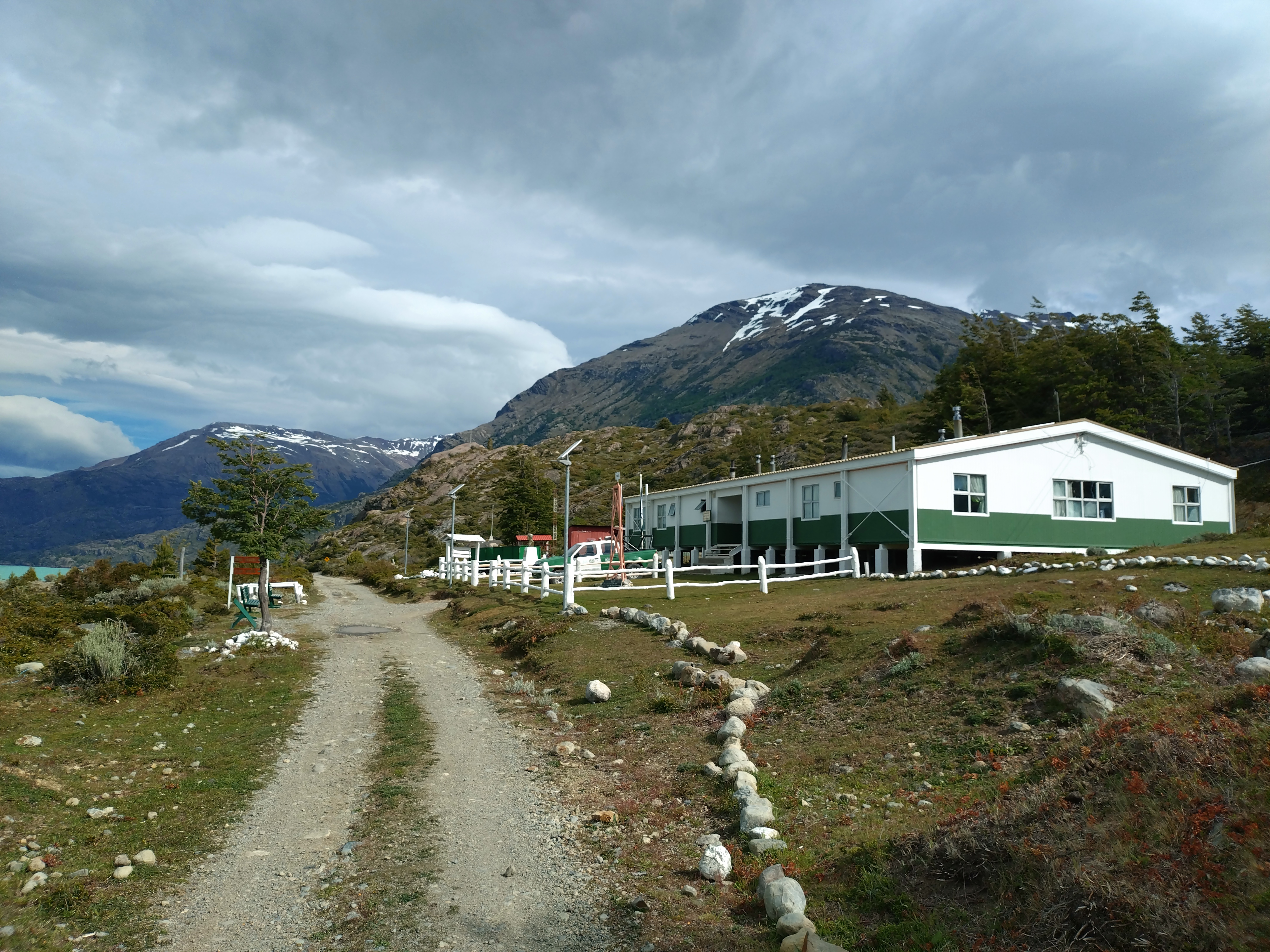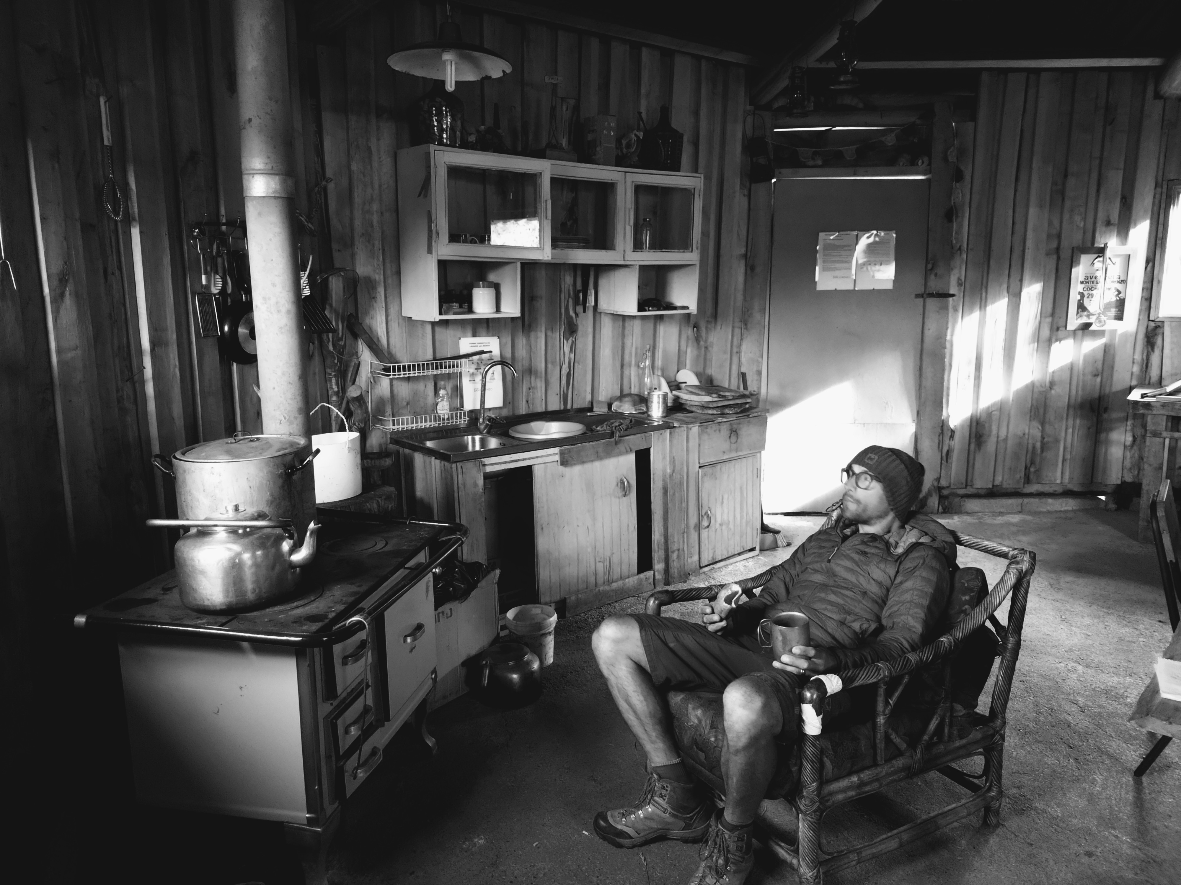 I’m writing this post from the Toni Rohrer Refugio at Campamento D’Agostini, the base camp for Monte San Lorenzo (the second highest mountain in Southern Patagonia at 3706m). Don’t worry, we aren’t going to pretend to be mountaineers and attempt the climb. But we have taken a slight detour from our route North, to enjoy a couple of days off the bikes. We are currently spending some time hiking and exploring this beautiful, remote area of San Lorenzo. And as it’s almost Christmas and we never know what day it is anyway, we’re treating this as our Christmas holiday! The mountain hut is in a sheltered wood, at the edge of the lake that pools at the bottom of the ice blue glacier, covering the mountain side. The incredible wooden refugio is hand built, full of character, with mountaineering memorabilia covering the walls, a cosy stove to keep us warm and it has one of the largest kettles I’ve ever seen – so for us, it’s perfect.