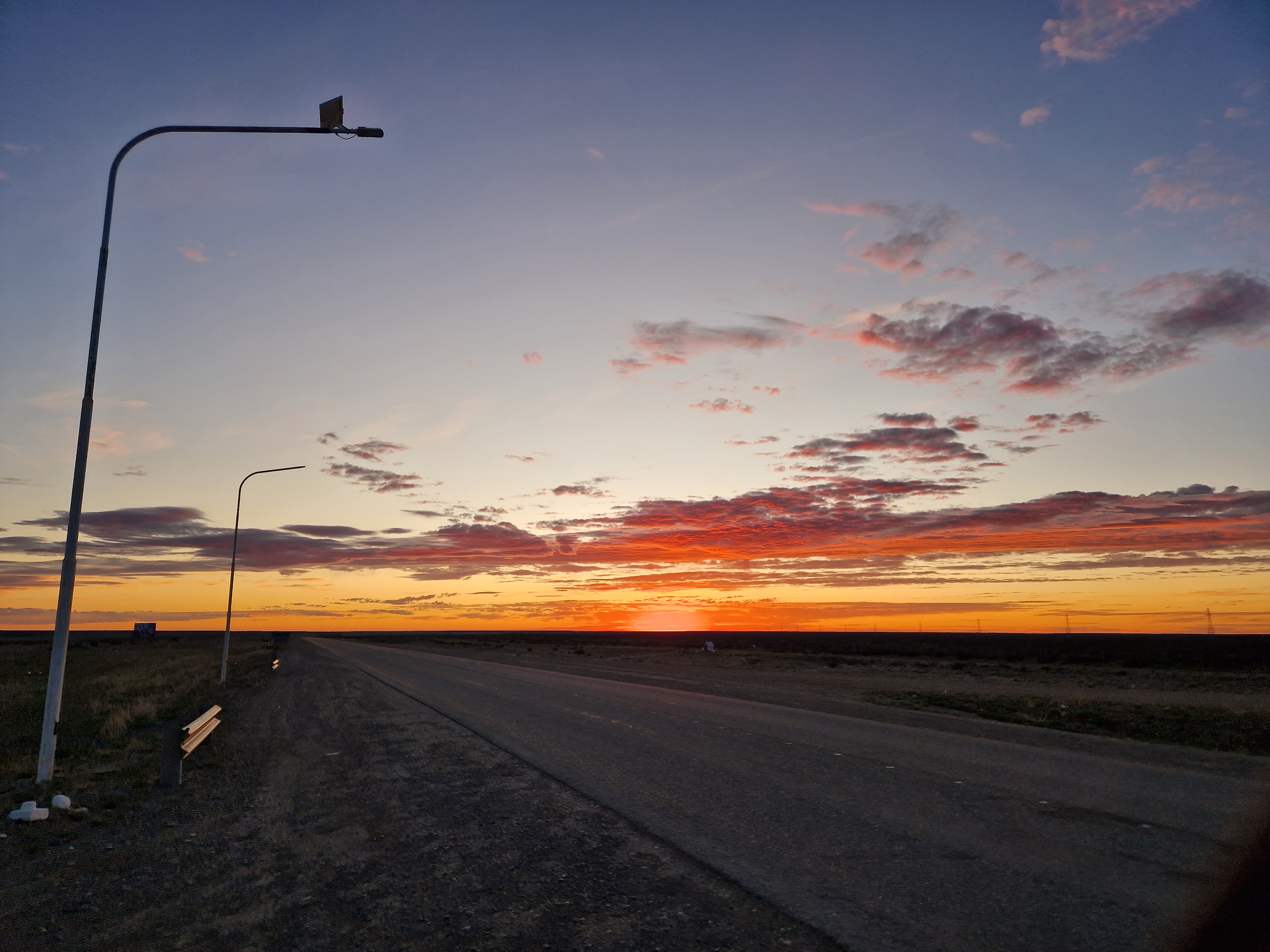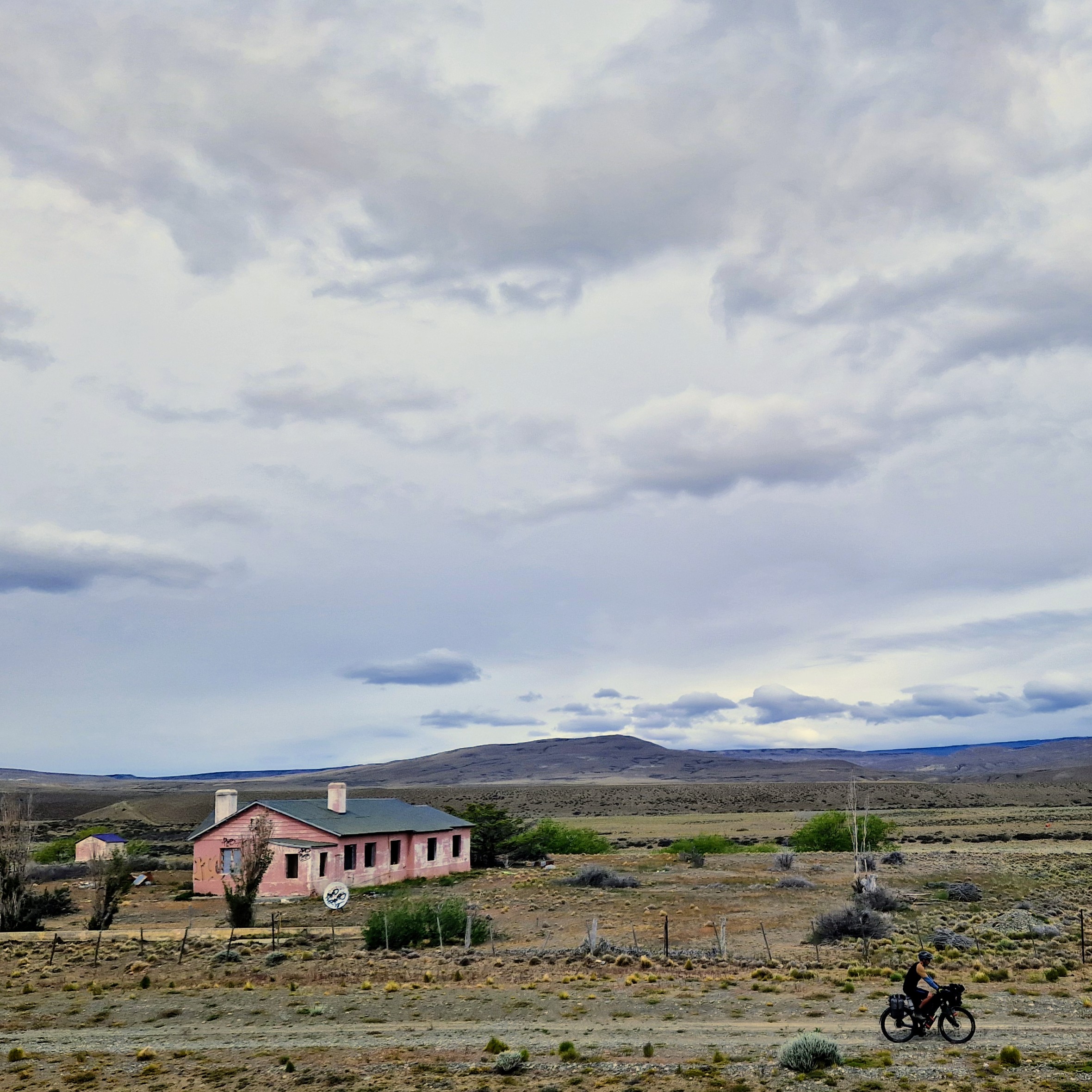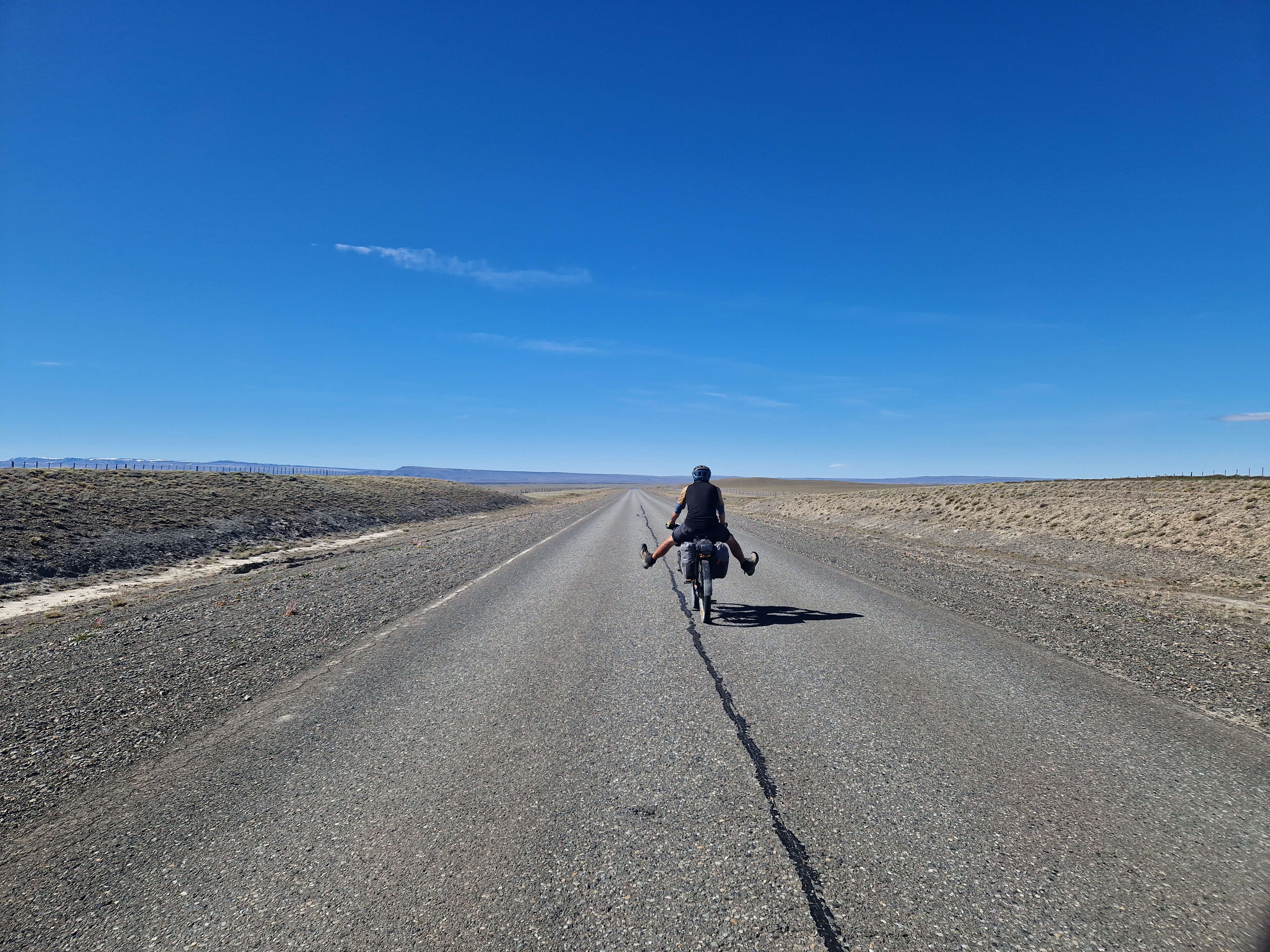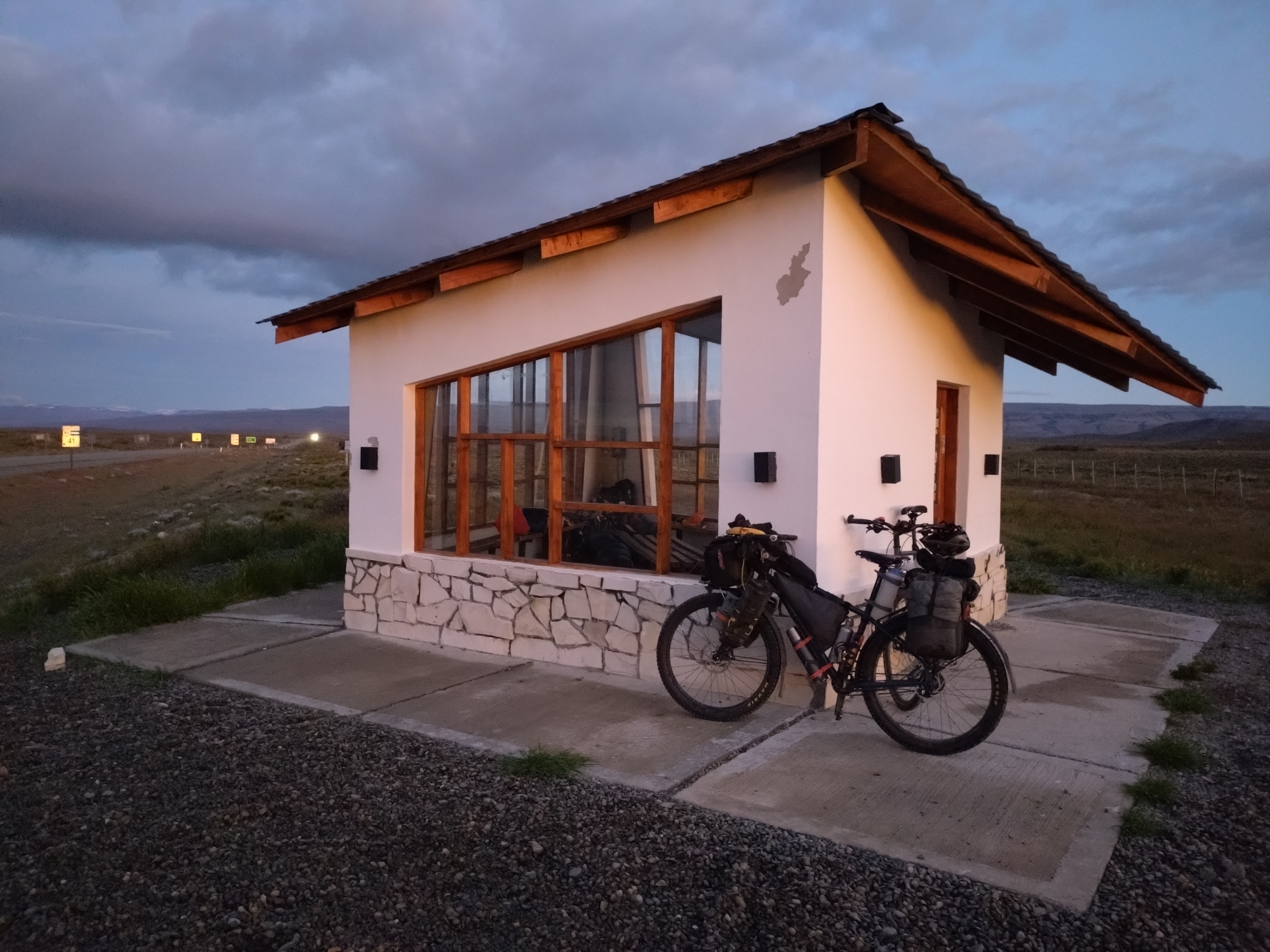 Heading towards the well-known tourist honey-pot of El Calafate there is a stretch of road through the pampa which crosses the border from Chile back into Argentina. It’s about 250km long, and it’s renowned for being fierceome if you get caught in bad winds. With us heading North this was pretty inevitable. Once you pass the small very expensive services at the Chilean border, you’re on your own for the duration – just us, huge expansive flat pampa, mirages and a few guanaco – other than the three AGVP posts. The AGVP posts are accomodation for road service workers and thankfully also offer cyclists water refills and a wall to shelter behind in your tent. It doesn’t sound like much, but it’s honestly a life saver (well definitely a tent saver!). We timed our crossing of this section by riding only when the wind was at its lowest. Unfortunately for us, this meant we were on the bikes riding before 5am three days in a row and had to cover around 100km by lunchtime each day to make sure we weren’t caught out in dangerous afternoon gails. Having experienced a taste of the head winds earlier in our trip, we didn’t want to repeat it, so the 4:00am alarm was the preferable option – And that’s saying something for Ted who hates mornings! But we will forever be grateful to the AGVP posts who offered us a little shelter from the winds overnight and in reality made the crossing of this 250km stretch feel much less lonely.