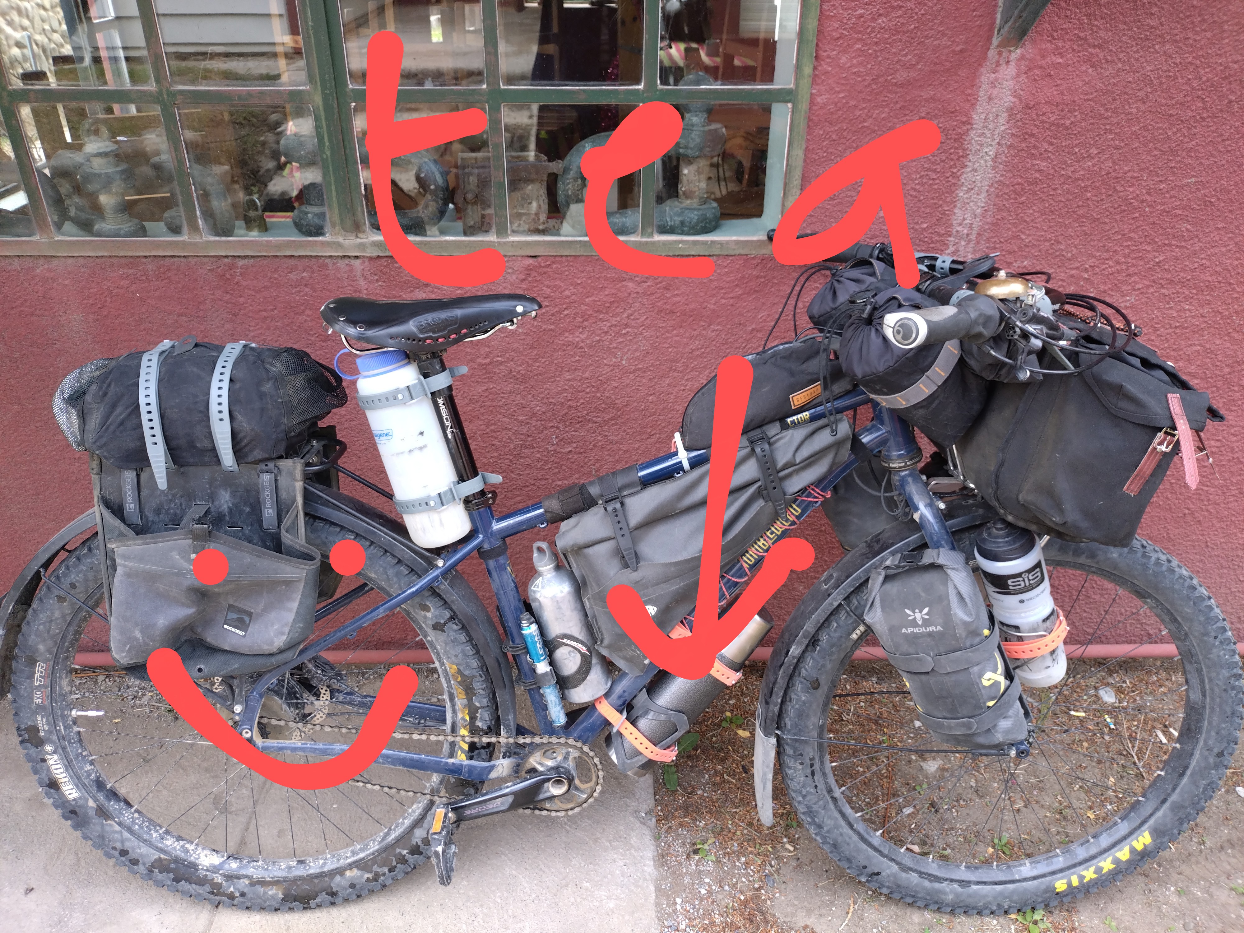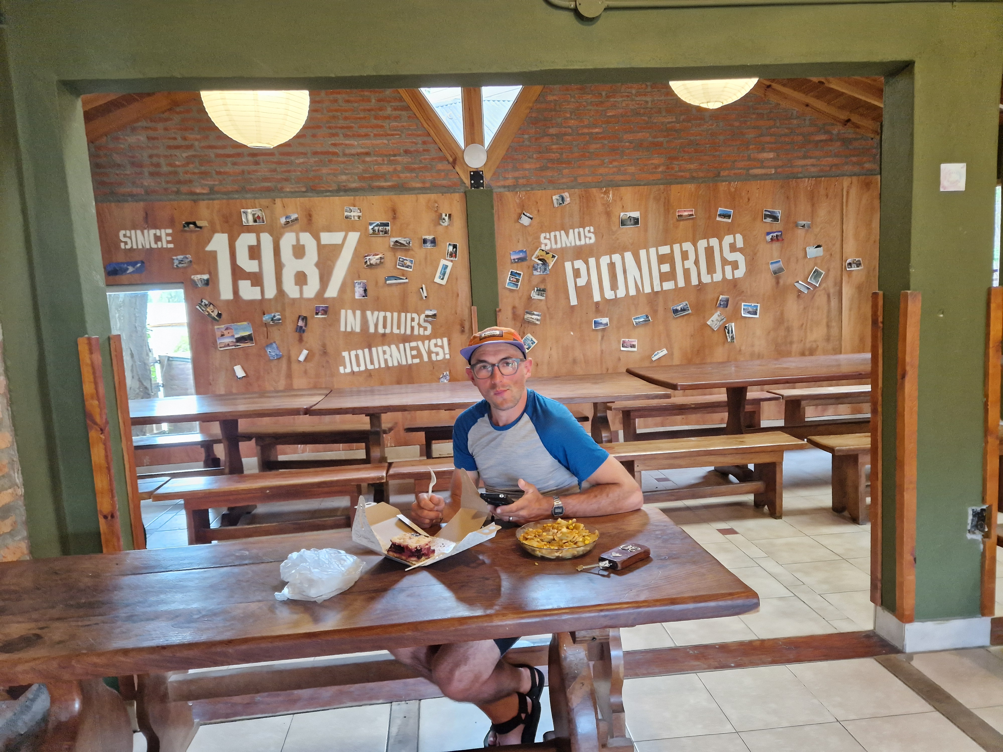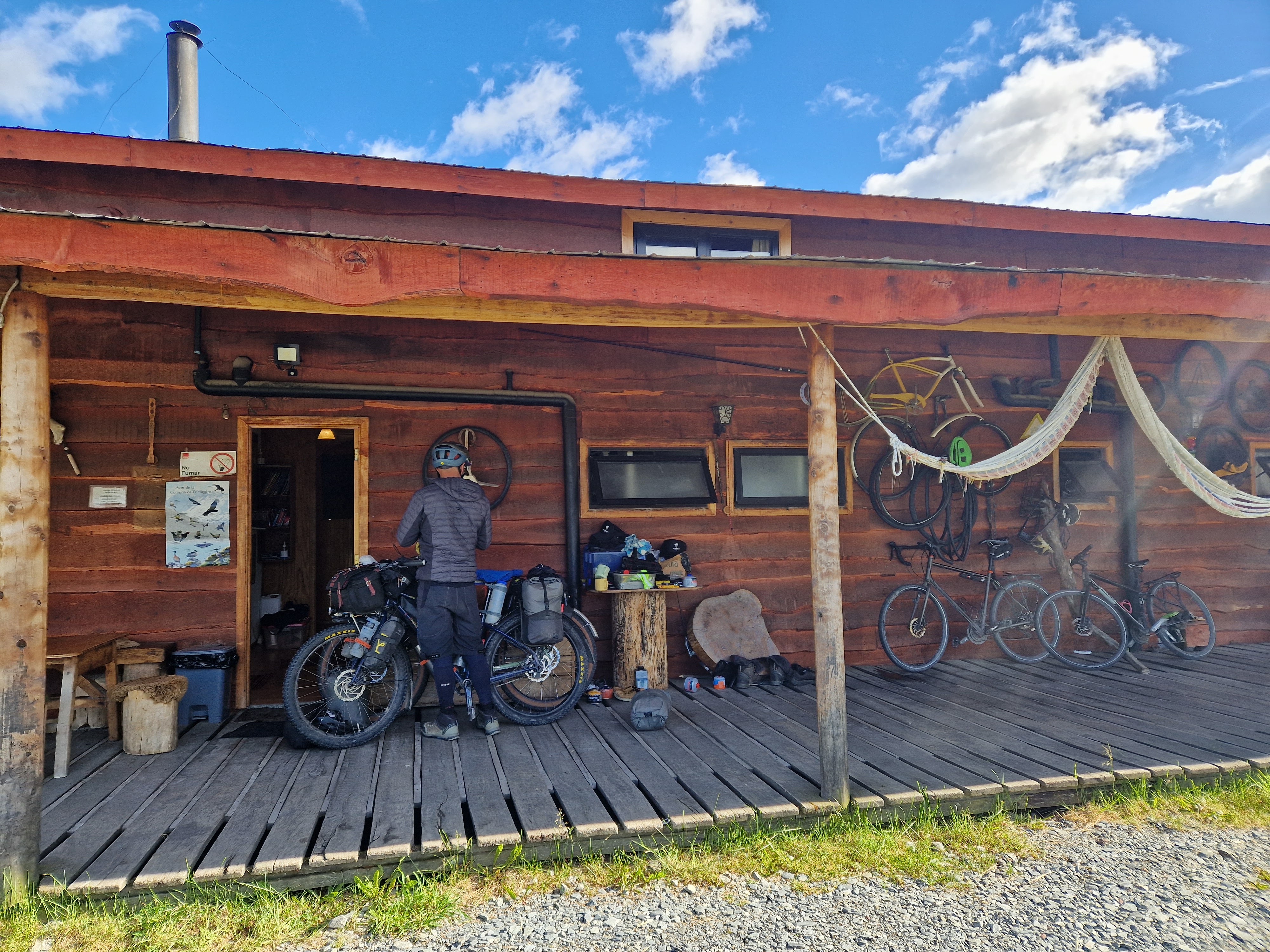 The lack of shelter along the roads through the pampa does have a few positives, the main one being that the little shelter there is becomes a small hub for cycle tourists, and it gave us our first experience of meeting other cyclists. Since then, we’ve gone on to meet many more. Despite Ted’s general dislike of people, it has been a true pleasure to meet all the other cyclists. With some we’ve just shared a short roadside moment of comradery, with some we’ve swapped stories and tales, with others we’ve benefitted from their experiences and learnt a little about what to expect as we head North, with others Ted’s helped fix bikes or mend broken parts, with some we’ve shared food together and with some we’ve already grown to become fast friends. But most of all, it’s great to know there are lots of other lovely folk out there travelling on bikes, all of whom are about as bonkers as us! Ted also geeked-out on all the gear talk and bike comparison, endlessly amazed by the different (and, in his eyes, obviously wrong!) approaches everyone chooses to make. There’s vast differences in the amount of luggage – what some people carry with them is truly mind-blowing (2 pairs of jeans, 3 stoves, 3 hard-drives, 2 phones, a laptop, a drone – but no brake pads! Or perhaps a jam pan, anyone!?!), and likewise what we think of as essential, others chose not to carry at all (the brake pads being a prime example!). Our bikes have about 50 Litres of luggage volume (including all food and water) and they are heavy. We’ve so far seen other bikes loaded with about 150 Litres of stuff – A heroic effort to move at all, let alone cycle across a continent, so hats off to them – but I think some would benefit from just posting a lot of stuff home!