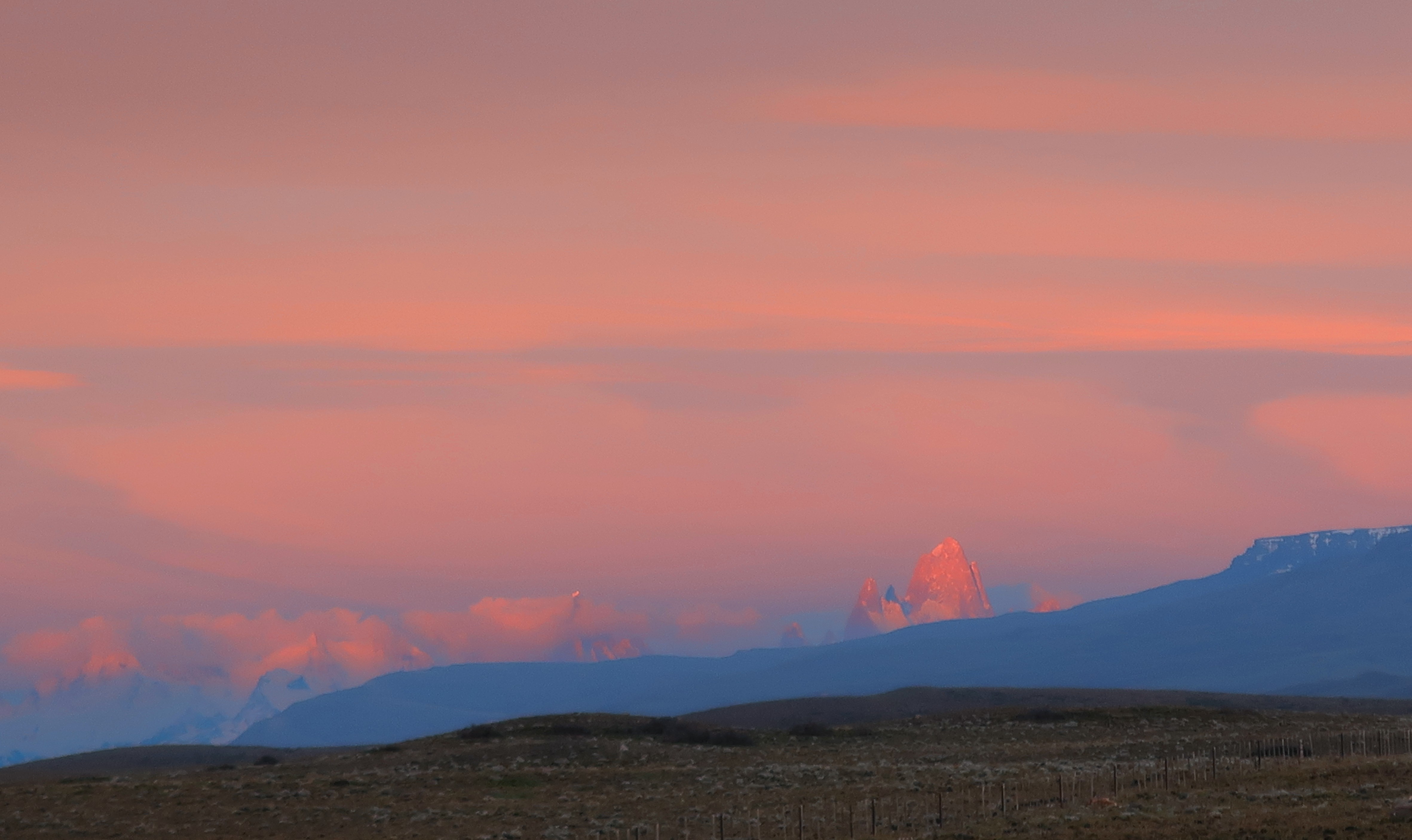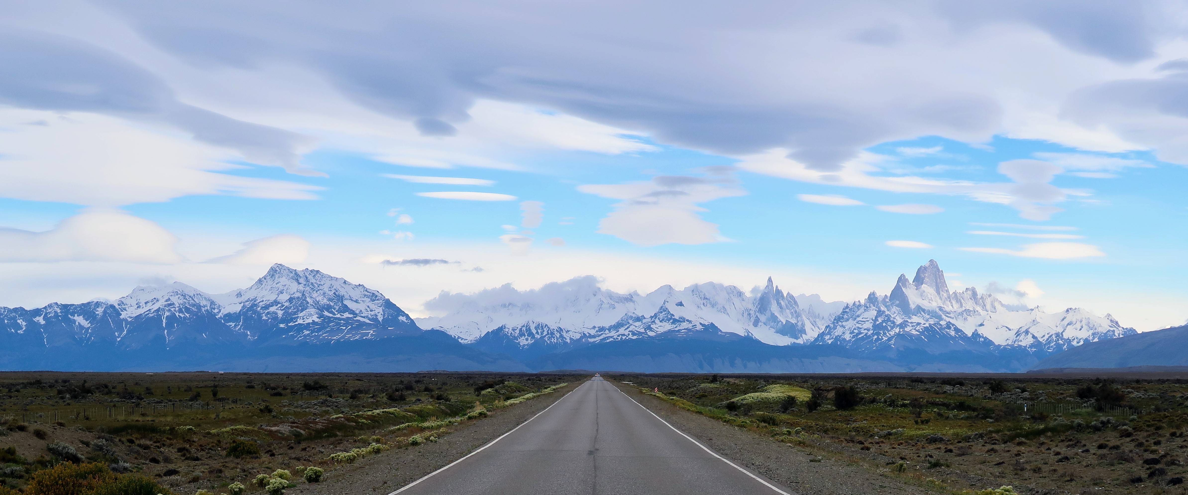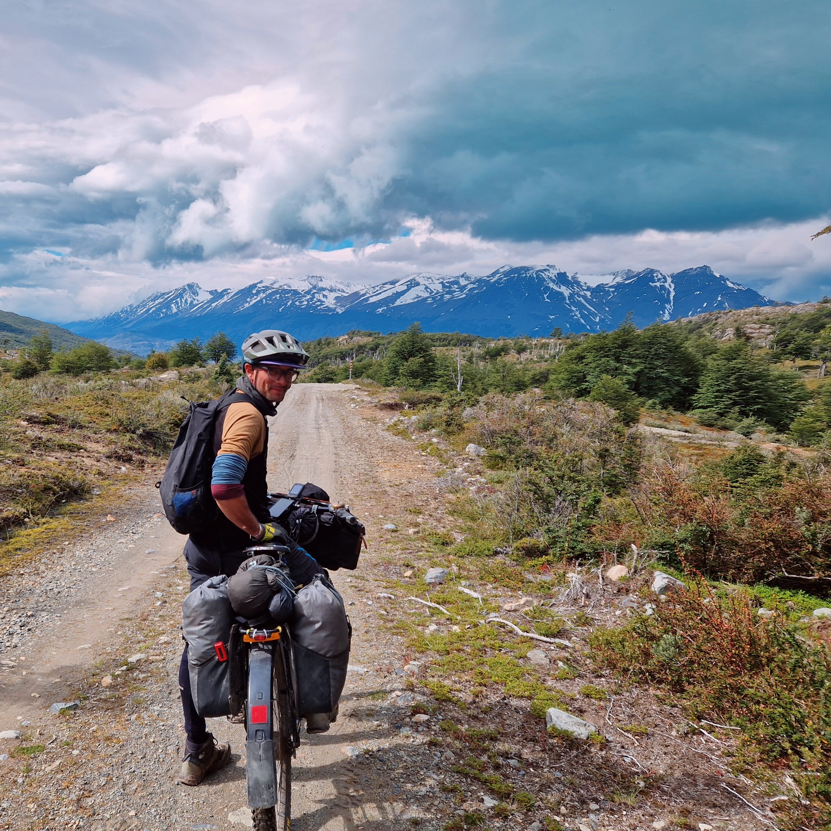 As I’ve already mentioned, we’ve had a few early starts to avoid the worst of the wind and it’s meant we’ve become acustomed to a 4:00am alarm. I mean, I love early mornings but even for me this is pushing it! That being said, once you’ve dusted the ice off your bike, put on all your layers and hit the road, watching the sun creep over the horizon and across these incredible Patagonian landscapes is a pretty special experience. The air is still and calm, everything is quiet, there’s no traffic and you often find yourself riding alongside the herds of guanaco who run with you for a little while before finally jumping the fence. One morning that will be etched in my memory forever was our approach to El Chalten and the Los Glaciers National Park. The road directly faces the famous mountain range of Fitz Roy, unusually the whole skyline was clear of low lying cloud and as the sun rose over the horizon behind us, it cast a golden pink glowing light onto the mountain top of Fitz Roy, turning it into a burning glow, the light spreading to each individual mountain top in turn and as the sun grew higher the golden light crept a little lower down each mountain side until they were all glowing golden pink. But no more than 5 minutes later it was gone, the golden dawn glow had faded to a warm white, almost as though we had imagined the whole thing. The rest of the day riding to El Chalten continued to provide incredible views of mountains and glacial lakes with icebergs. We also enjoyed the experience of watching a group of huge condors catch the thermals and soar overhead, one after another, all in line like giant planes coming in to land on a runway. But it’s the memory of that dawn pink sky on Fitz Roy that we’ve both said we’ll treasure the most, so we’ve learnt to love that 4am start just a little more.