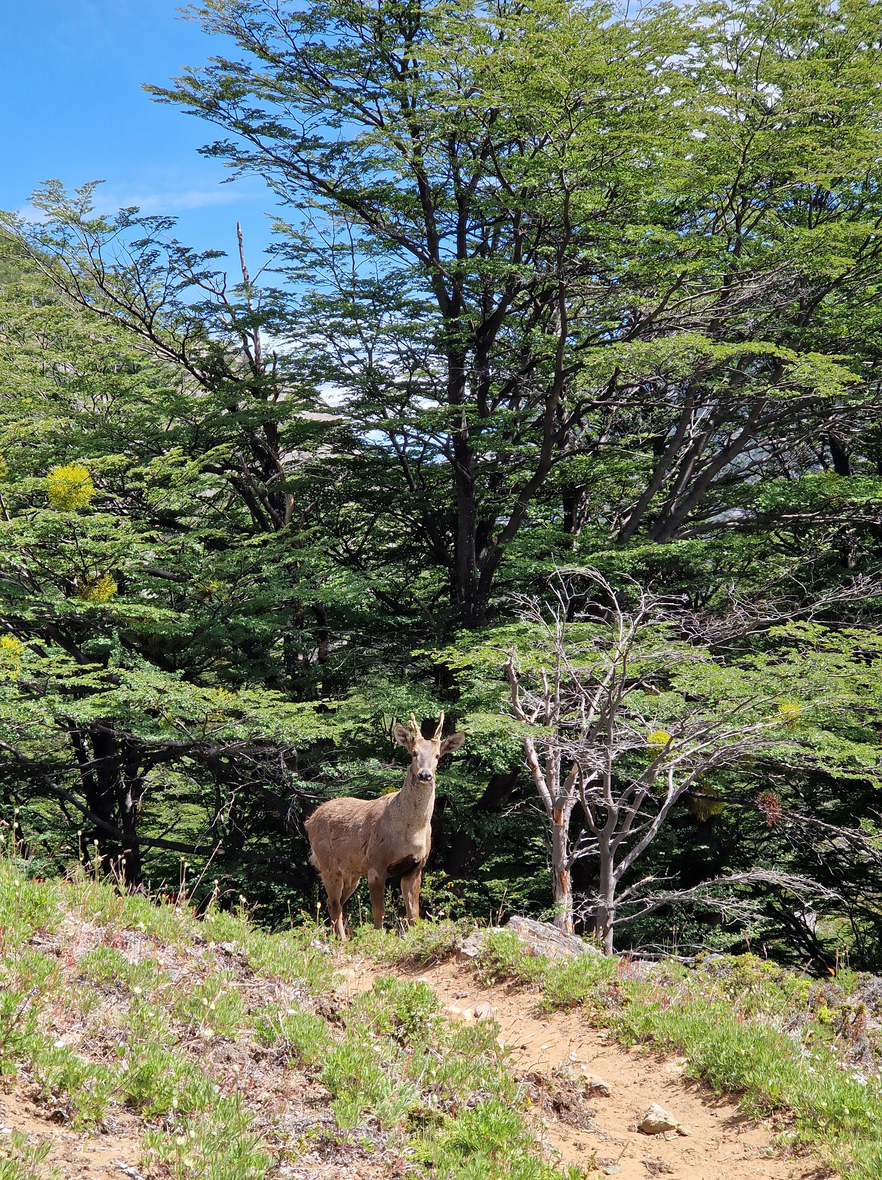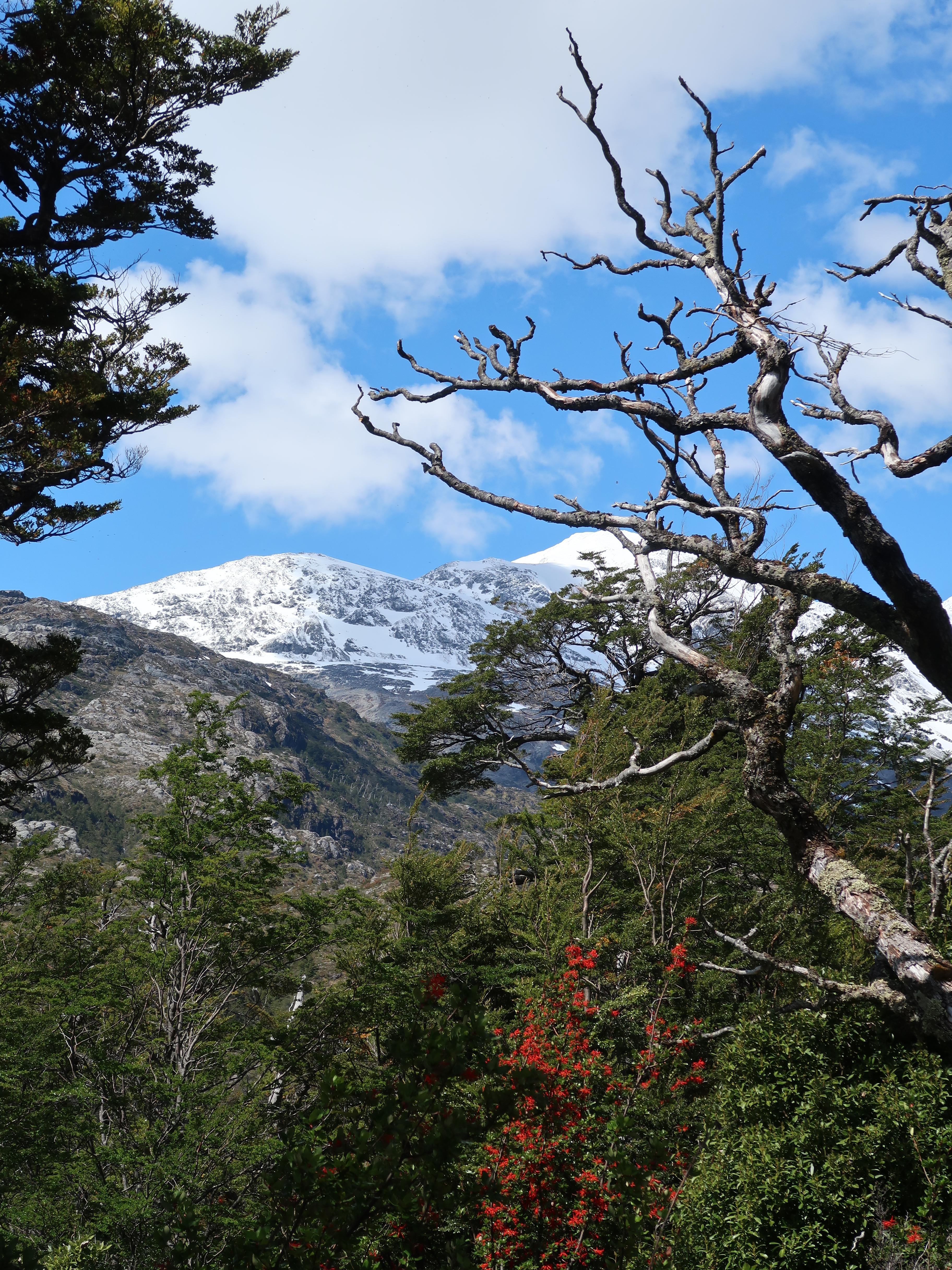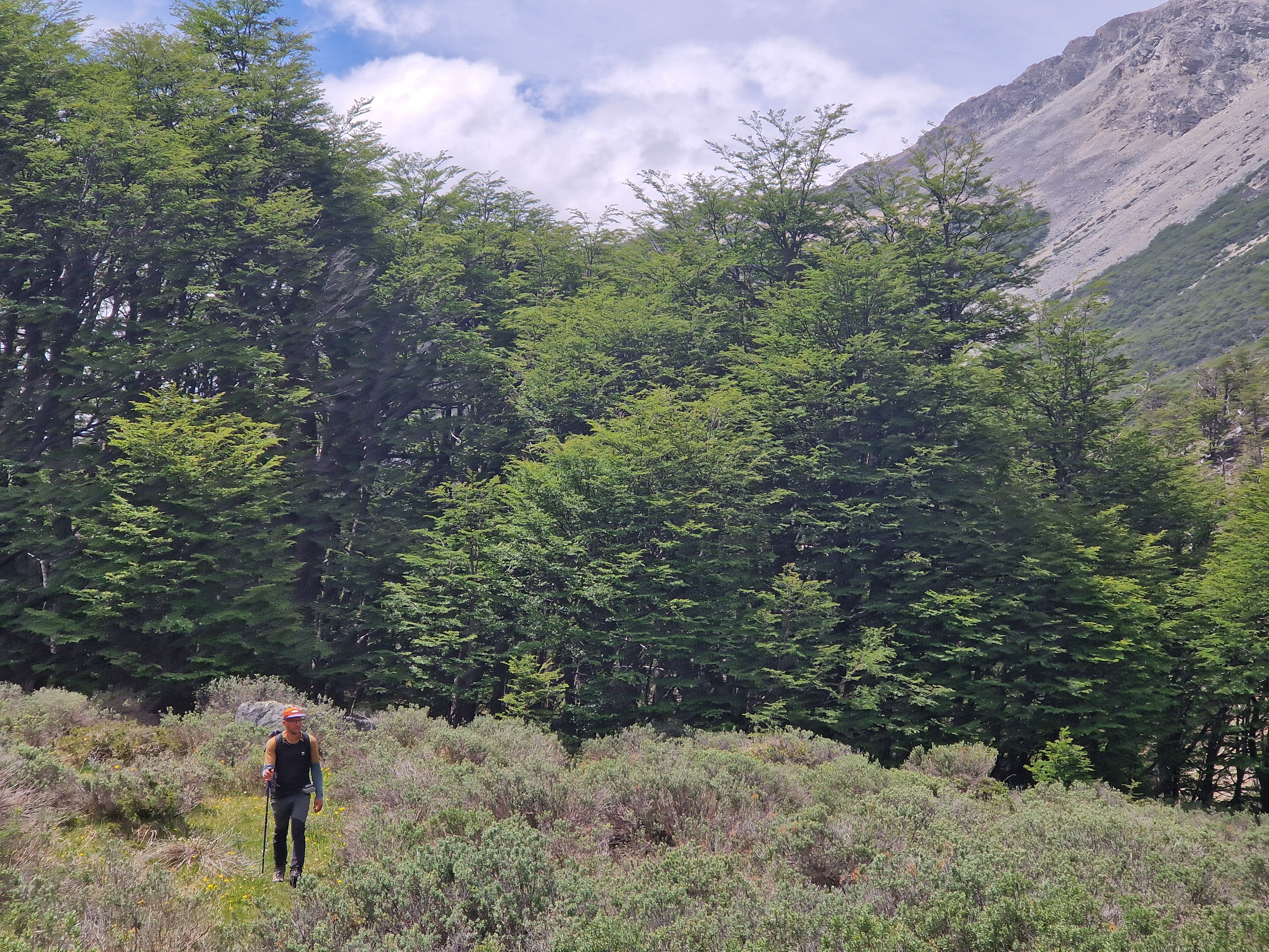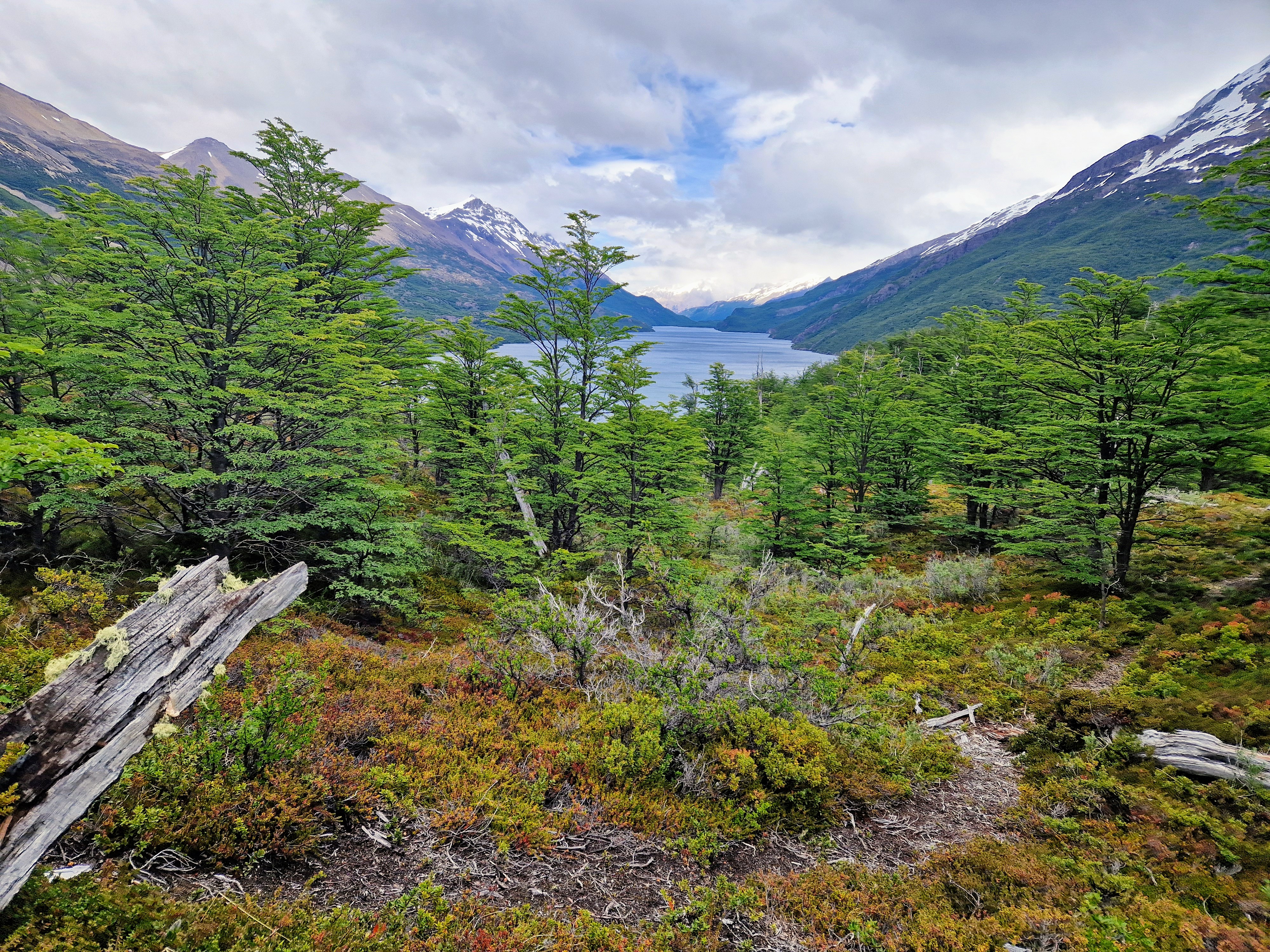 Through the other cyclists we’d met, and through our own research, we’d heard lots of tales about a small section of hike-a-bike that forms part of the route from El Chalten to Villa O’Higgins. It’s one of those stories where every time someone mentioned it, the arduous nature of the trail increased – the length became longer, the climb higher, the trail muddier, the time it takes increasing. It sounded like a trail that was right up our street and with all our previous experience of hike-a-bike on this trip, we figured it couldn’t be that bad. Again, we’d been warned that heading North made things more difficult as we would be climbing uphill for the 6km of trail. But we were keen to see how we would fare on bikes that are made for off-road riding and Ted reminded me of all our ‘training’ for this type of terrain from the European Divide. It was definitely the case that we had to push, carry and drag our bikes through narrow twisty, turny, rooty woods, over streams and across precarious log jams. As with all hike-a-bike it was physically demanding. Not easy. But in all honesty, despite being tired from our early start and sprint to the boat, we actually enjoy it. We took our time, there was no rush and we loved being in the beautiful untouched forest. We also took the opportunity to re-building some of the stream crossings where the logs had been washed downstream by the spring melt water. How on earth those with heavily loaded touring bikes manage it though, I do not know.