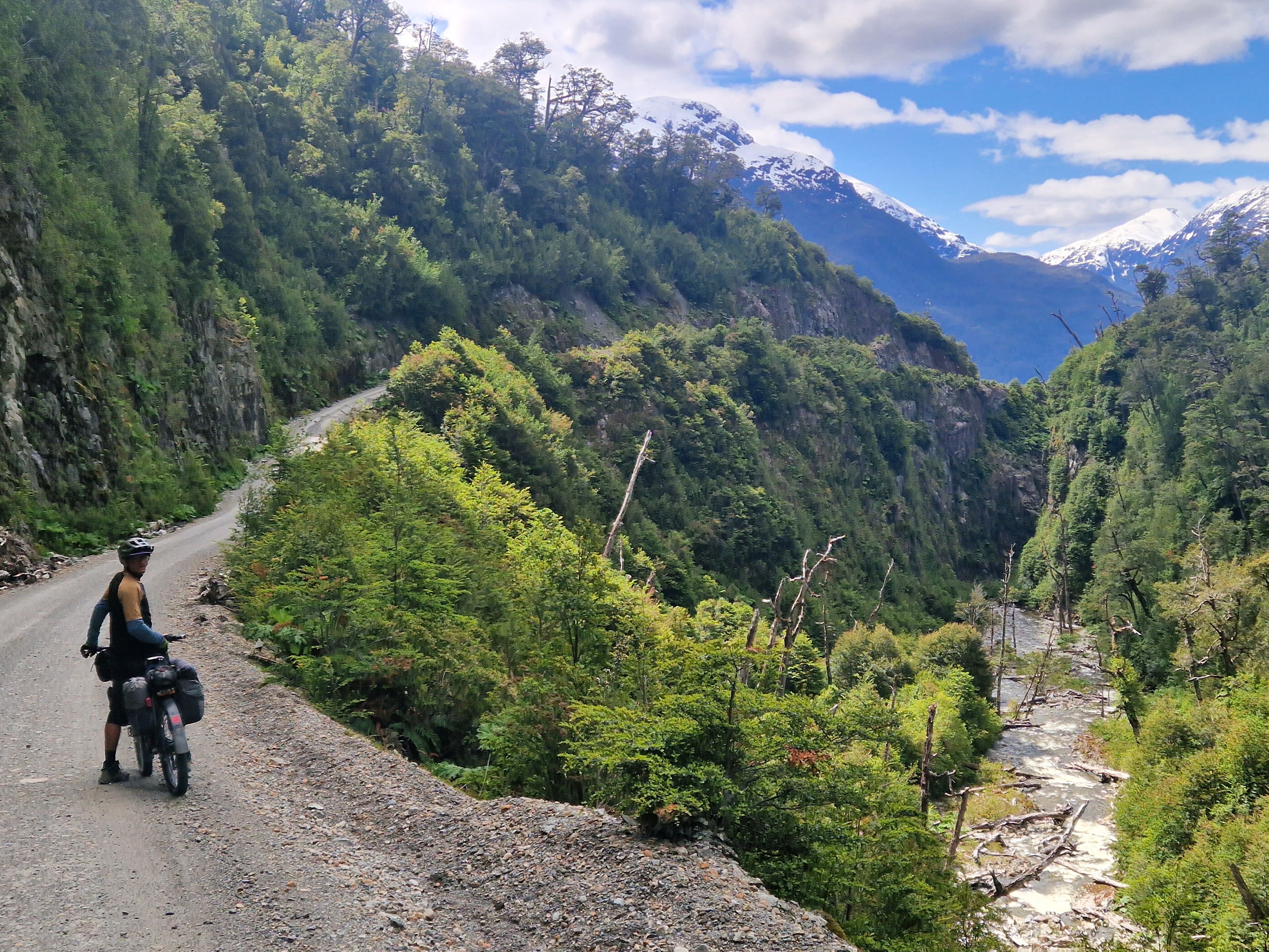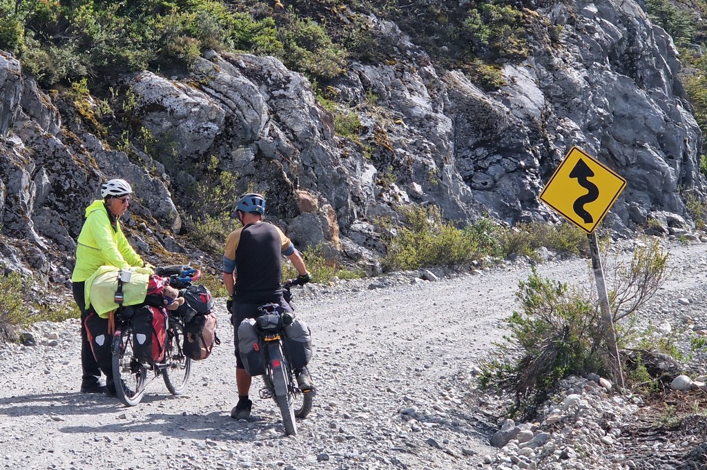 The Caraterra Austral is the name of the Ruta 7 road in Chile. It runs from Villa O’Higgins in the South to Puerto Monte in the North. It is an extremely popular classic cycle touring route, but the bottom section (of about 350km) is unpaved gravel, so is pretty shakey for many cycle tourists on skinny wheels with heavy loads. Despite our intention to spend as much time off road as possible on this trip, this classic is the main route North through Patagonia and there’s good reason. The scenery along the road is incredible, every corner, every hill top presents another unbelievable view of mountains, valleys, lakes, glaciers, rivers, gorges, forestry and waterfalls. It’s hard to describe it all, so again I’ll let the photos work their magic. Yes the road is unbelievably dusty (which isn’t great for my asthma or Ted’s sinuses which seem to block up everytime he gets on the bike!), and yes some of the vehicles are very inconsiderate of cyclists (not slowing down or giving us space), but all that is easily forgotten when you take a moment to look around you and absorb where you are. It’s pretty special.