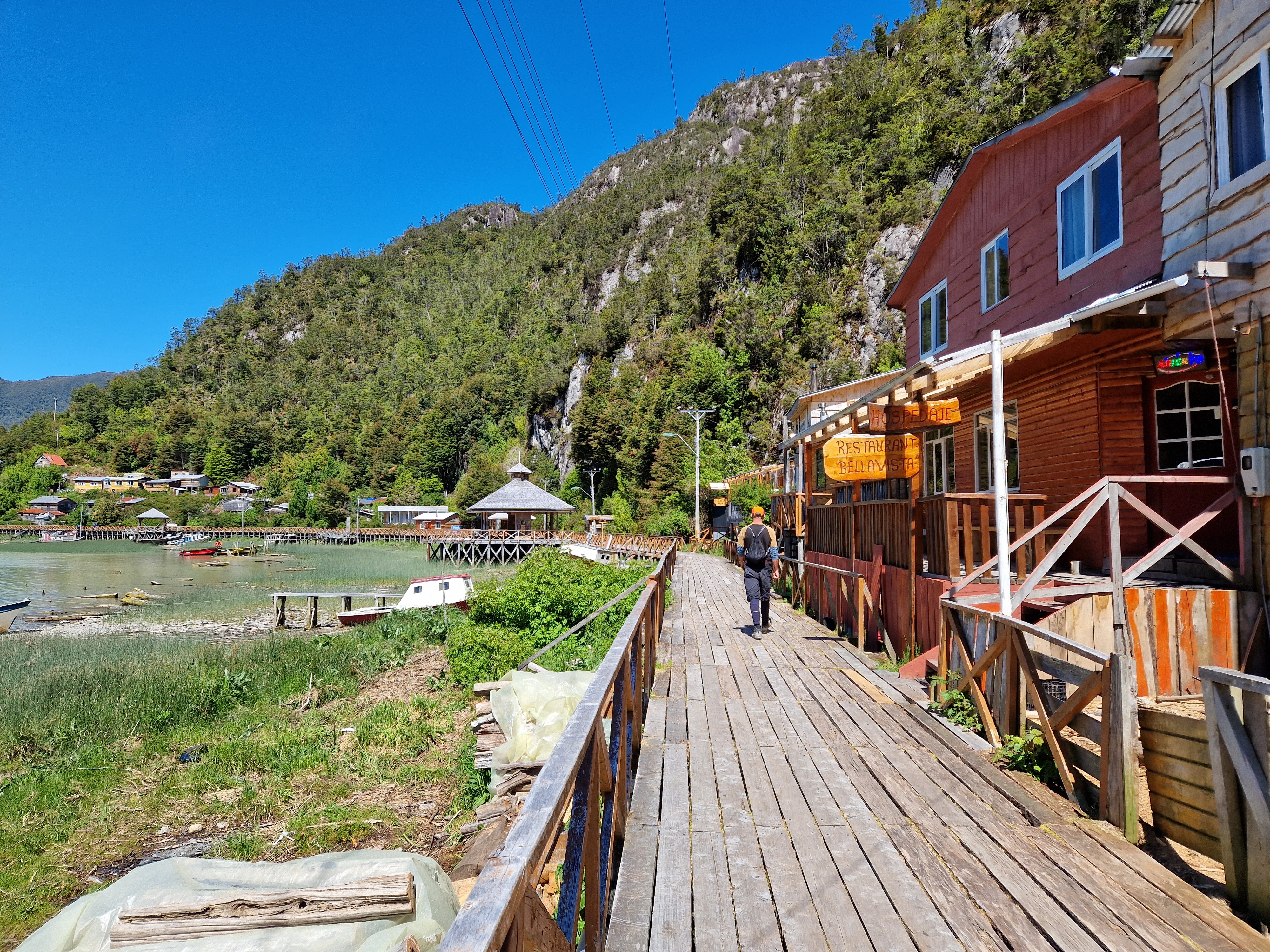 Ted frequently mentions in passing that he never loses anything. I don’t really believe that. I mean, for one, he left his cycle helmet in a café in El Chalten for a couple of hours, but thankfully it was still there when he realised. Secondly, he left his waterproof coat at one of our lunch spots, and was grateful that the wind hadn’t whipped it away when he cycled back to retrieve it. And thirdly, he left his leatherman tool (which is our only, and therefore essential, multi tool) on a rock at our campsite before our ferry crossing to Villa O’Higgins. Ted obviously had no desire to repeat the ferry crossing, and on speaking to the amazing staff at the hostel they had no qualms in contacting the campsite owner, who went in search of the leatherman and somehow found it. Despite the long and slightly complex journey of a boat, then a car, then a bus, then a bus on a boat(!) we were casually assured that if we set off cycling, the leatherman tool would come on an adventure of its own and meet us in Tortel (2 days ride away). Tortel is a unique village, nestled onto the edges of a sheltered fjord at the west of Patagonia. The village is entirely built over the fjord, with wooden walkways and platforms linking the buildings, which are all built on stilts. The water of the fjord is glacial blue and the steep sided fjord is tree lined right to the waters edge, so on first glance it looks more like Fiji than Patagonia. We were really pleased to have made the effort to detour to such an amazing place to meet the leatherman. Miraculously, at 1pm just as planned, the bus pulled up and as Ted told the bus driver his name, the package containing the leatherman was handed to him. Amazing. We marvelled at all the kind people who’d helped to get it back to us. We thought about how it was the people in this tale that had made it all work. In the UK we are likely to have been told to fill out a form or two or three, and it’s likely to have been lost forever! So strictly speaking Ted may have not lost anything (just yet), because he’s always managed to get it back or find it – miraculously!! But I suppose it depends on your definition of lost, right!?!