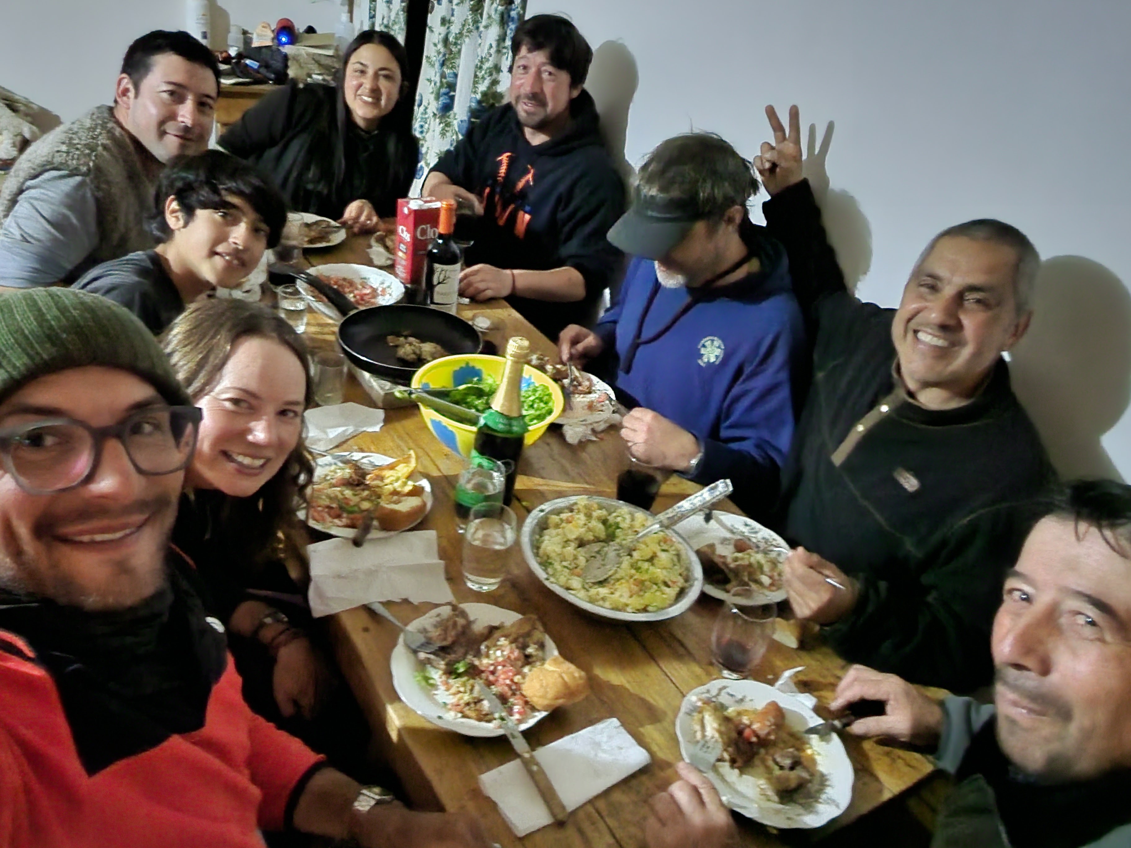 On packing up to leave the farm, we were invited to stay for Christmas and to eat with the family, as they were making lots of food and slaughtering a couple of sheep for the special occasion (a tricky position to be in as a vegetarian!) but it was such a generous offer we couldn’t refuse. We don’t really feel festive as we’ve obviously not enjoyed any of our usual festive traditions, and the summer weather here has made Christmas feel very topsy turvy, but we know it’ll be a Christmas like no other for us and a real joy to be able to experience a true Chilean Navidad, being welcomed by such a kind and welcoming family. We are really appreciating the opportunity to pause and enjoy this special place with such a warm and generous family – There’s no phone reception, no internet or WiFi, no mains electricity, the only water is the stuff that runs off the mountain side, just one family, three generations and taking the time to slow down and appreciate the simple things is a real gift. So Merry Christmas / Feliz Navidad to one and all.