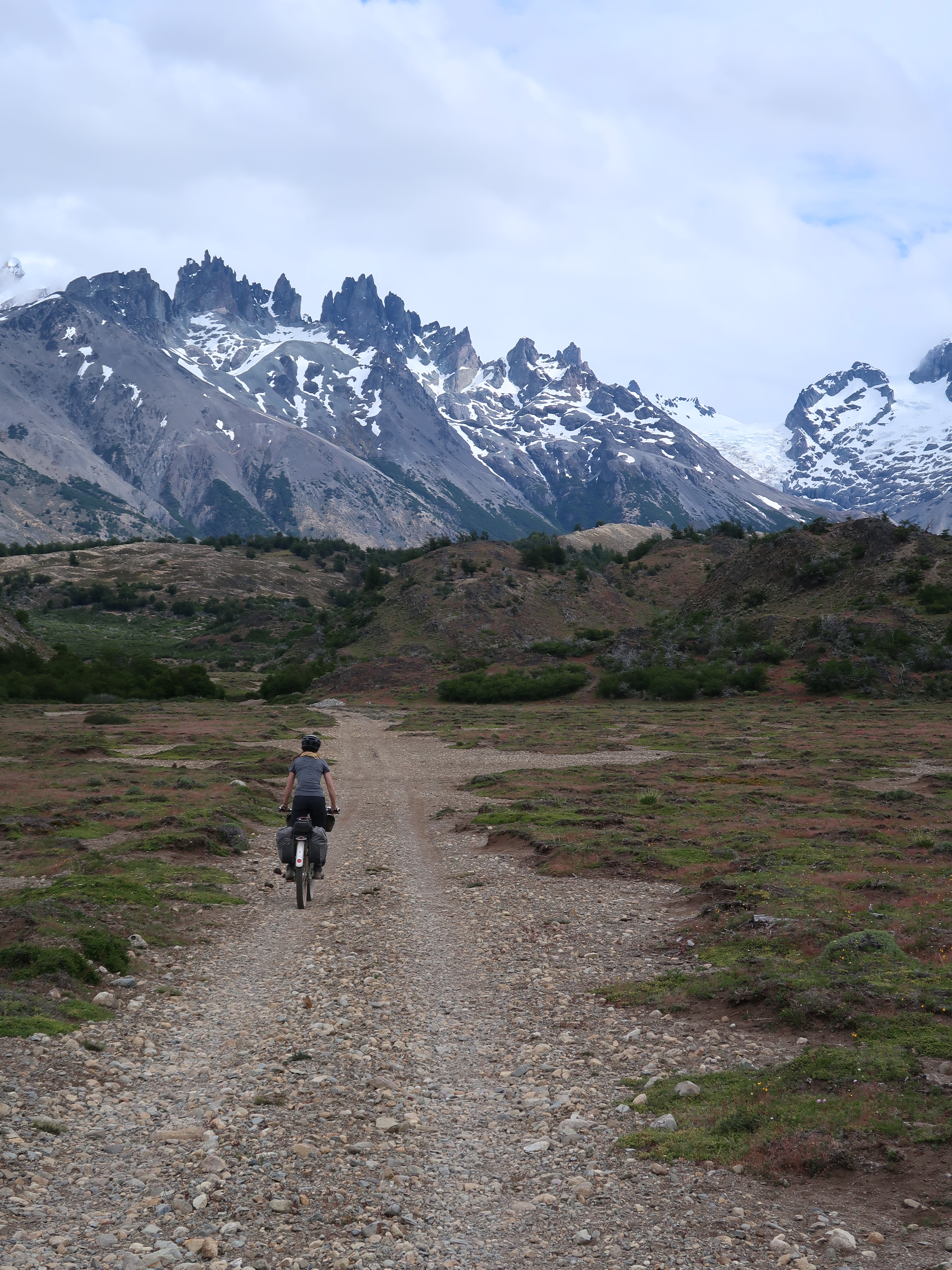 After a few hours of broken sleep in the noisy, grotty hostel we set off, blurry eyed and with foggy heads towards the boat dock. It was raining. There was a really strong headwind. It was uphill. The ‘gravel road’ was more like an off-road 4×4 track. It was just after 5:30am. I felt like I was racing the clock. It was like some tortuous endurance bike race where the only prize was getting on the boat we had paid £50 each for. I was not a happy bunny!! I was questioning my life choices. I was hugely cursing our decision to get on this flippin boat – surely there was a boat next week we could have got instead!? and surely we could have found some more cash somewhere!?! But after three hours of head down pedalling, tired tears merging with the rain on my face, battling the weather and fighting my own internal voice as I sweated away inside my waterproofs feeling like boil-in-the-bag rice – we made it. Even had time to spare (after all that!) so after a cup of tea and my favourite pick-me-up snack of apple and peanut butter, all was right with the world again! It was a shame our time in El Chalten was probably less than 12 hours in total, but in the end it was the right decision for us, as it meant we’ve been able to enjoy rest days in other places – and not in the grotty hostel!