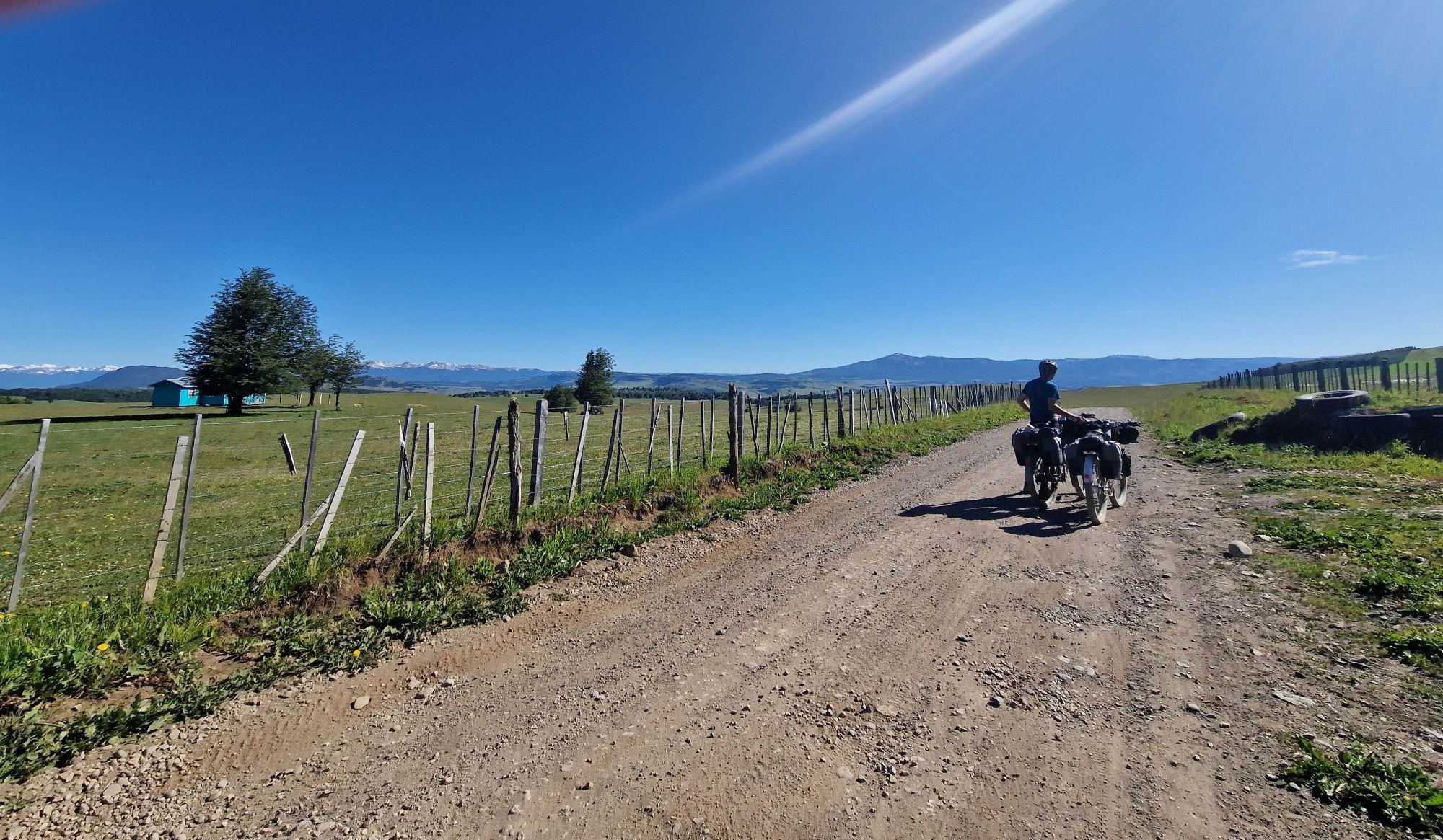 The final part of this trail then took us out of Lago Verde, over Paso Las Pampas, across another remote border post. We would be leaving Chile (again!) and entering back into Argentina (again!). The trail itself was lovely to ride, winding, dusty, flowy doubletrack which we both really enjoyed. Sadly a lot of the forest here had been destroyed by wild fire, the skeletal remnants of the trees chared and blackened.