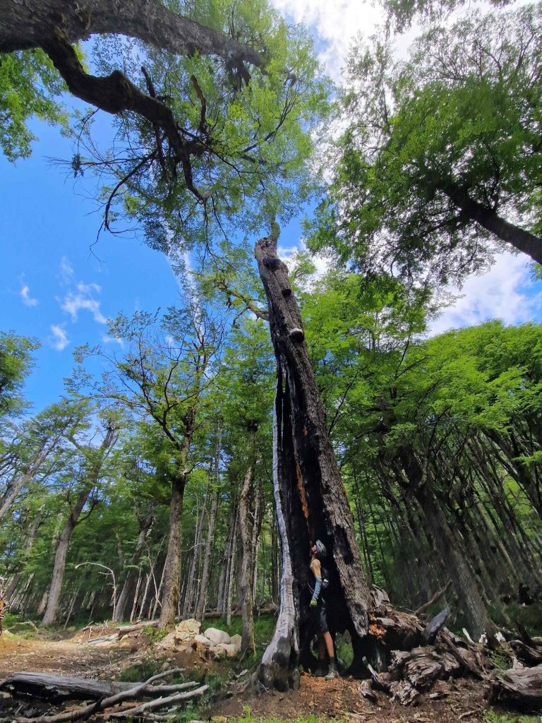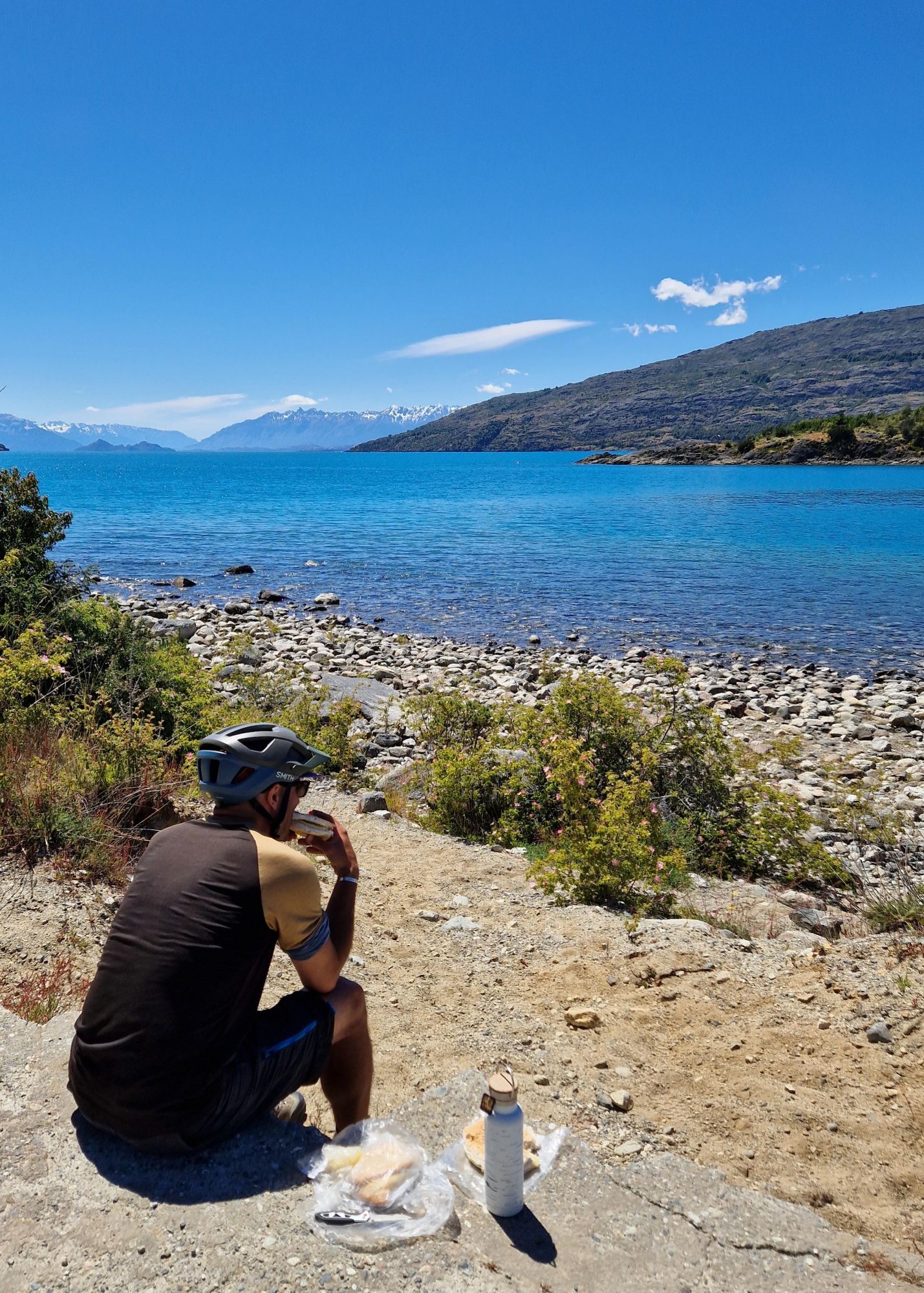 Our final morning on the trail was glorious – it was a whizzy, dusty track through old growth woodlands filled with huge Southern Beech trees. It was a forestry wonderland. It was just what we needed as Ted’s back had not been playing ball. He had suffered a particularly “unbearable” spasm the night before, so he was now being overly cautious. We took our time and enjoyed the final descent into the village of Lago Verde, lapping up the warmth of the morning sun. We rolled straight to the well stocked supermarket to replenish our supplies and fill our tummies.