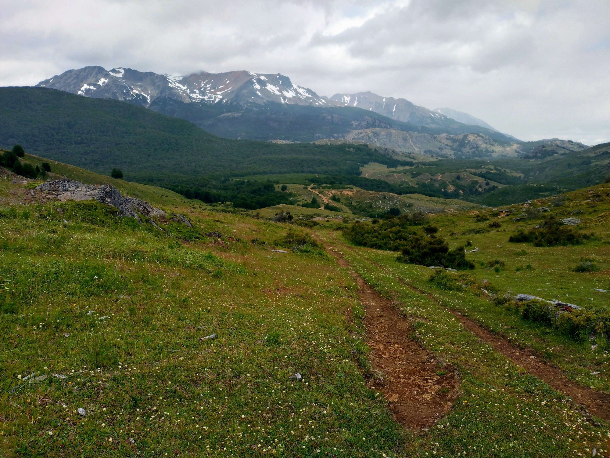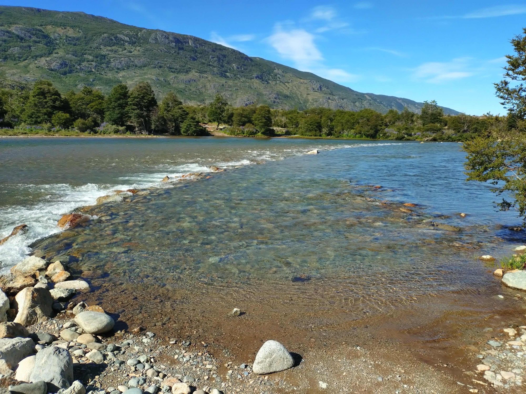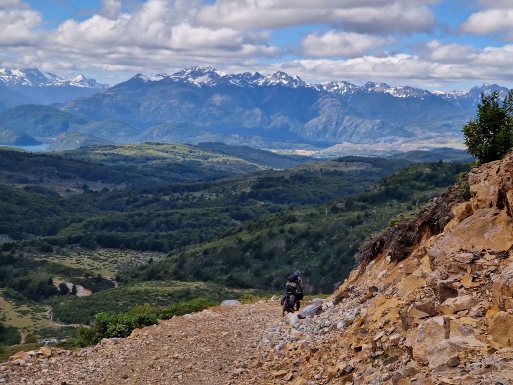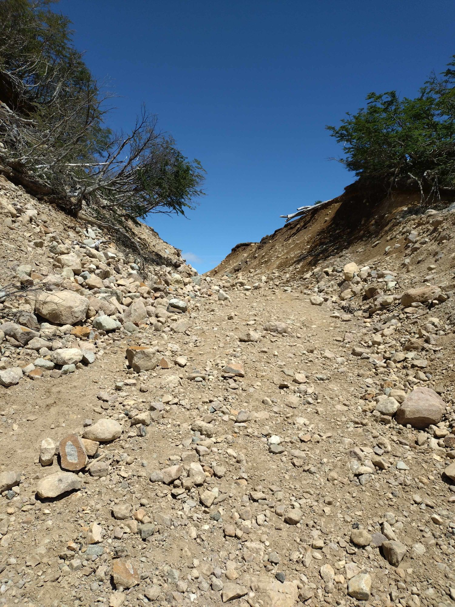 The following morning, we head out enjoying the trail that wound its way through beautiful, silent old woodland and although we climbed a lot, it was mainly rideable. We passed the re-entrant we had seen on the map when looking for water the night before and splashed through the stream that ran over the trail there (smug face!). The trail felt ancient, like we were following the footsteps (or more accurately hoof prints!) of generations of gouchos for whom this track was a lifeline. We immediately felt immersed in nature, just as we had been dreaming about for all those hours on the Carretera Austral. It was magical. But all the while we were a little apprehensive. We knew we had another big river crossing coming up, and we just had to keep our fingers crossed that this one was passable.
