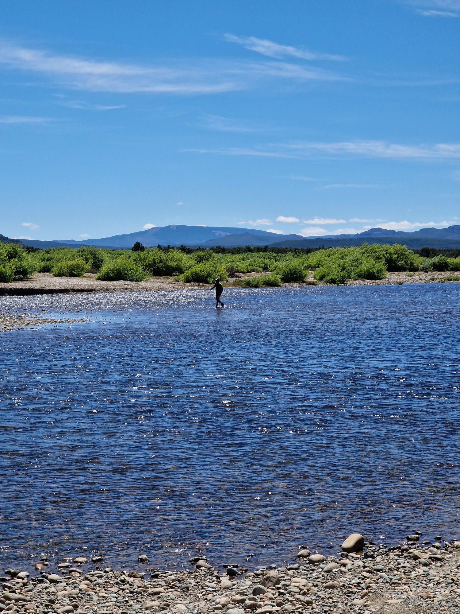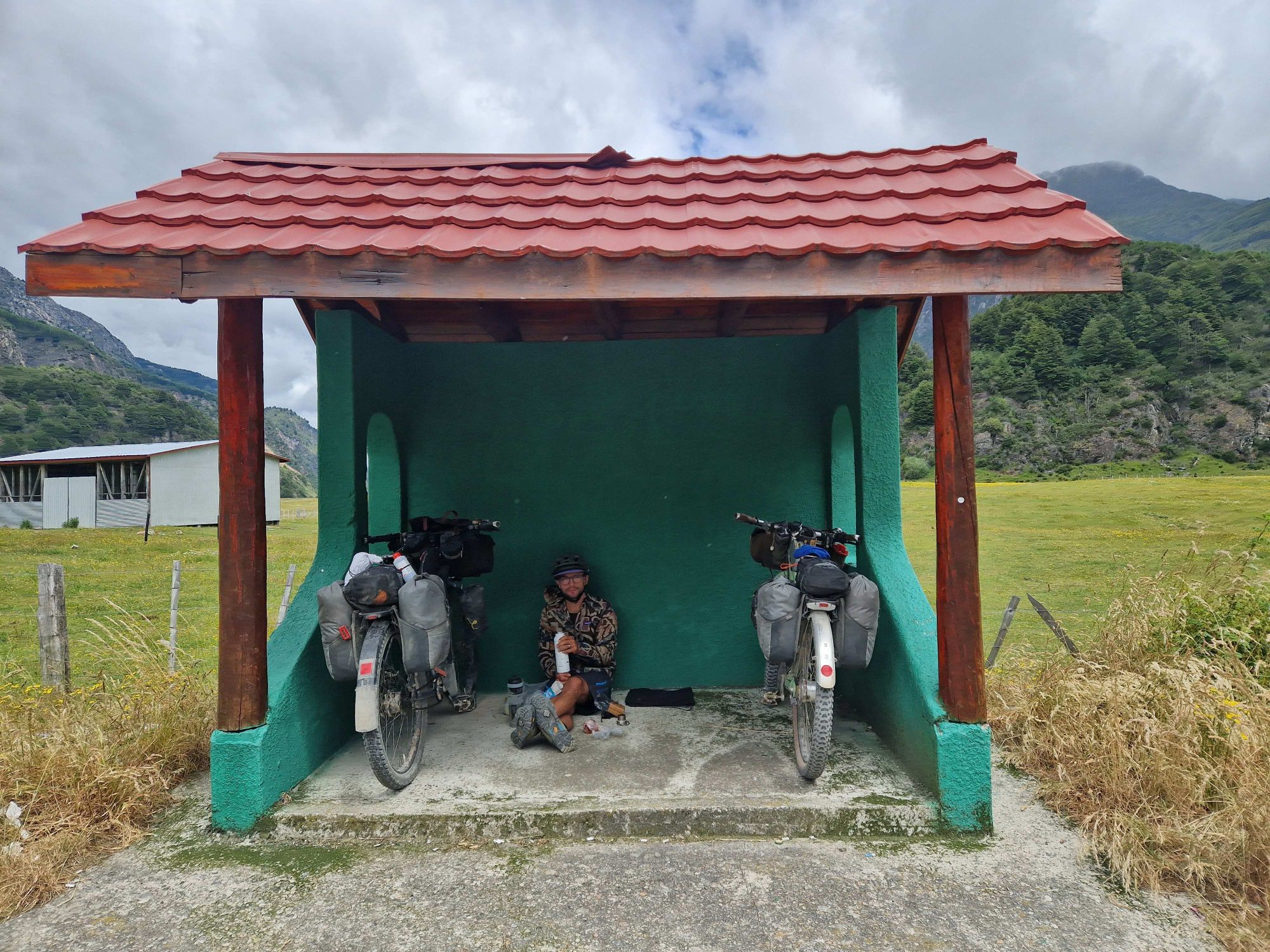 We knew there were two more big rivers to cross and it seemed the final river crossing (just outside the Argentinan border guard post) had a real reputation. We had already heard a lot about it from everyone we mentioned it to. We’d been told by locals, the border guards, and Andrey as well as having read in other cyclists blogs that the final river crossing could be chest deep (or more!). Everyone had said that crossing the river early in the morning was our best bet – so obviously we arrived at late lunchtime, not ideal! But as we approached, it really didn’t look too bad, so much so that I wasn’t convinced this was Rio Pico (the river everyone had been talking about). It was only knee deep at worst and really not that fast flowing. Having learnt our lessons over the last few days we pre-walked the route (with boots on, obvs!), took all luggage off the bikes, and even though we could have managed one bike each, we took the sensible approach of both of us to one bike at once. It meant we crossed the river a total of 8 times to get everything across. But we’d done it – It felt like we’d just passed our final exams in river crossing, Ted with an A+ and me with an A (could have faffed a little less!) As we rolled into the Argentinan border post we couldn’t quite believe our luck at the river water levels being so low, even the friendly border guard was surprised – so thank you Pachamama (Mother Earth here in South America).
