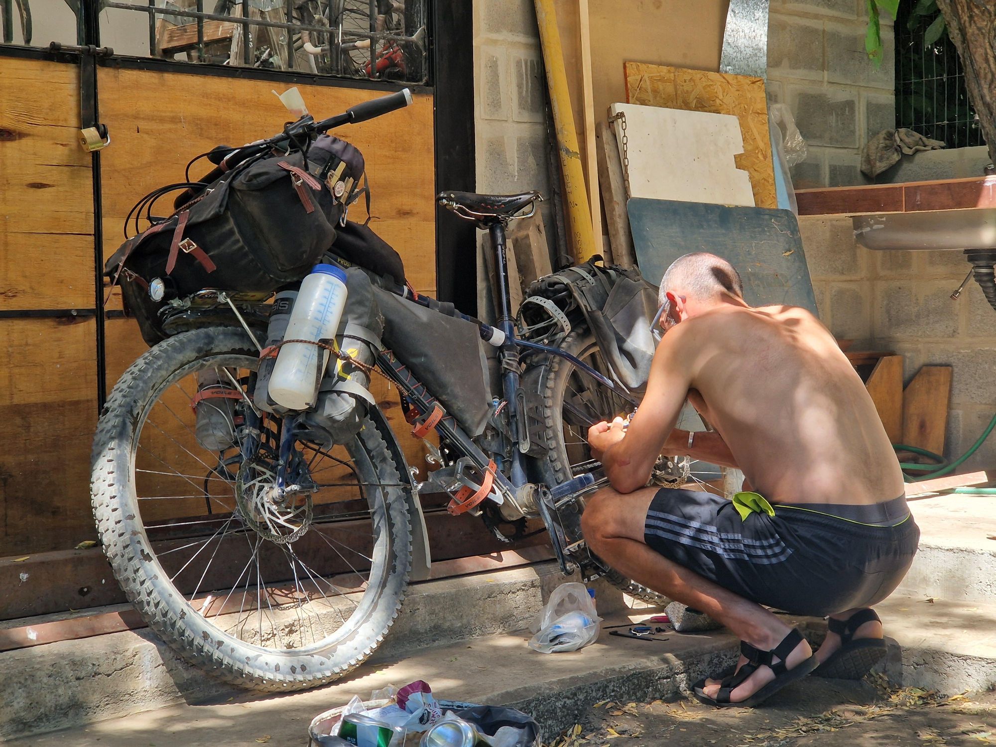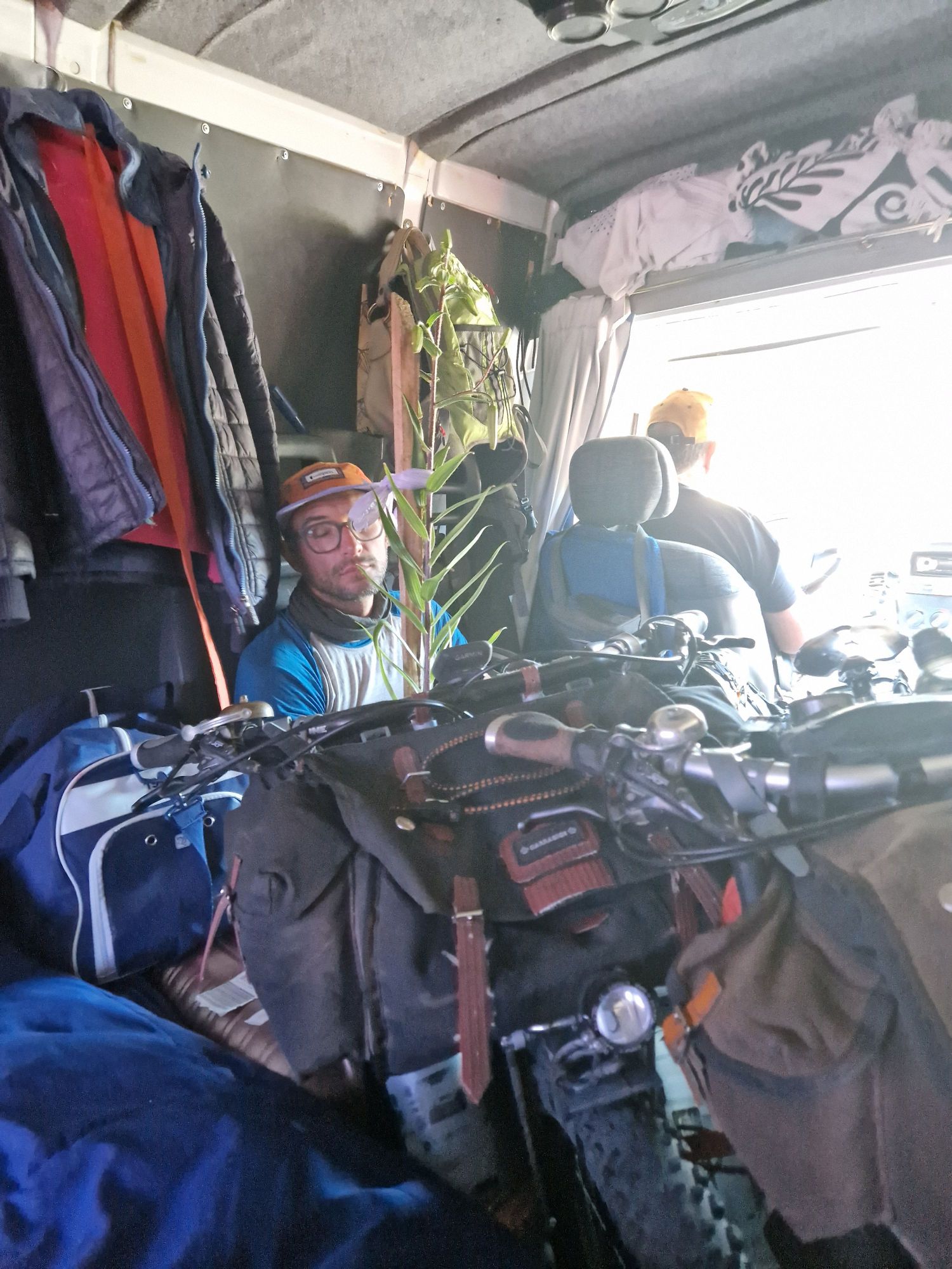 The roads were super busy, so where cyclists would ordinarily have short stints on quiet highways, for us it was like cycling on the M1 in the crazy Argentinian heat. In one instance, as we pulled over for a drink into the rubbish filled drainage ditch (a not so glamorous, but safe place to pause as a cyclist) a clapped out Renault Traffic van pulled up in front of us and then indicated to pull back out into the road again. Seizing the moment, Ted stuck his thumb out. Miraculously, the brake lights came on and they stopped indicating to pull out. After a few minutes of uncertainty of whether the bikes would need to be hauled onto the roof, we finally fit everything into the van. This incredible trail magic, from the kindness of Claudio and Rubi (an Argentinian couple on their summer holiday) meant we had a lift to Bariloche, missing a whole day on the ugly, busy, hot and sweaty highway. Within minutes we were both asleep in the back of the van, indicating we probably both needed the rest much more than we realised. Waking in Bariloche, we head straight over to our WarmShowers host, Miguel, who lived in the peaceful, leafy suburbs of this busy town. Miguel is a bike frame builder and also has an unbelievable bike museum, full of some beautiful, classic bikes. He kindly showed us around the museum and let us stay in his garden. Whether due to our tiredness, the heat, Miguel’s warm hospitality or the fact that I ended up with a stomach bug, what should have been a one night stay turned into four. This also gave Ted the opportunity to carry out some much needed maintenance on his bike brake (for the bike geeks – the ceramic piston had cracked). So, for the second time in our marriage, Ted bundled me up in the tent, leaving me to ride out my sickness bug with a bucket and a bottle of water, whilst he went out for the day, saw the sights of Bariloche and fixed his bike.