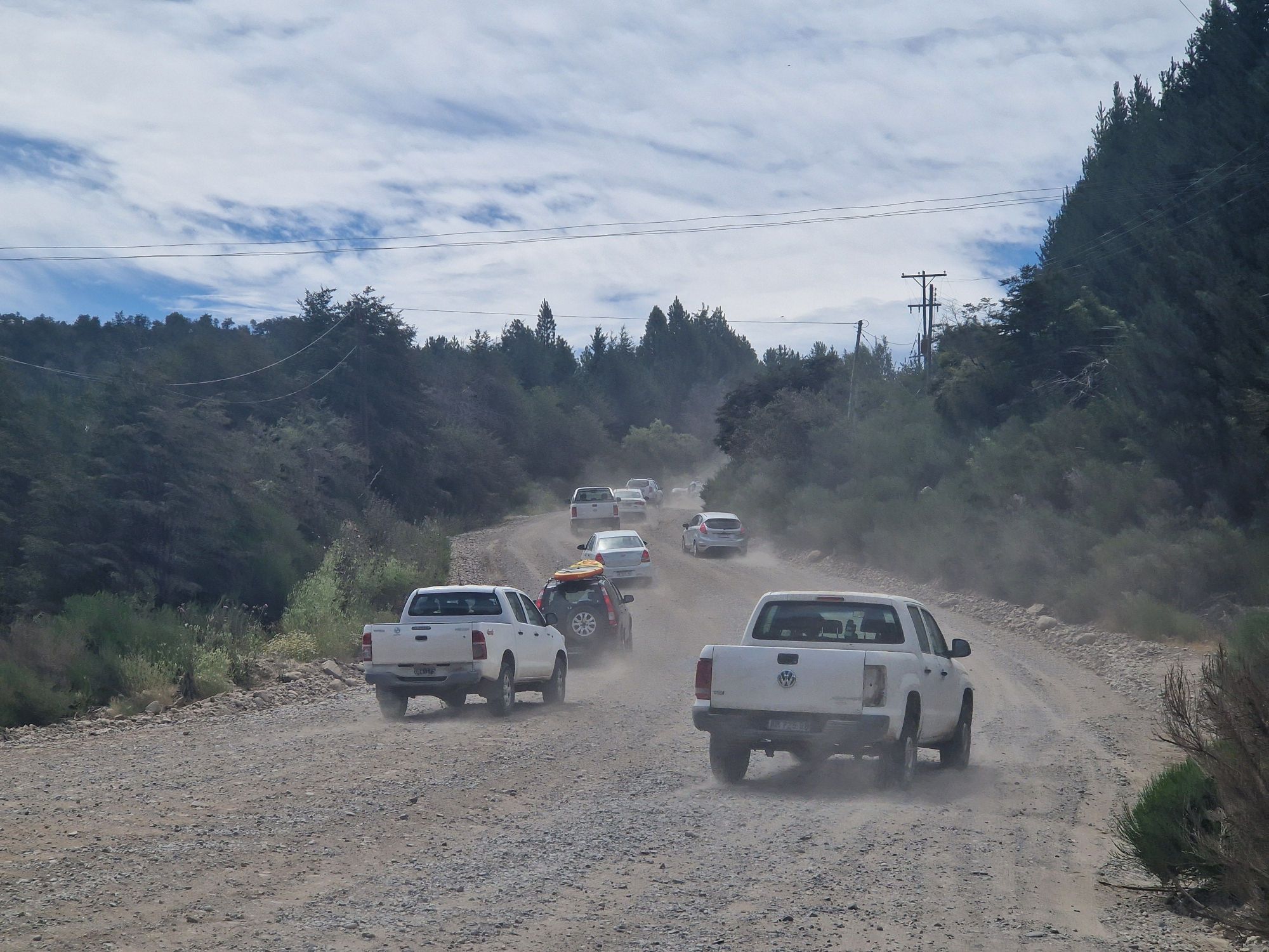 On cycling out of San Martin de Los Andes towards Lago Lolog in amongst the tourist traffic, we were reminded of the Argentinian propensity to totally ignore the highway code on gravel roads. Vehicles that drive in a totally sensible manner on asphalt seemed to rev up as the end of the pavement grew closer. From the moment they passed the sign all cyclists dread – Fin Pavimento – everyone quickly floored it, spraying dust and gravel everywhere as they overtook and undertook slower vehicles (even those towing boats) whilst they were also overtaking us on our bikes. It was chaos. It was like they were all suddenly in a race to the lake to find the best picnic spot, leaving us in their wake covered in dust. As I say, thank heavens for perfect wild camp spots complete with natural swimming pools to wash off the dust.