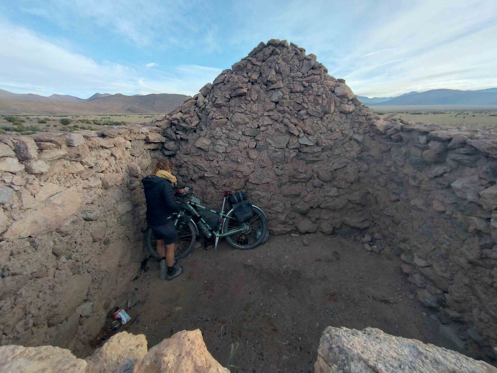 After we finally tore ourselves away from the thermal pools and continued our journey around the beautiful salar lake, the headwind began to pick up to gale force and we settled in to the now familiar notion of battling against it. We stopped at the road barrier at the isolated Gendarmerie post on the edge of the lake shore and a guard came out to check the usual – What are we doing, where are we going etc. We got chatting and we asked if there was somewhere nearby for us to camp with shelter from the wind. After a little thinking, and a referral to his senior, they offered us a space in their gym/barn. Perfect. But their kindness didn’t stop there, as the evening wore on throughout our conversations with them they gave us hot water for our tea, cheese toastie sandwiches, packets of biscuits and chocolate bars, 1kg of rice, tomatoes and apples. Ted even had a job to convince them that we really didn’t need 2kgs of dried milk, as we don’t drink it. Such amazing generosity, especially as we had struggled so much with finding any kind of real food in Bolivia so were only carrying with us basic supplies – mainly bread rolls, 35 to be exact!