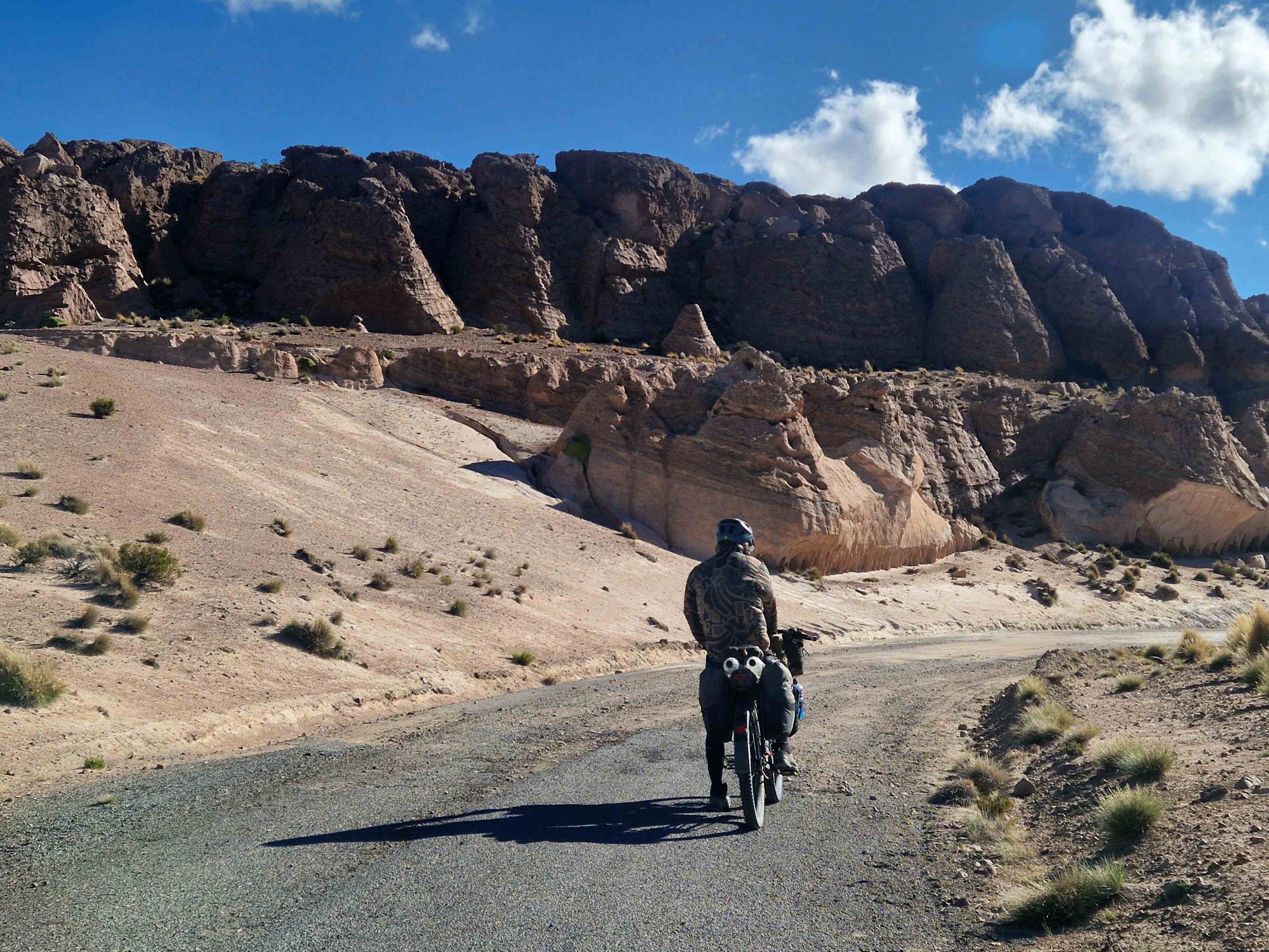 Over the next couple of days, as we moved further away from the border, we battled strong headwinds through some incredible scenery, accompanied only by vicunas and llamas – No trucks, no smugglers, no people at all. At altitudes of over 4000m it was hard work, but beautiful. We ended the route by rejoining the main highway from Bolivia to Chile and descending 1000m in elevation to the village of Putre, but due to the headwind we still had to pedal pretty hard to make progress downhill.