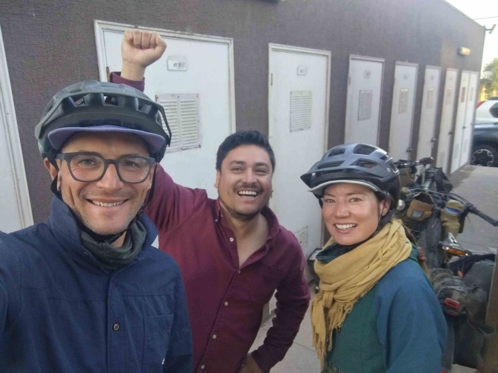 Pulling into Arica and watching the huge red sun fall below the horizon over the sea was pretty special – it was the first time we had seen the sea since Southern Patagonia, 4 months ago. We planned to find some accommodation in Arica, but Kristian offered us his spare room, and not only that, he drove us to a huge supermarket so that we could restock some of our supplies and also cooked us dinner – all this after a long day at work for him – what a guy! We couldn’t thank him enough. Trail magic at its best.