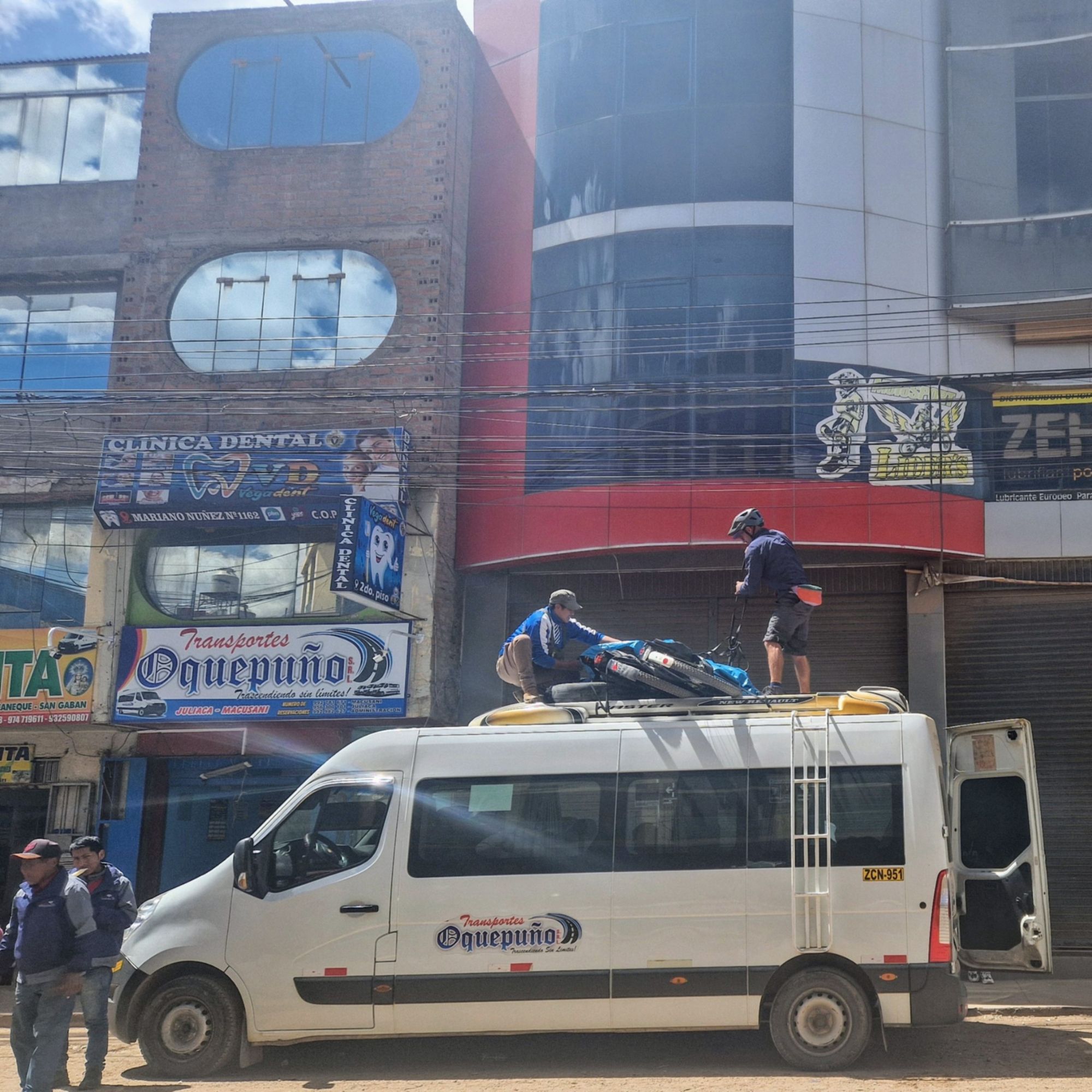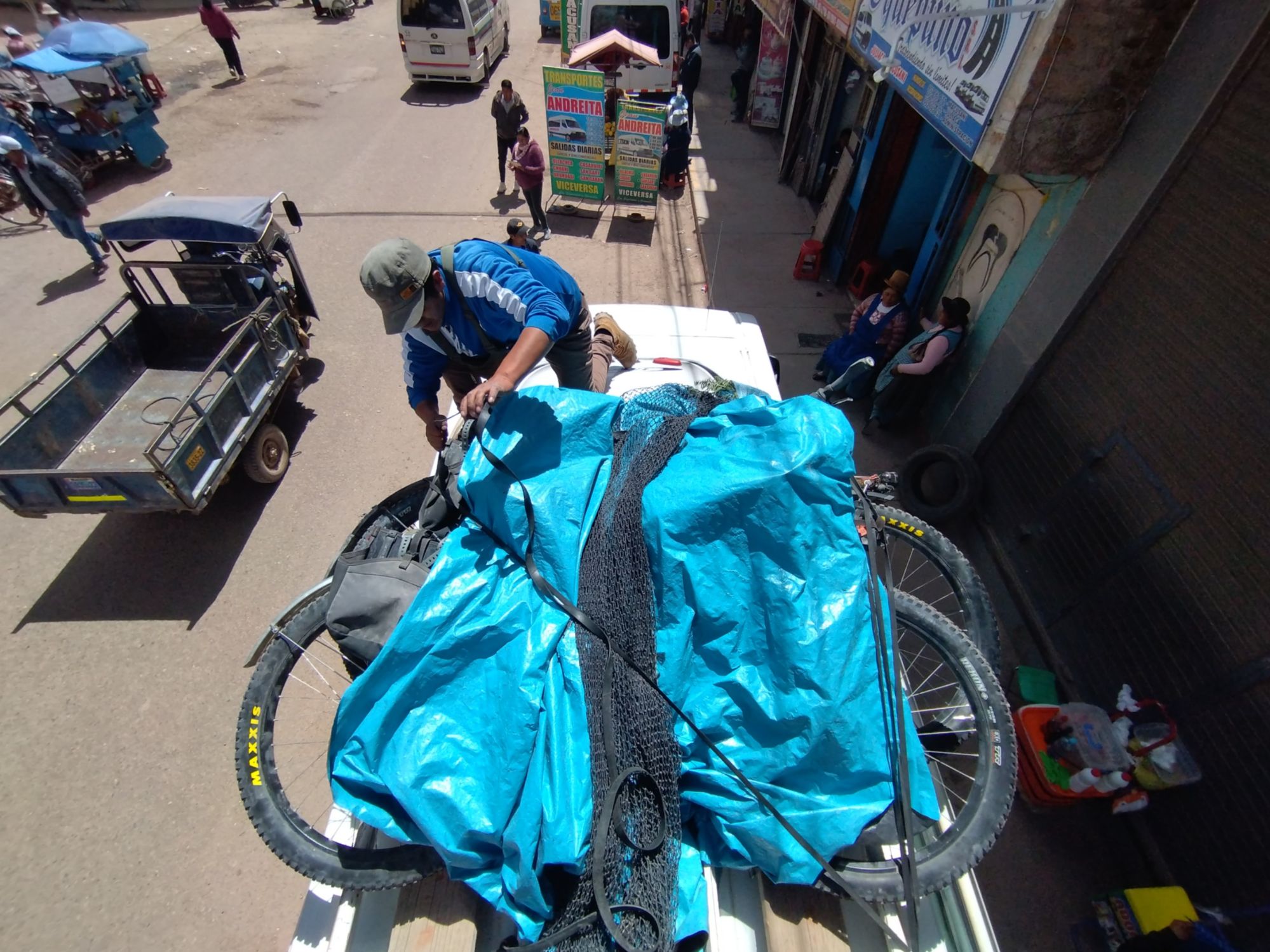 We then had to rebuild the bikes and navigate the hustle and bustle of Juliaca’s crazy streets. So much noise, so much pollution, traffic in each and every direction, people selling goods on all street corners, everyone hustling in the mayhem and we just had to join the throng. Firstly we had to find the correct place to catch our next bus (it sounds a lot easier than it was), then find the bus (this time much smaller like a minibus), then throw the bikes on the roof and jump onboard for another 5 hour journey. We were aiming for Macunsani, a small town back up at an elevation of 4500m (ish) in the Peruvian mountains, and where our next stint of cycling would start…. eventually.