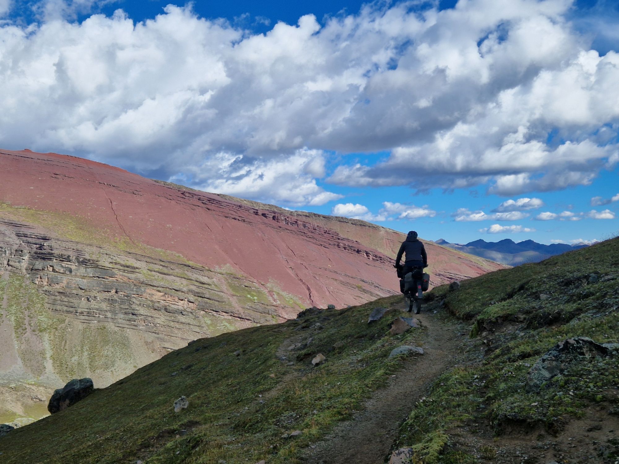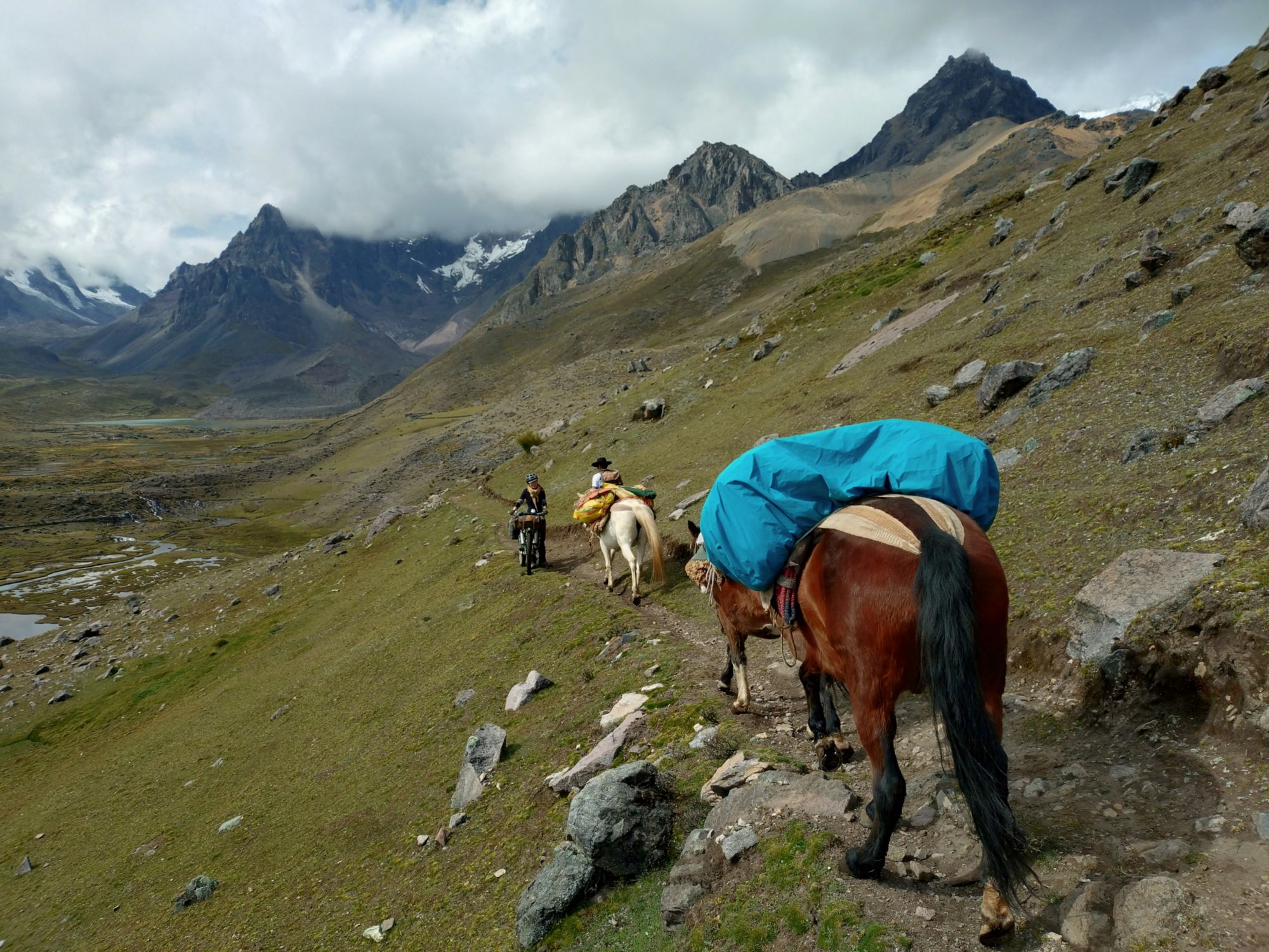 Nevado Ausangate is the fifth highest mountain in Peru which stands proud at 6384m. Even it’s name sounds ominous, like something from Lord of the Rings. It’s a sacred mountain for the indigenous communities here, who believe it is a living being – a deity that protects waters, life and the local people. There is a trekking route that circles the mountain, taking in three passes (the highest being over 5000m), and it’s become popular with cyclists who don’t mind pushing their bikes every now and then. We thought about walking the route, but having read other cyclists blogs and reviews of the route we had heard of dreamy singletrack descents and the best mountain biking of a trip through South America, so we didn’t want the bikes to miss out on all the fun and decided to ride it. The reality, however, is that when I say ‘ride’ what I actually really mean is push, heave and haul our bikes for 90% of the route, and enjoy riding the remaining 10% as fun singletrack. Ultimately, we ruined a good walk by taking the bikes along – It’s probably the first time we would ever admit to that, but I think it’s important to be honest, for the benefit of others possibly contemplating the route in the future (and this blog isn’t about sugar-coating things!)