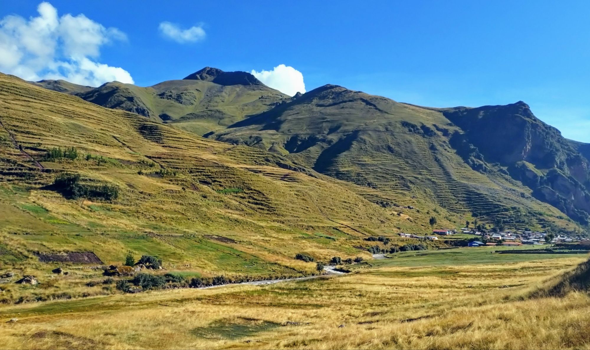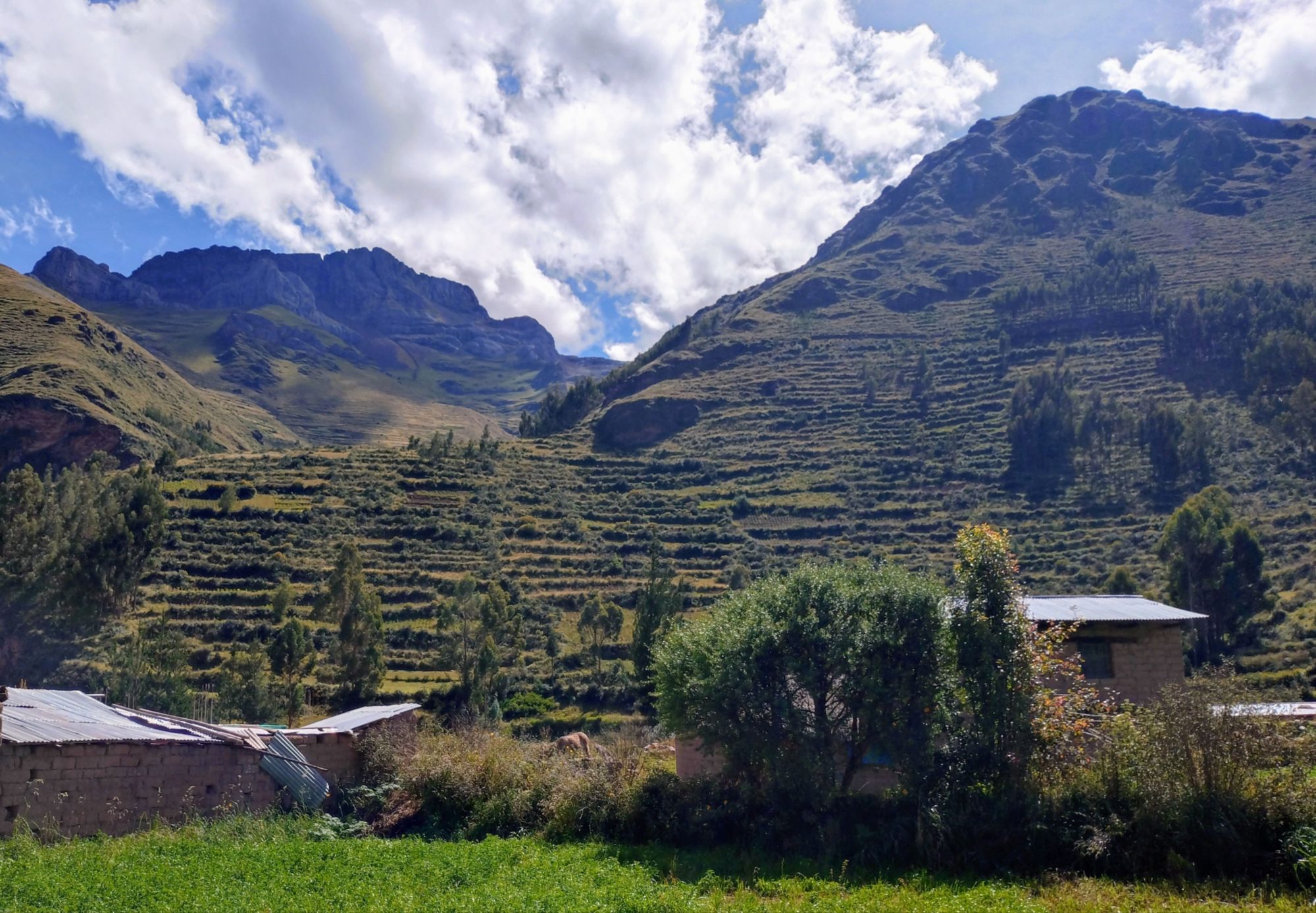From the moment we set off, there was no mistaking that we were in the mountains of Peru. Steep, green mountain sides covered in terracing as far as the eyes could see, falling away to rivers wiggling through the valley bottoms, and small towns impossibly balanced on hillsides looking like toy-towns. It was beautiful. It was such a novelty to be surrounded by life again. After the days in the desert environments, and months at high altitude in Argentina, Chile and Bolivia. It felt like cycling through a lush paradise. Rivers and streams and waterfalls cutting through the green lush grass, and spring-like yellow flowers lining the road, birds and butterflies dancing alongside us as we cycled along. And people. Everywhere people. Locals stopping on their motorbikes in the middle of the road to chat to us, or waving from the fields that they work by hand, or shaking your hand as you stop by their stall to grab a snack. Going through the villages here, it’s not long before you have children alongside you, asking questions, playing with the bicycle bell and wanting a ride. Small towns and villages appear at unbelievably high altitudes, and even in the middle of nowhere, when you think there is no one about – look up and you’ll see tiny silhouettes of shepherds looking after their alpacas on the mountain tops. The mountains here are so full of life – True living mountains.