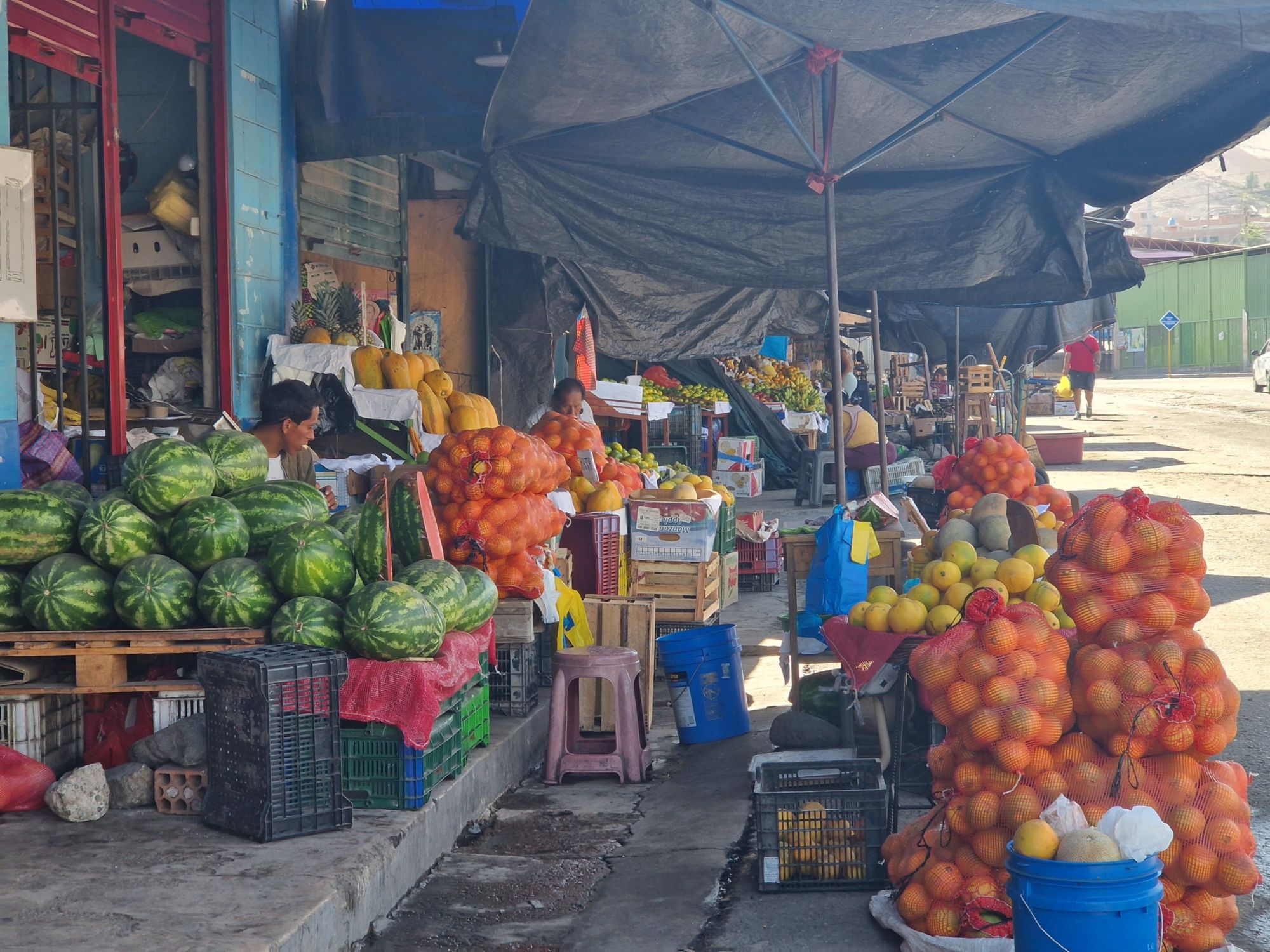 Our time in Peru started with a birthday. Ted turned 37 the day we crossed the border at Concordia, right on the coast – not that we could see the sea from there. The landscape was desolate. An ugly, grey, dry, hot desert, with piles of rubbish strewn all along the highway and beyond. The fields of olive groves and fruit trees quickly dwindled out as we moved away from Chile, replaced by strange empty farmers housing settlements of half built, one room buildings, with no roofs, but painted bright and cheery colours, sitting behind barbwire fences and grand entrace ways announcing the name of the village/farm and the ‘sponsor’ of the construction – all very strange and eery. But thankfully we managed to find a large crumbling concrete sign, and two rocks to sit on for Ted to enjoy his birthday lunch of some treats we’d smuggled in from Chile – namely, an avocado, a tomato and some cheese for our sandwiches. Plus a flask of earl grey tea, and a day-old crushed muffin for birthday pudding, who says I don’t spoil him!?!