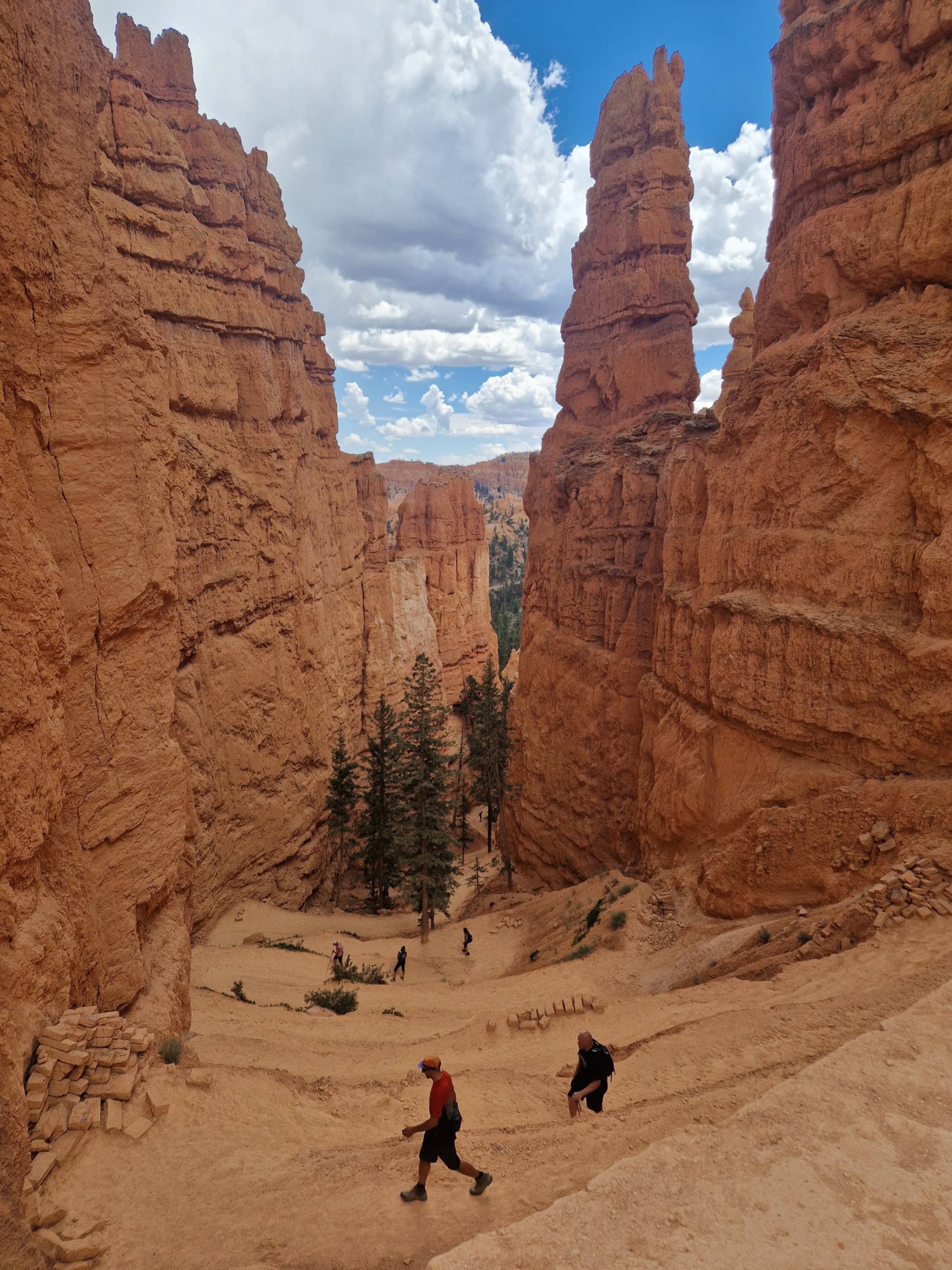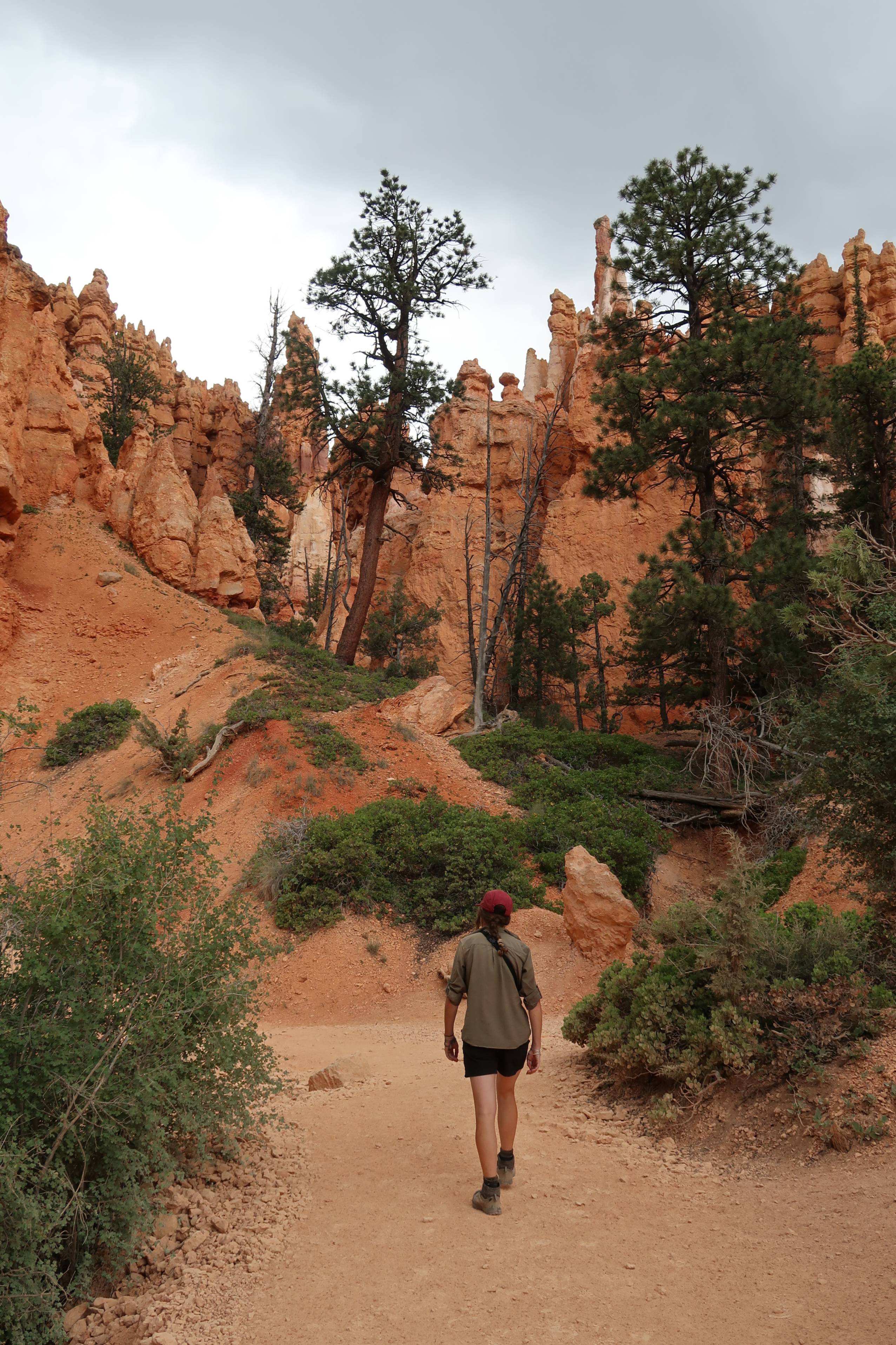 For us, the rain couldn’t take us away from the gravity defying hoodoos, the fascinating layered mineral colours or the striking beauty of the canyon. But it did lead to our first experience of the dreaded peanut butter mud of Utah that others had warned us about. The rock in this area is all dry, fine, dusty, red clay so the moment water is added to it, it becomes the slippiest, sloppiest, chunkiest mud that sticks to everything. If you walk in it, it quickly fills the lugs on your soles, then more mud sticks to that mud, layer upon layer, until you end up trying to skate about in platform shoes made of slippy mud. Hilarious to watch, but not so fun to try and master yourself. Somehow, miraculously, we made it out of the canyon without either of us taking a tumble in the mud and we enjoyed the refreshing coolness and the sweet petrichor that the rain brought with it.
