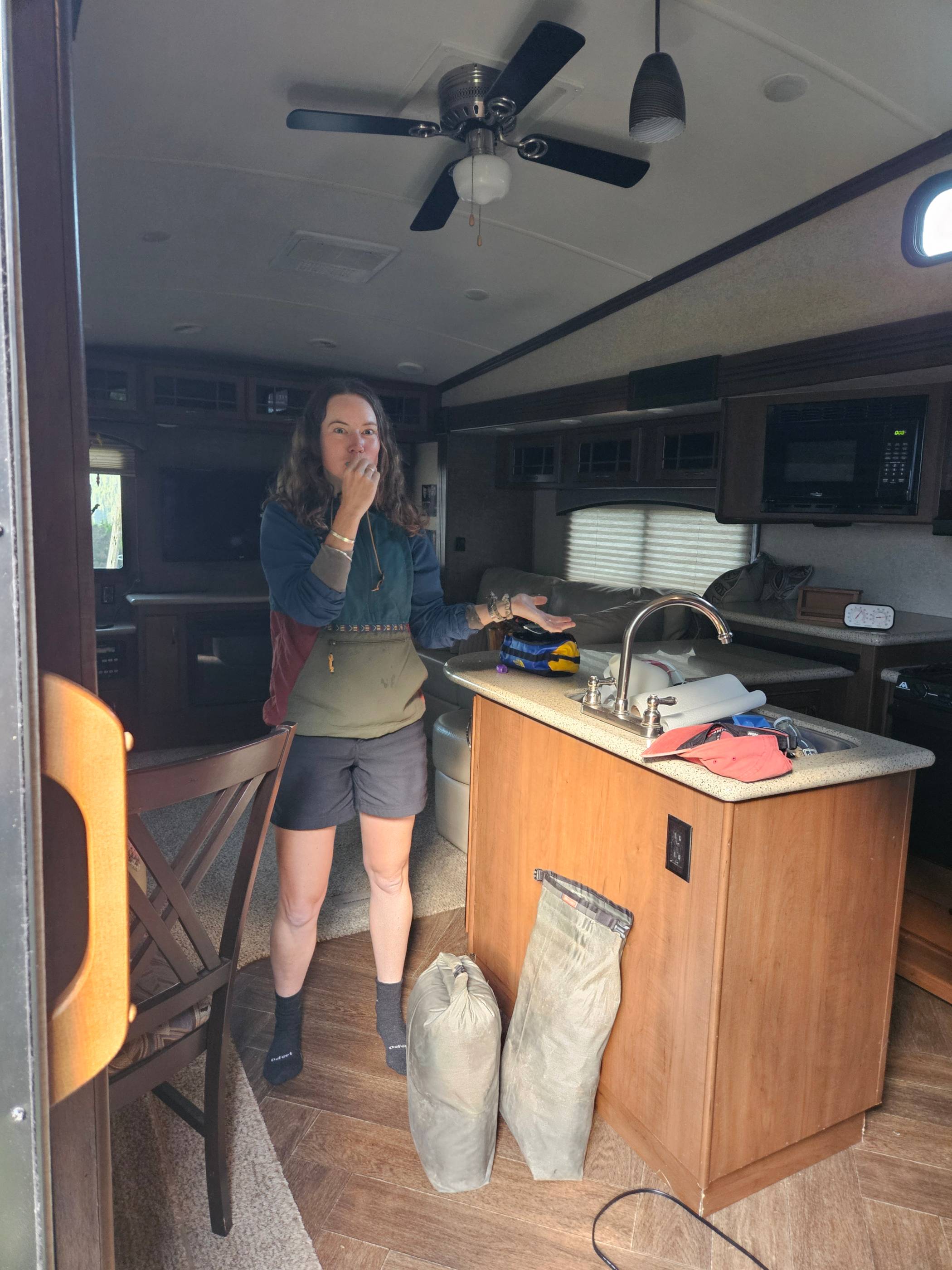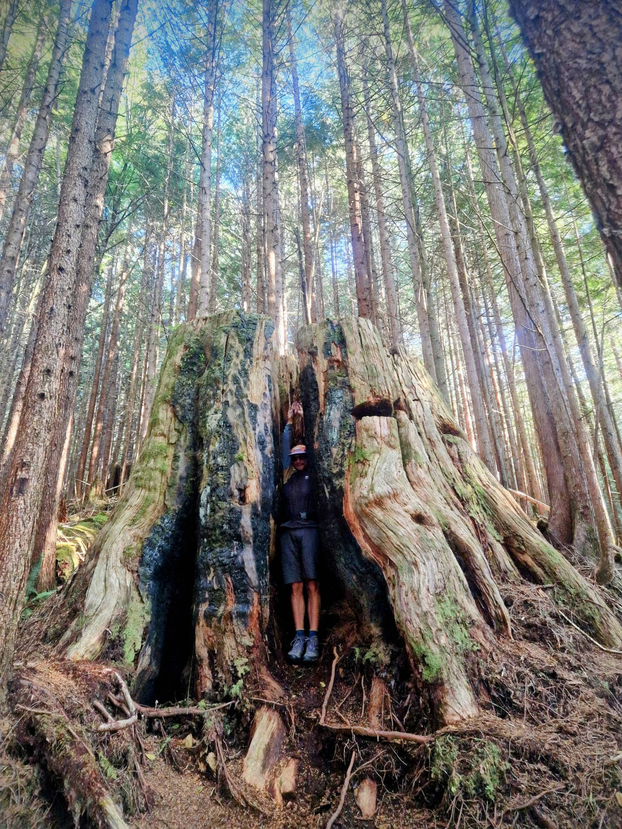 Sure enough, as our time on the Island progressed, so too did the mist, slowly taking longer to rise, each day bringing with it weightier water droplets and finally maturing into rain. In true West-Coast holiday fashion, we became accustomed to waiting out the rain from the comfort of a coffee shop, watching the torrents create overflowing gutters and turning roads into rivers, reminiscent of many of our Scottish holidays over the years. Thankfully for us, Vancouver Island locals are the friendliest bunch, and saved us from several soggy nights in the tent. From bumping into some local cyclists on a ferry and being offered a warm bed for the night; to asking locals at the cafe table next to us a question about water taxi times and it leading to a weekend spent staying in their RV including a visit to their cabin; from chatting to a local stranded due to a car breakdown and it leading to sharing the costs of a motel room for the night; to buying some honey from a driveway stall and it leading to a couple of nights stay in a cabin and insightful evenings spent absorbing as much knowledge as we could about forestry and bees – We were, once again, overwhelmed by the generosity and kindness extended to us. Always arriving in such situations as strangers and leaving as friends.