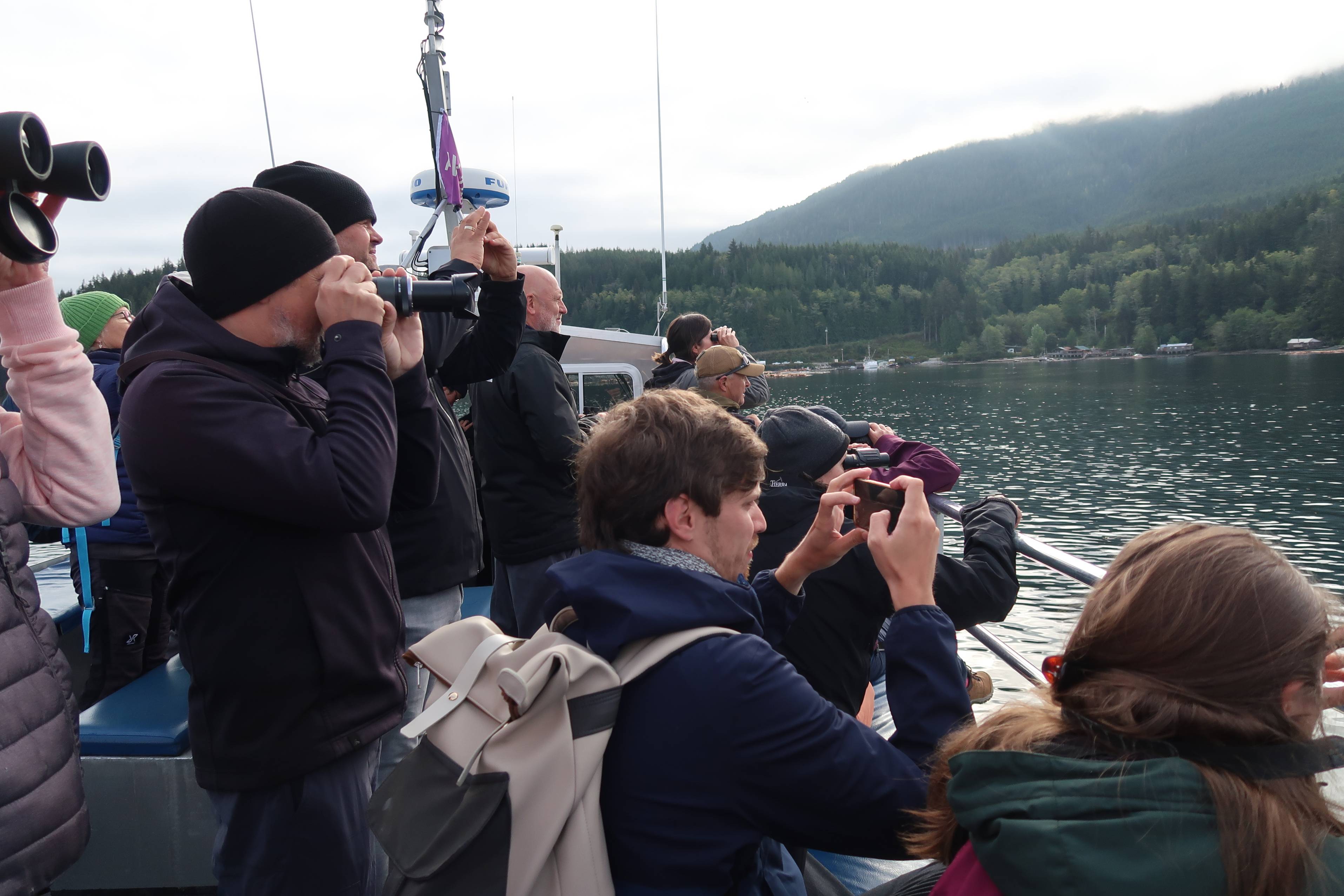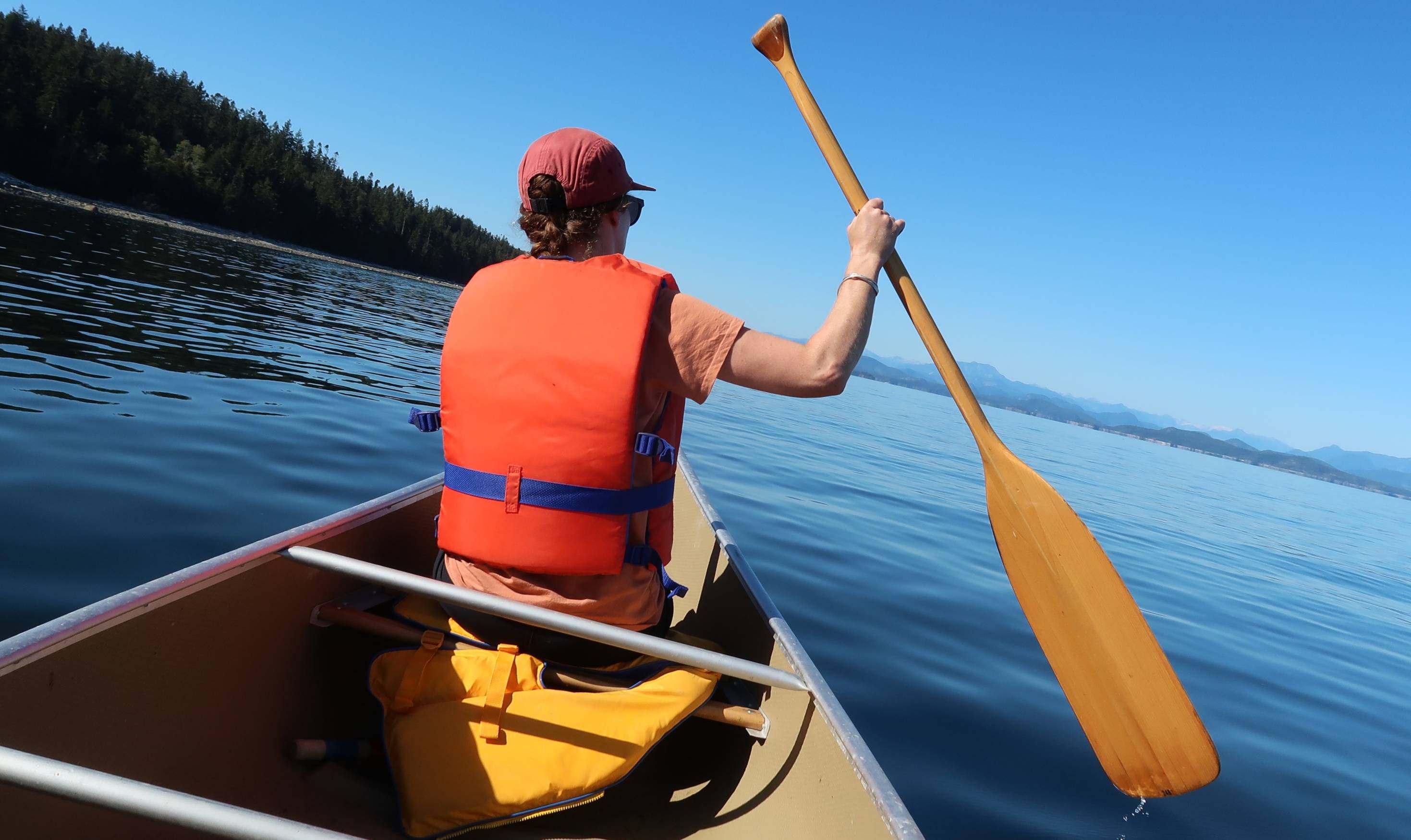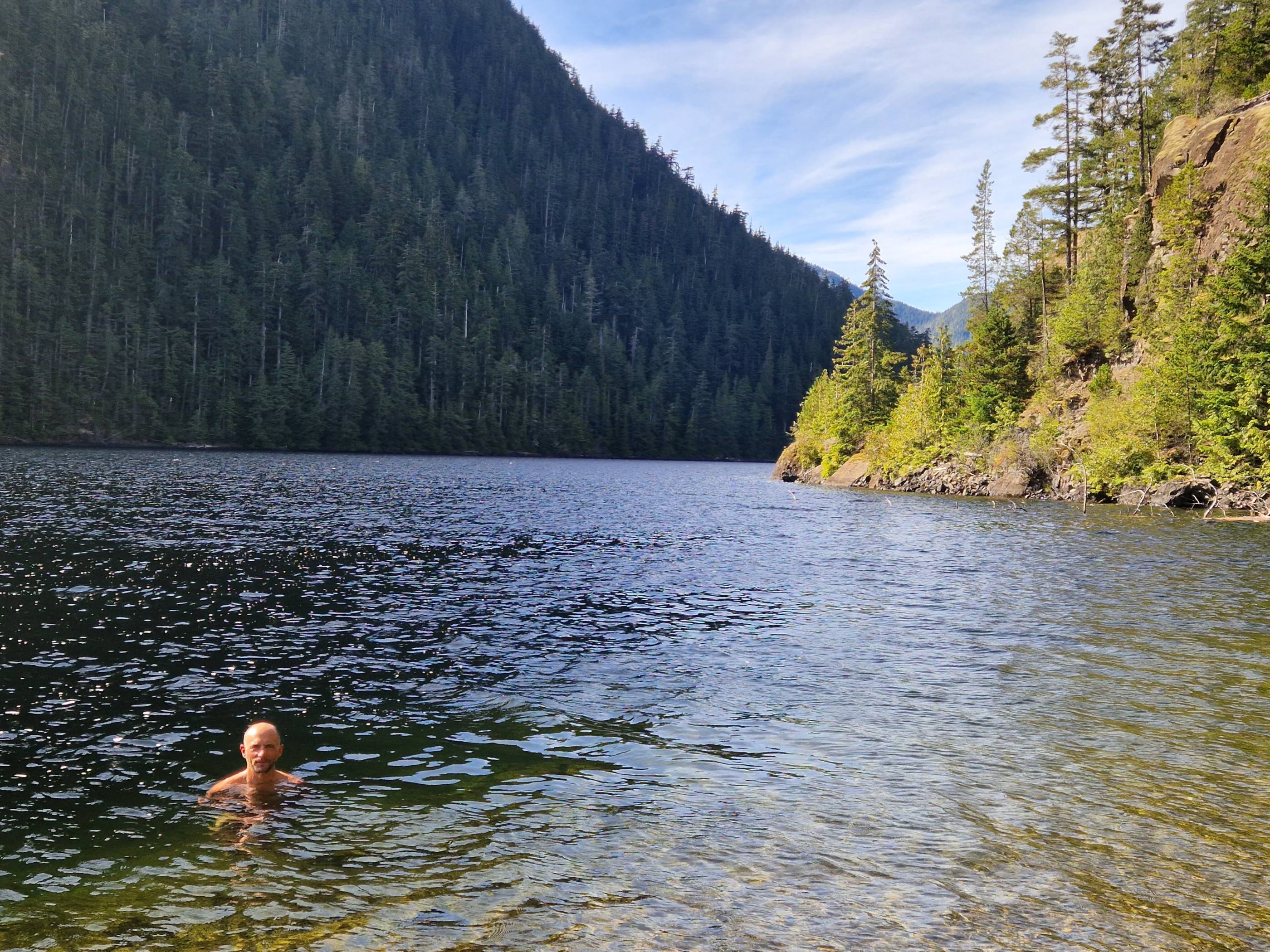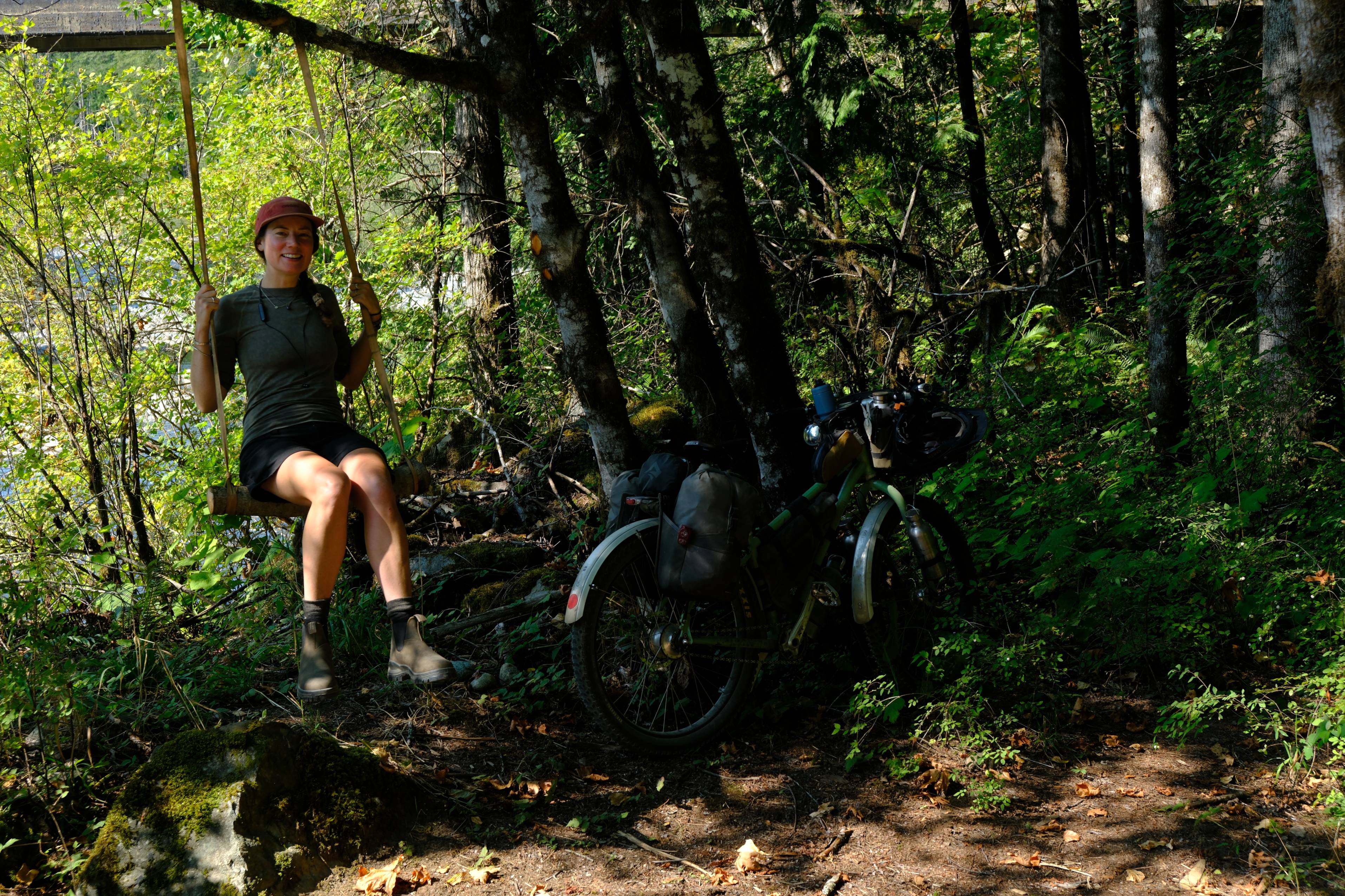 Vancouver Island is much bigger than we (or most other people) really realise. In square kilometres it’s not too dissimilar to the size of Belgium, and it’s roughly 450km long from end to end. We decided to use the popular ‘Trees to the Seas’ bikepacking route as our guide, but hash it about in our own holiday style – adding on a four day visit to Quadra Island (an island off Vancouver Island), cutting out some unnecessary steep logging road hills (steep hills never create holiday vibes!), taking note of various different alternatives so we could just roll with whatever the weather was doing. The route truly did take us from the trees to the seas, or in our case, from the seas to the trees, as we were (of course!) following it in the opposite direction. The seas were that perfect, bright, reflective blue, deep, calm and crystal clear. An afternoon spent in a canoe, under warm blue skies off the coast of Quadra, was accompanied by a couple of humpback whales breaching out of the water in the distance, the swooshing and thundering noise carrying across the water before we saw the white grey flash of their undersides leap out of the offing. The same swoosh and thunder became the soundtrack to my swim in the pebbled cove of Rebecca Spit the following day, the thought that I was sharing the same water as the whales in the distance created a jumbled sense of excitement, nervousness and deep humility at being part of their world. The gentle giants love the herring and salmon filled waters around Vancouver Island at this time of year, and they, along with Orca, Sea Lions, Porpoise, Sea Otter (and many other creatures and sea birds) use them as their summer feeding grounds. As we were in holiday mode, we even jumped on a boat tour from the twee tourist village of Telegraph Cove in order to see all this amazing sea-life up close. Memories of my childhood love of the 1993 movie Free Willy, and subsequent Free Willy themed birthday party, rising as we watched the Orca alongside the boat, captivated by their graceful movement, synchronized breathing and obvious intelligence. It was pretty special.