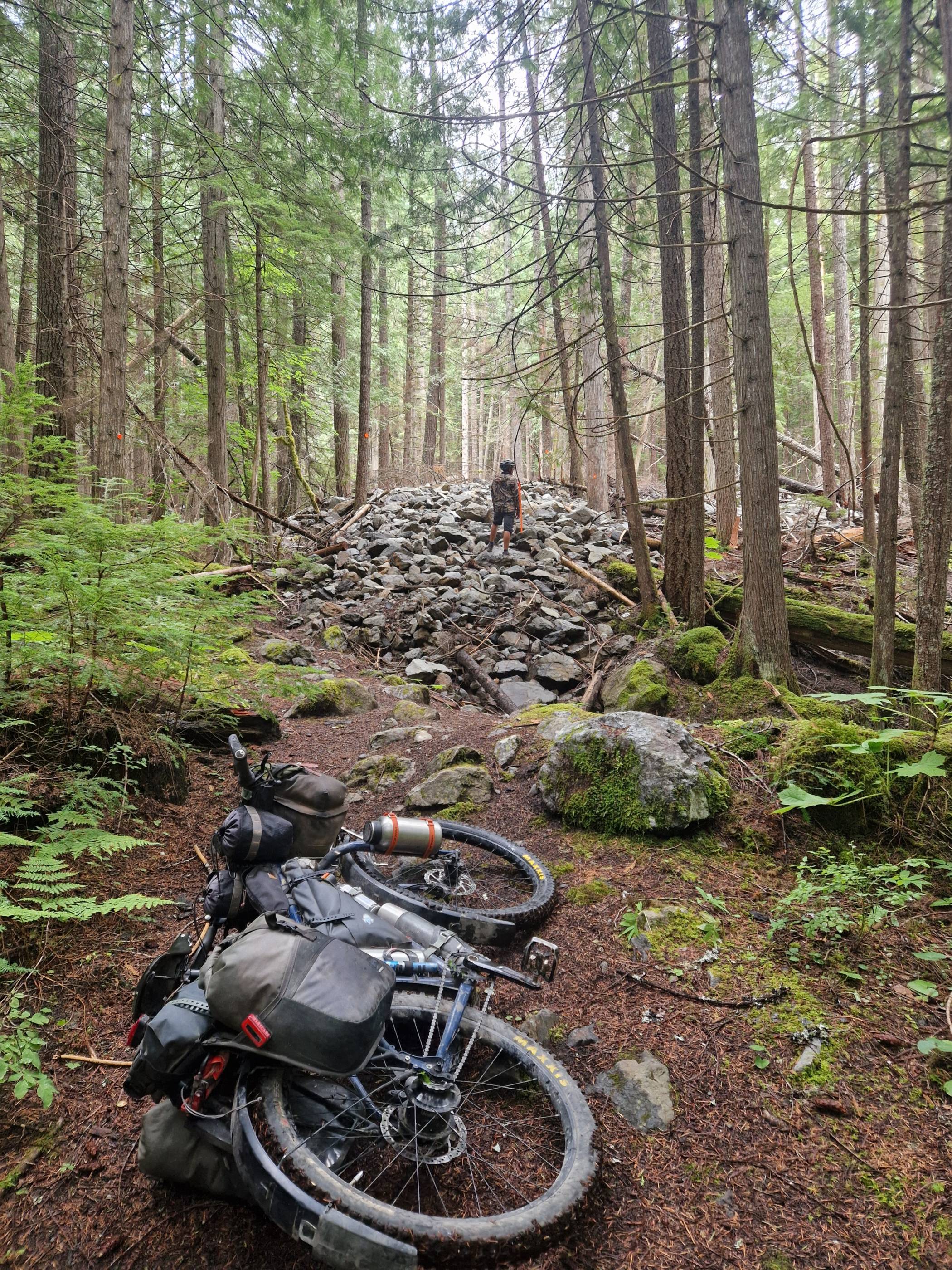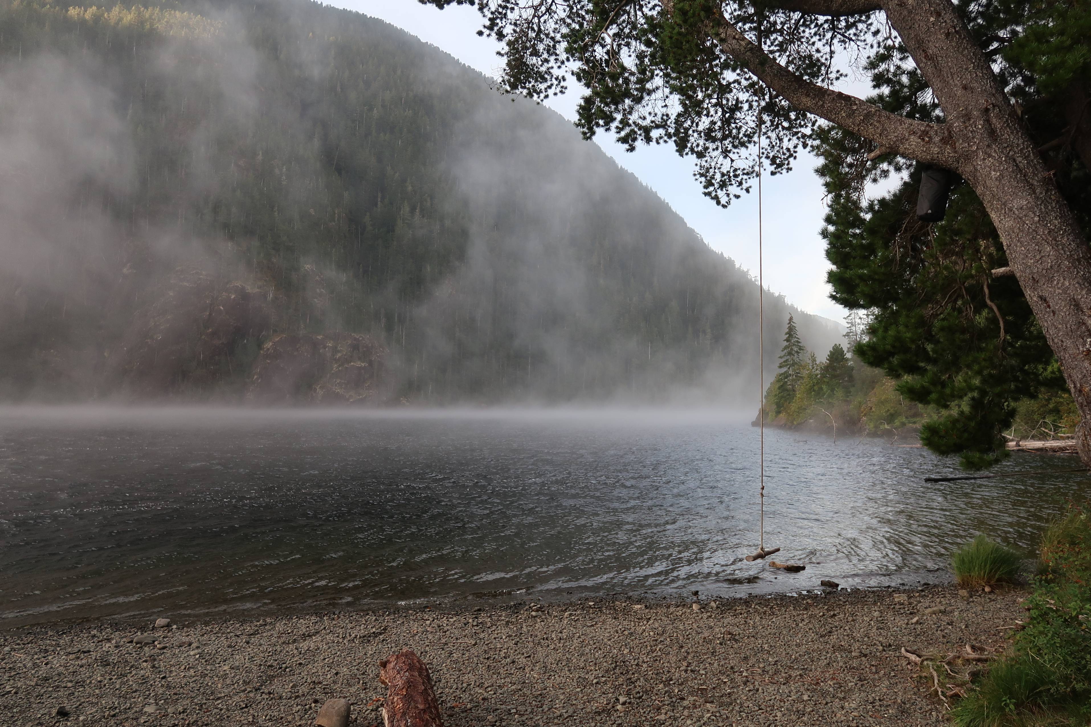 In honesty, we weren’t really appreciating the views across the mountainsides, or over the pristine lakes, or the cloud inversions, or the immaculate camp spots we stumbled upon. The stable rail trail gradients also removed all variation in riding and the monotony started to get to us. It was like the August afternoon storms and low lying mist were metaphorically with us all day long, obscuring our perspective of the trail, and of our trip.