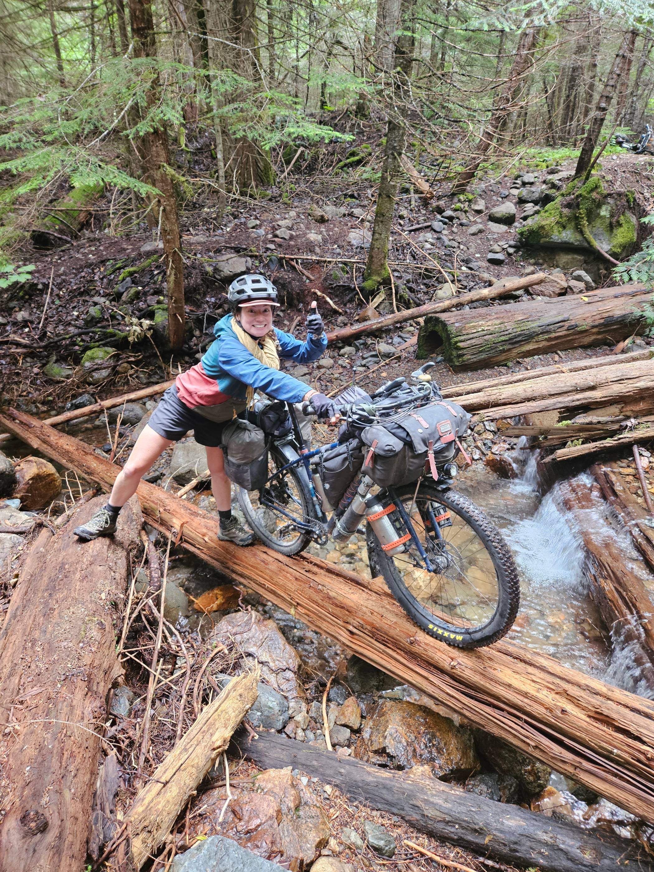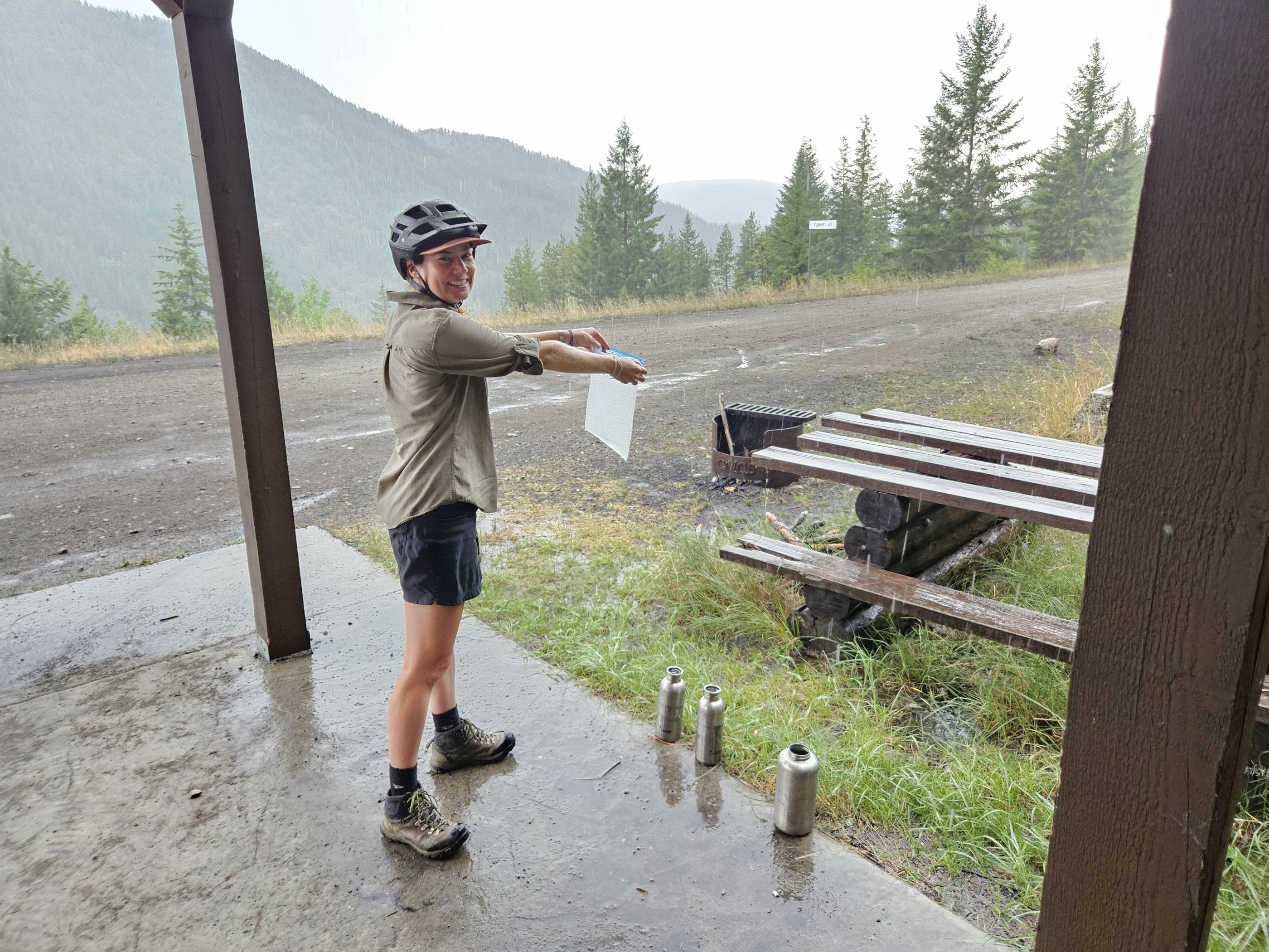 Our first day North of the border after leaving the USA, and it started with a steep climb up a mountain in the rain, wading through an icy glacial creek, a stay in a remote forest cabin and meeting a moose – Welcome to Canada. Despite this classically Canadian welcome to the country, we did have to keep reminding ourselves that we were no longer in the USA, as the landscapes and people were, at first at least, all very similar to Northern Montana. But as we got closer to Fernie, we couldn’t help but notice the road signs were now back to being metric (saving us from hours of mental arithmetic every time we read a road sign) and people were riding bikes and walking – actually using their legs!