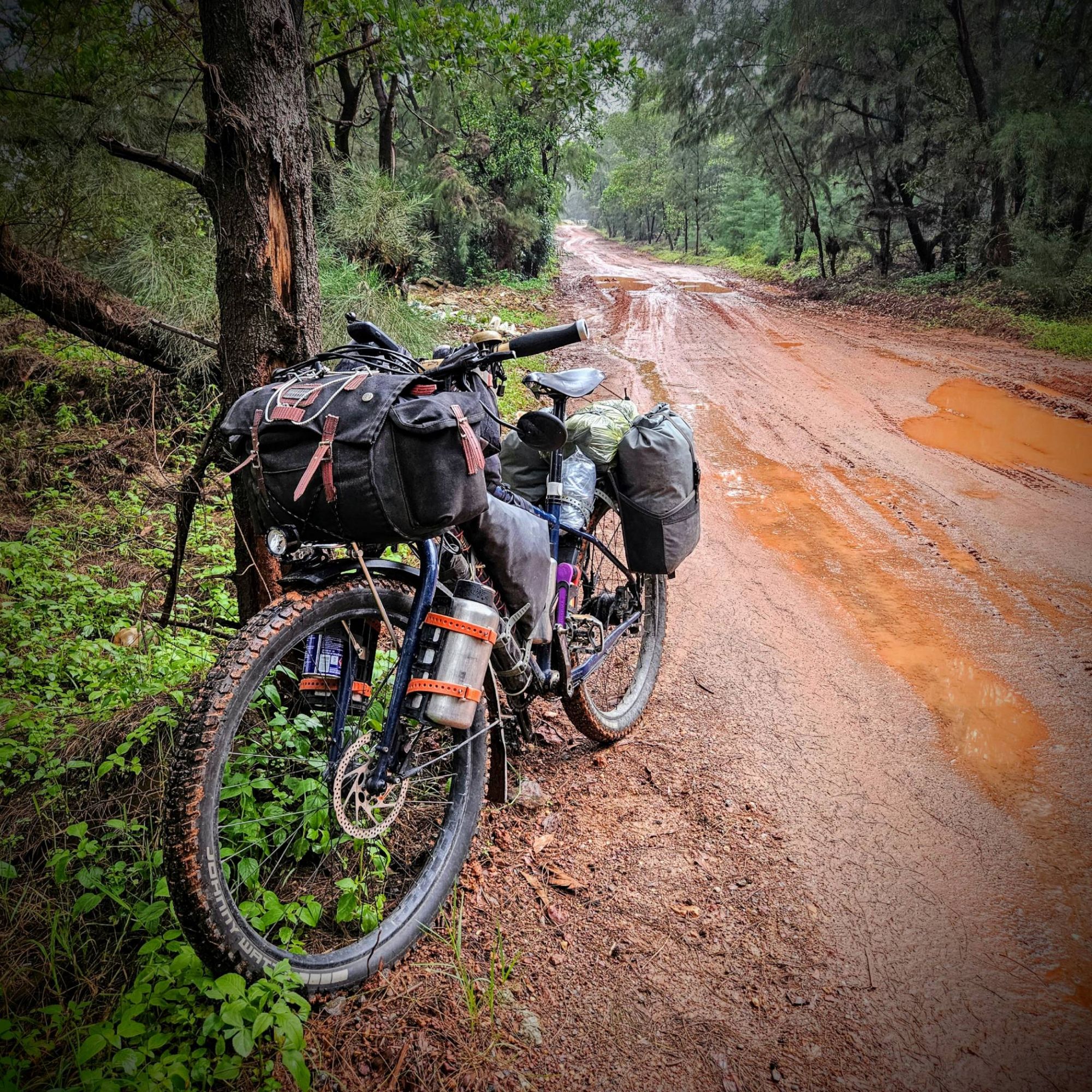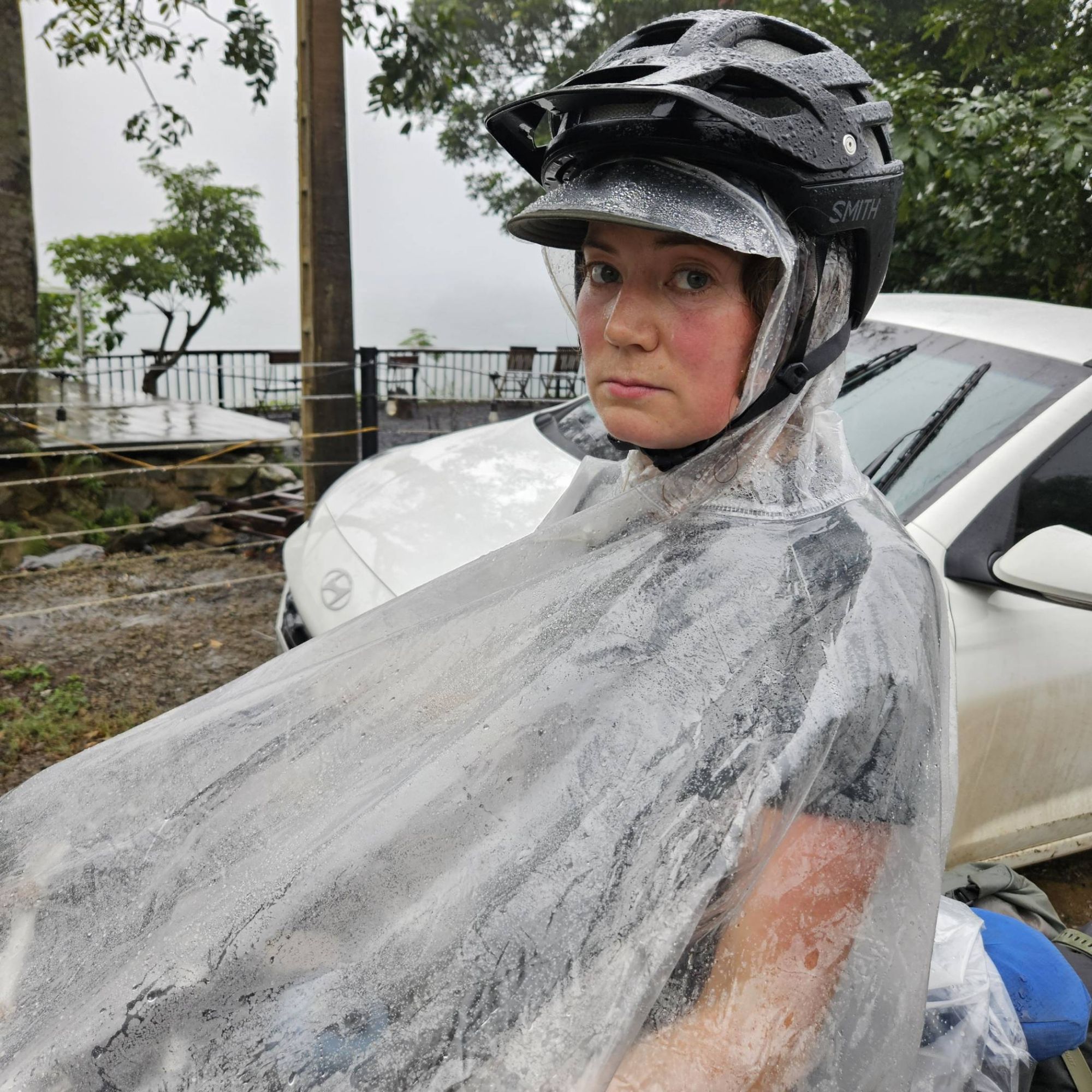 The day before the border was up there with one of the most unpleasant days we’ve done yet. A whole day in torrential rain, under ever darkening skies, on a busy road, covering almost 100km, climbing over 1000m with lung-busting steep inclines, unrelenting traffic blasting their air horns into our ears all day, lorries full of animals and their waste churning up the road spray to create an emulsified excrement shower that was splattered all over us as they passed, accompanied by the ever-present piles of rubbish along the curb and beyond the metal of the road barriers. And at a momentary break for a piss, Ted’s bike, leaning on a lamppost, whilst both hands were occupied, slipped and fell into a pile of goat poo. Cue Ted loosing his sh*t, at his bike now being covered in sh*t, shouting and waving his arms in the air at the sh*t-ness of the sh*tty day we were having. It was hard not to give in to the tears that I had been fighting off for most of the day. But we knew that the only way out of the sh*t was to ride through it, stopping and wallowing at the road side, getting colder and colder in the pouring rain, as the traffic hurtled by, was not an option. So again, we pulled on our poncho hoods, plugged back in our earphones and kept on pedalling.