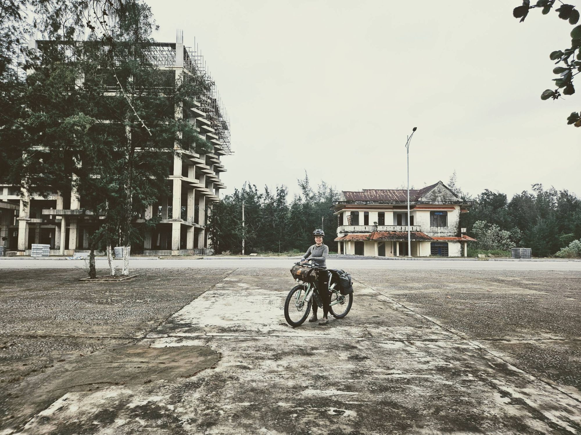 The forecast was the same – heavy rain – for the next five days, so we made the hard decision to change our plans and head towards the lower lying roads near the coast, in the hope of avoiding the worst of the weather. We optimistically hoped that being by the sea would be different, surely people come on holiday to the beaches of Vietnam for a reason, right!? Well we couldn’t see it. Maybe it was because of the driving cold wind and the rain, maybe the relentless noise had finally got to us, maybe it was the night after night of grotty (only clean at first glance) hotels we were staying in, maybe it was because of the empty, concrete tower blocks or maybe it was the ghostly holiday towns but it all felt very depressing to us. But with only a couple more days until we reached the border with Laos we pulled up our poncho hoods, plugged in our earphones and kept pedalling onwards.