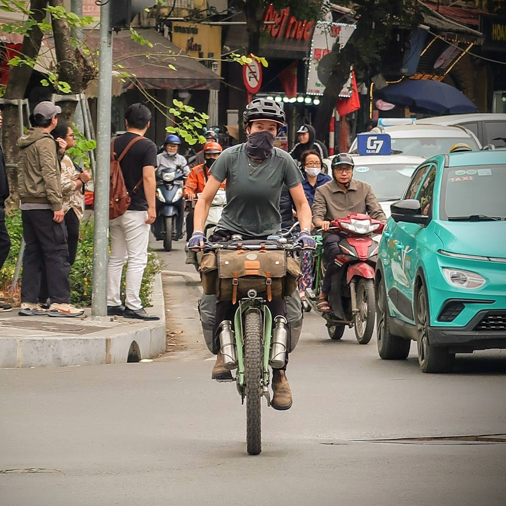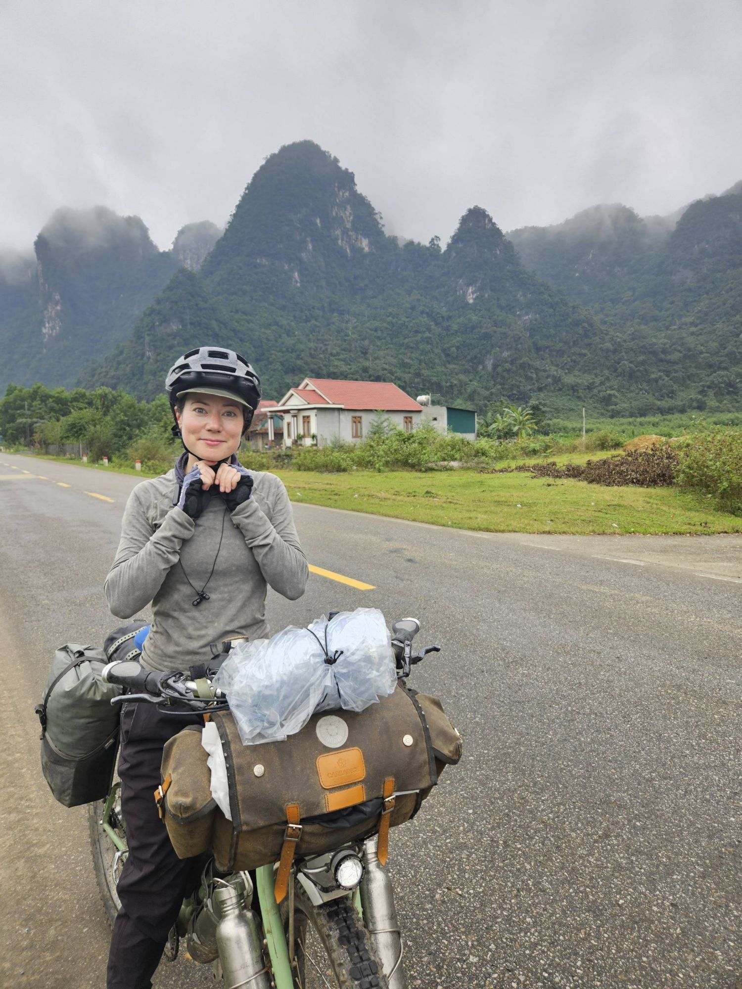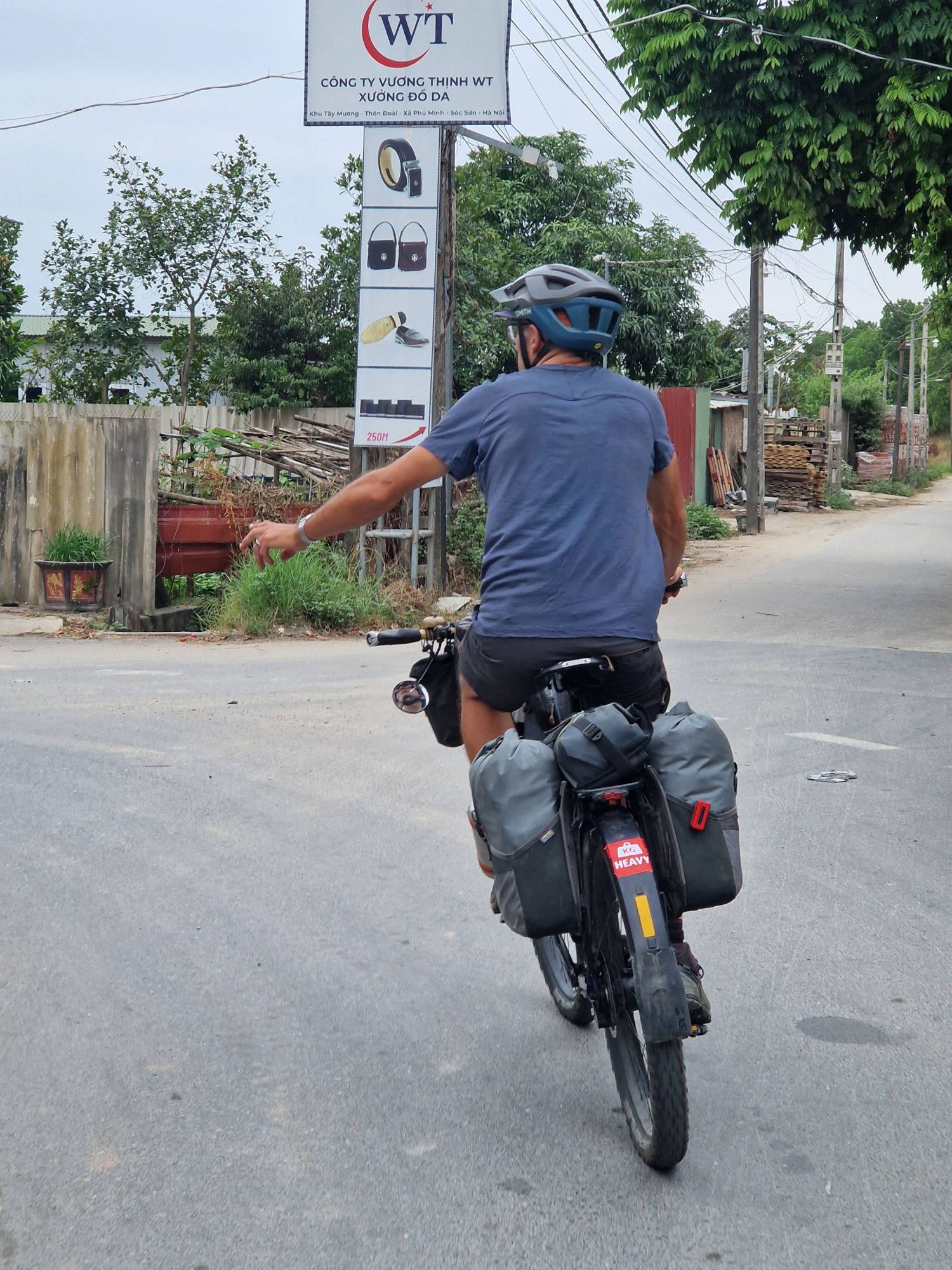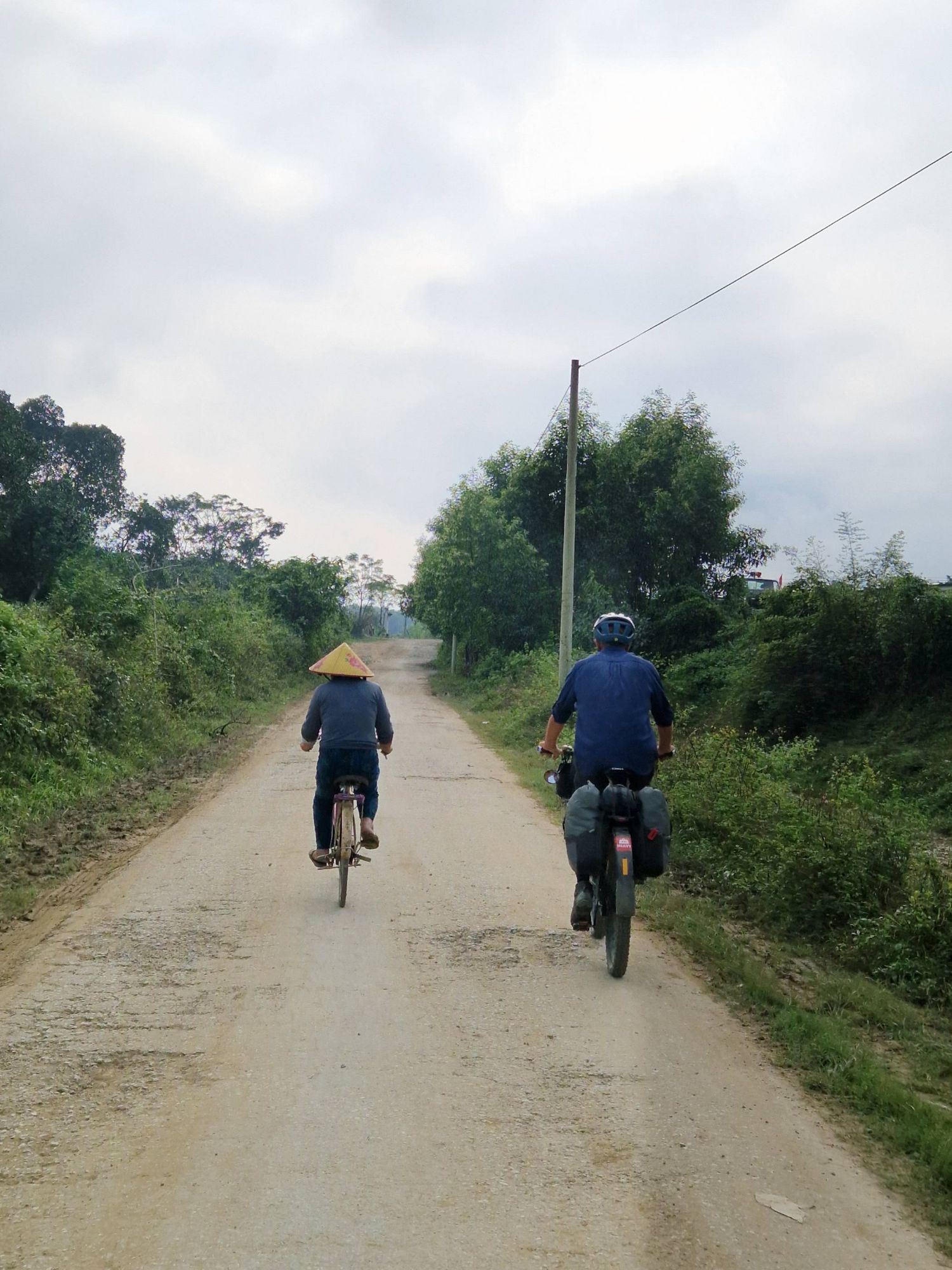 On the morning we packed up, ready to head out of Hanoi, Ted ‘I never loose anything’ Robinson realised he didn’t have his pillow. Now, it doesn’t sound like much, but our pillows are a bit of a luxury item for us. On all our previous bikepacking trips over the years, we have never felt it necessary to pack a pillow, a folded down jacket does the same job – provided you don’t accidentally sleep with the zip against your face and wake up looking like Frankenstein! But for this trip, packing the small inflatable travel pillows has been absolutely worth it. So the fact that Ted had lost his was a bit of a disaster. We emptied every bag (which we had literally just finished packing!), we searched the room, we turned everything upside-down and inside out, but it was no where to be seen. We then realised we might have left it at the grotty hostel following our quick exit due to the glass table and coffee calamity. So we cycled back across central Hanoi, in the opposite direction to where we should have been going. But the grotty hostel were in no mood to help, simply saying ‘no’, they weren’t prepared to ask the people currently staying in the room whether we could check if it was under the bed, and had no sympathy for our lost pillow situation. So after all this time, all the occasions where Ted has been reunited with his misplaced bits and pieces, all these months of Ted ‘I never loose anything’ Robinson living up to his name, accepting that the pillow was truly lost was a hard pill to swallow. The thought of the months ahead with no pillow did not sound appealing for Ted, so we decided to cycle from one outdoor shop to another, criss-crossing the city again and again, in the vain hope that we might be able to find a replacement. By some miracle, by early afternoon Ted had a replacement inflatable travel pillow in-hand and we were, by now, well and truly ready to leave Hanoi.