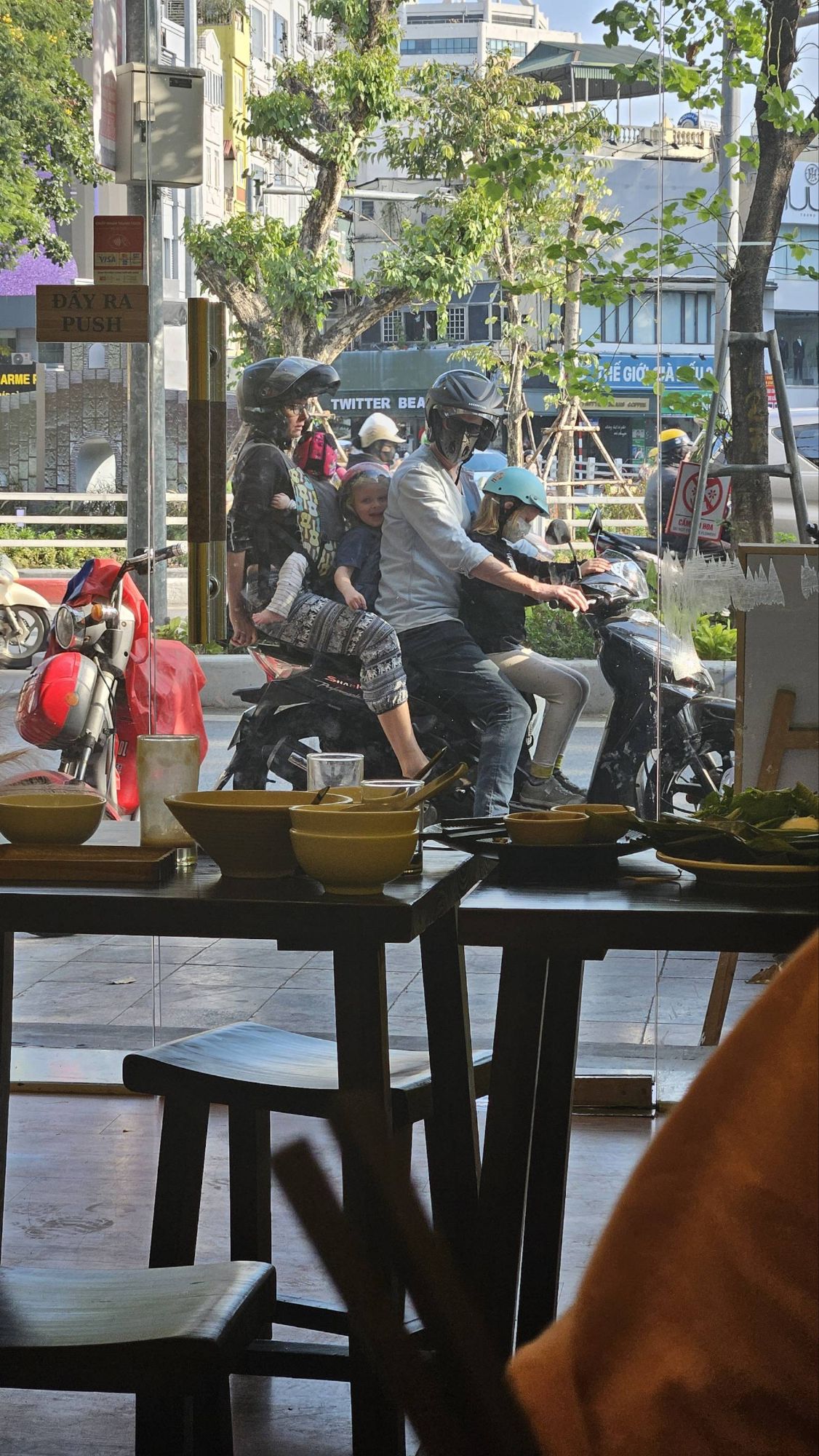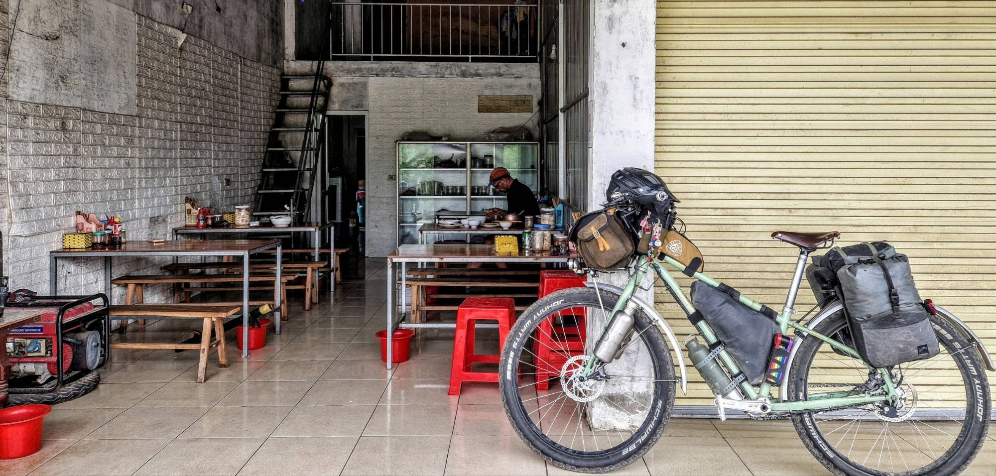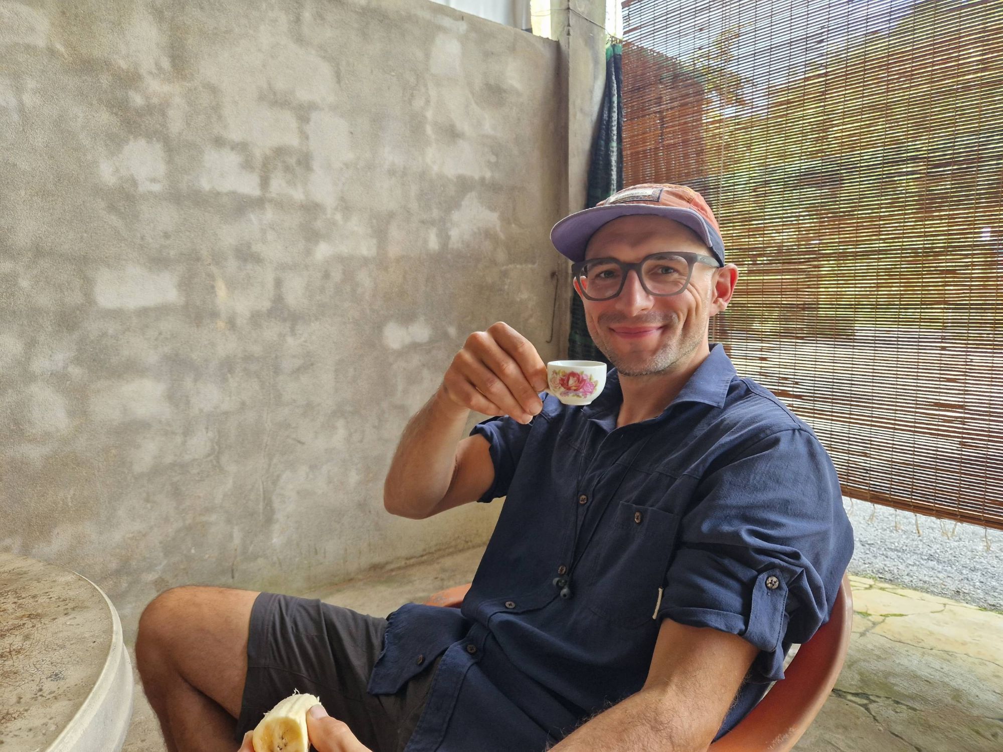 The heat from the coffee left sitting in the pan on the table caused it to break. So whilst munching through our unexciting, breakfast gruel of oats and water (we usually treat ourselves to some fruit, nuts, seeds or peanut butter to jazz it up but on this day it was just plain old, Oliver Twist-esk oats and water!) sipping our mugs of coffee, sitting on the bed on the opposite side of the room, not even touching it, the table catastrophically smashed into pieces with the sound of a gunshot and left a chaotic mess of pans and utensils and waterbottles all covered in sticky wet coffee grounds. Uuufff. ‘Good morning Vietnam’ is all Ted had to say.
