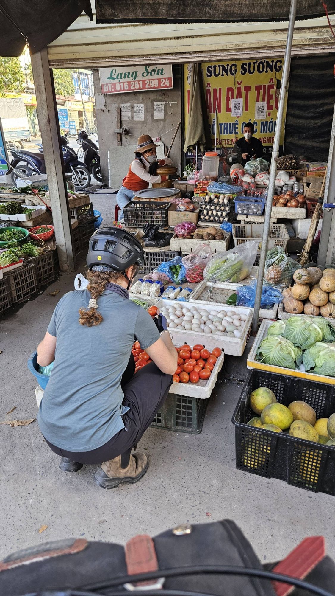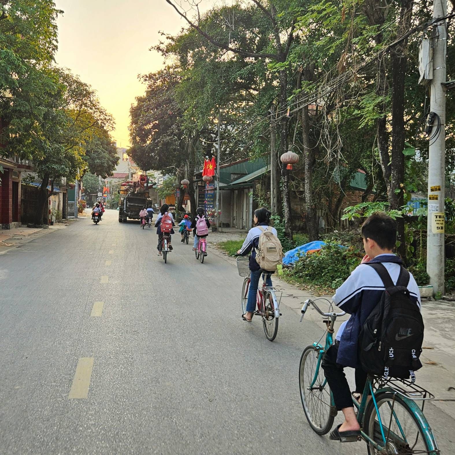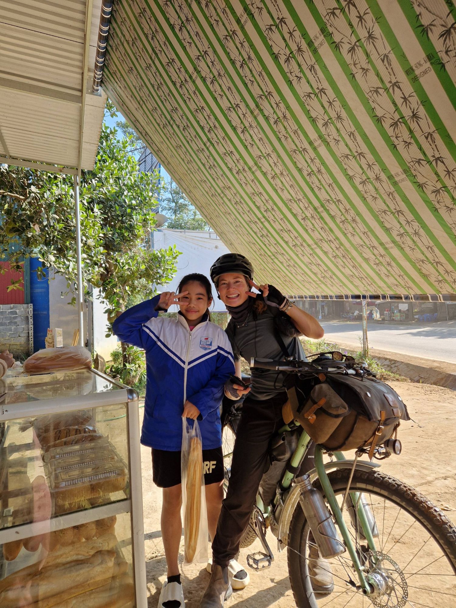 The whole experience meant that looking up and appreciating the beauty of the thick jungle blanketed hills, or the peachy golden tones of the setting sun became harder and harder to do. But the people of Vietnam somehow managed to pull us out of this with every interaction, like microdoses of joy that kept our heads above water everyday. Their smiles and waves were so cheerful. Such a contradiction to the environment within which they were living. Our favourite time of day quickly became the beginning or the end of the school day, when the children would all jump on their bikes to and from home. For a few minutes of each day we would be joined by a cheering, laughing gang with an accompanying soundtrack of ‘hello’ [giggle] ‘what is your name’ [giggle] ‘goodbye’ [giggle]. It seemed that this bright, cheery, disposition wasn’t even something that diminished with age, instead the adults faces also lit up with smiles, accompanied by big waves as we passed by.