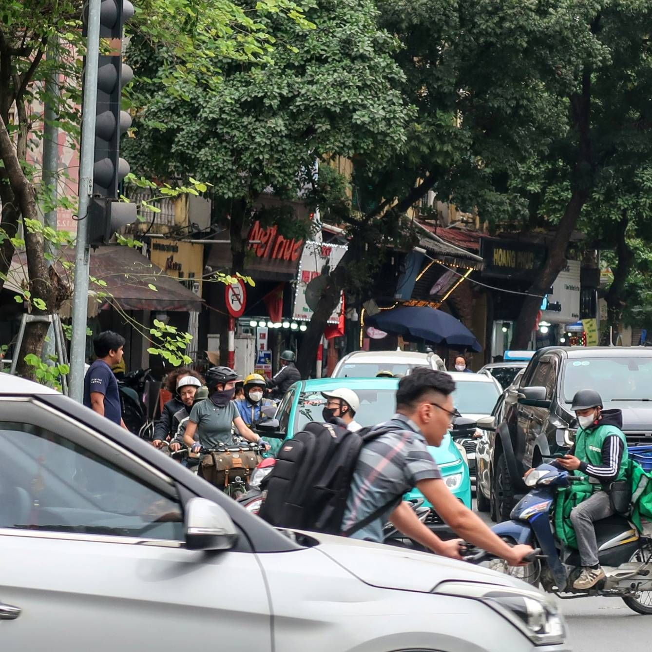 One road merges with another, and then another. We find ourselves amongst the trucks and buses and cars of the highway. Each vehicle beeping their air horns; at us, at one another, at anything else that moves. As we approach one of the bridges over the Red River on the outskirts of Hanoi, all traffic starts jostling for position as the lanes narrow. The hard shoulder is no longer our own; we are enveloped by the weaving mopeds and undertaking cars. We hold our position, owning our space on the hard shoulder and going with the flow of it all. Nothing is moving too quickly, so despite the sense of chaos, fear doesn’t creep in. The noise though. Wow. It was loud.