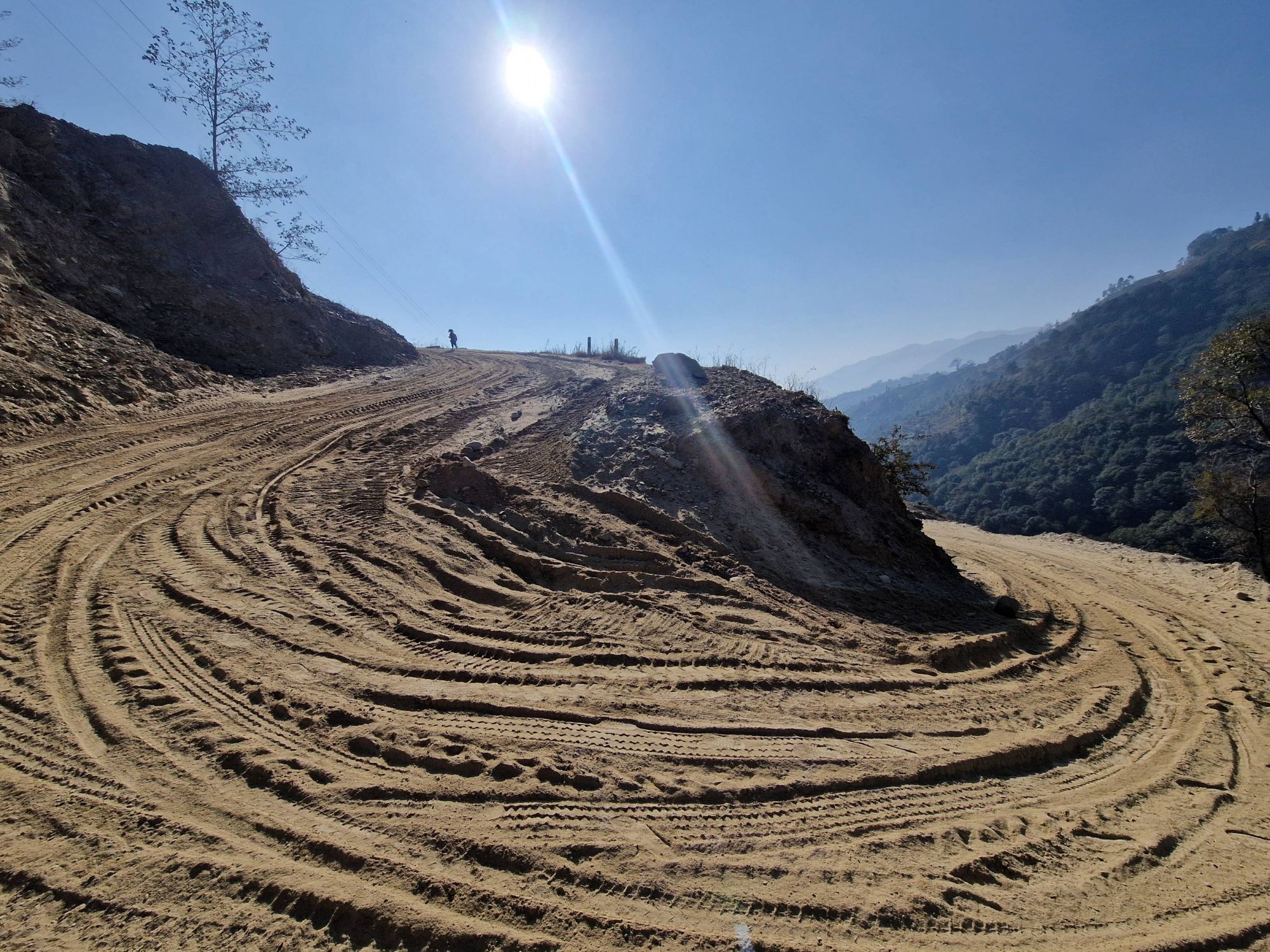 The skin on my face is stinging and prickling with the salty water that beads from every pour. The heat built up behind the buff pulled over my face is unbearable. My t-shirt is wet and sticking to my back where the trickling sweat pools. It all feels disgusting. I jump at a honking horn from a truck as it speeds past on the sharp bend, the dust cloud in its wake showering me with dirty yellow grains.