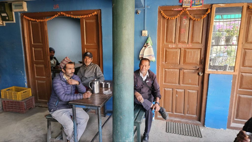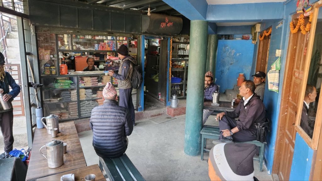 The roller shutters on the tea house came down. The door was locked. We were still waiting. But we figured we would give it 5 more minutes then shuffle off to bed. At 8.30pm, a good two hours after our confusing conversation, a plate of roti and curried vegetables appeared. It was delicious but we were now well past the point of hungry. Thankfully, as is well established by now, Ted can eat as much as a small family, or a horse, or maybe even a small family with a horse! So he dutifully finished the roti and veg, and as is customary here in Nepal, when you have a clean plate, you are offered more, so of course Ted, being British, didn’t want to be rude by refusing, so accepted more – It’s a slippery slope of contrasting cultural nuances. Struggling through his second serving Ted ploughed on, and in true English fashion dutifully left a clean plate only to be offered more. This time he really was too full and he kindly declined, but then the hot milk we thought we had declined also appeared for both of us. We laughed to each other – so much confusion. We couldn’t remember the last time we had had warm milk – maybe childhood – so we sipped it down, trusting the old-fashioned wisdom about it helping a good night’s sleep were true.