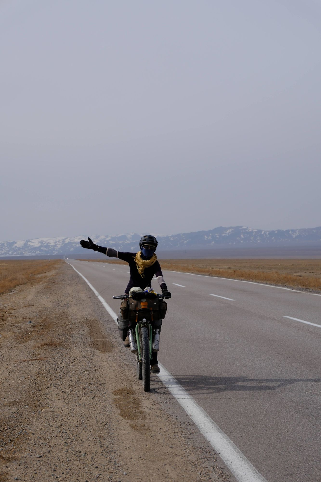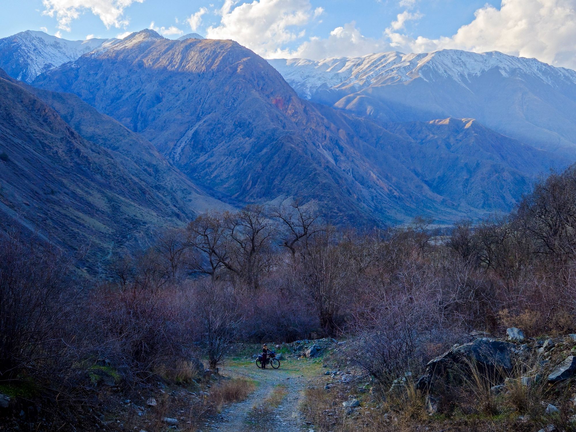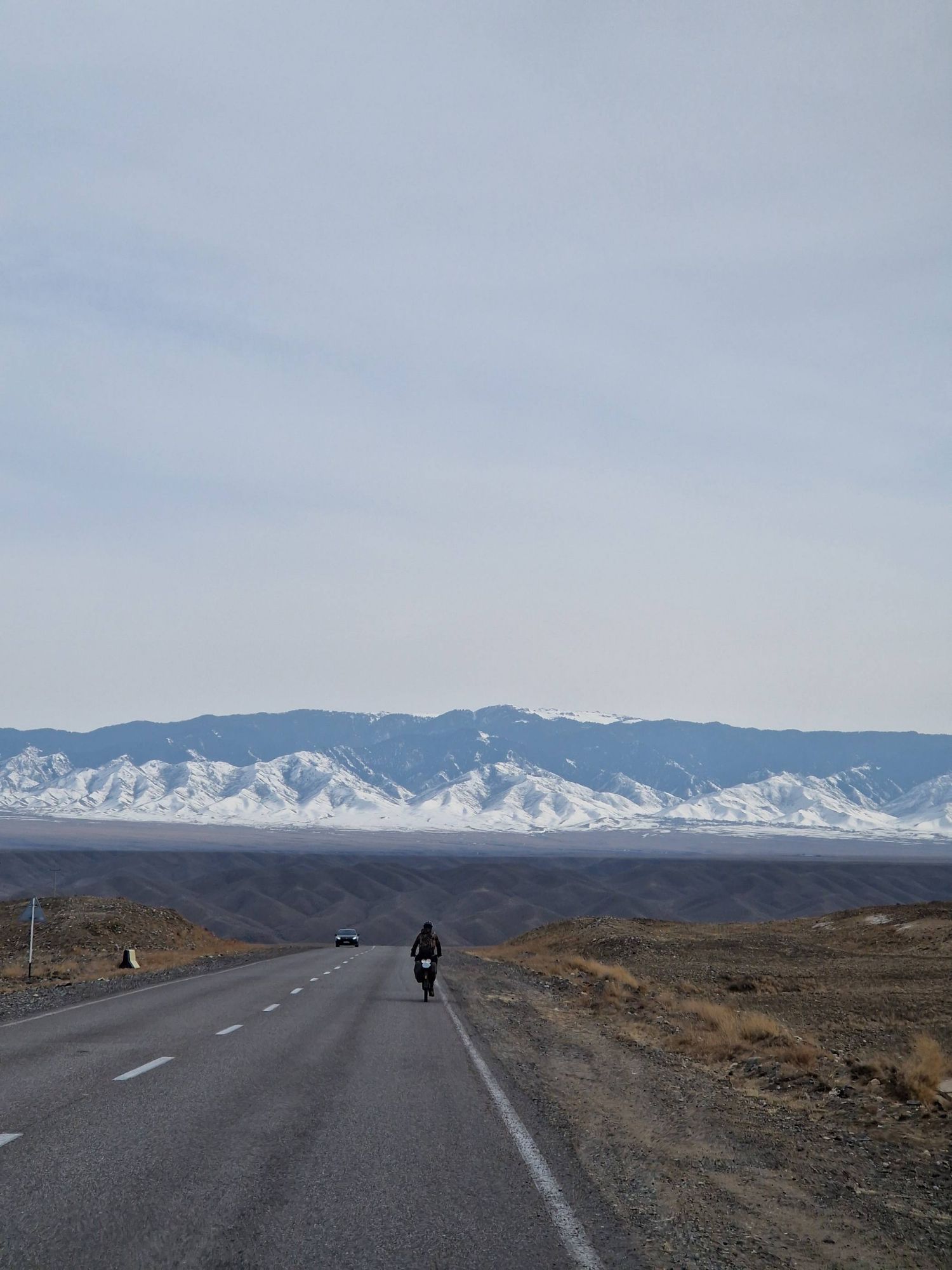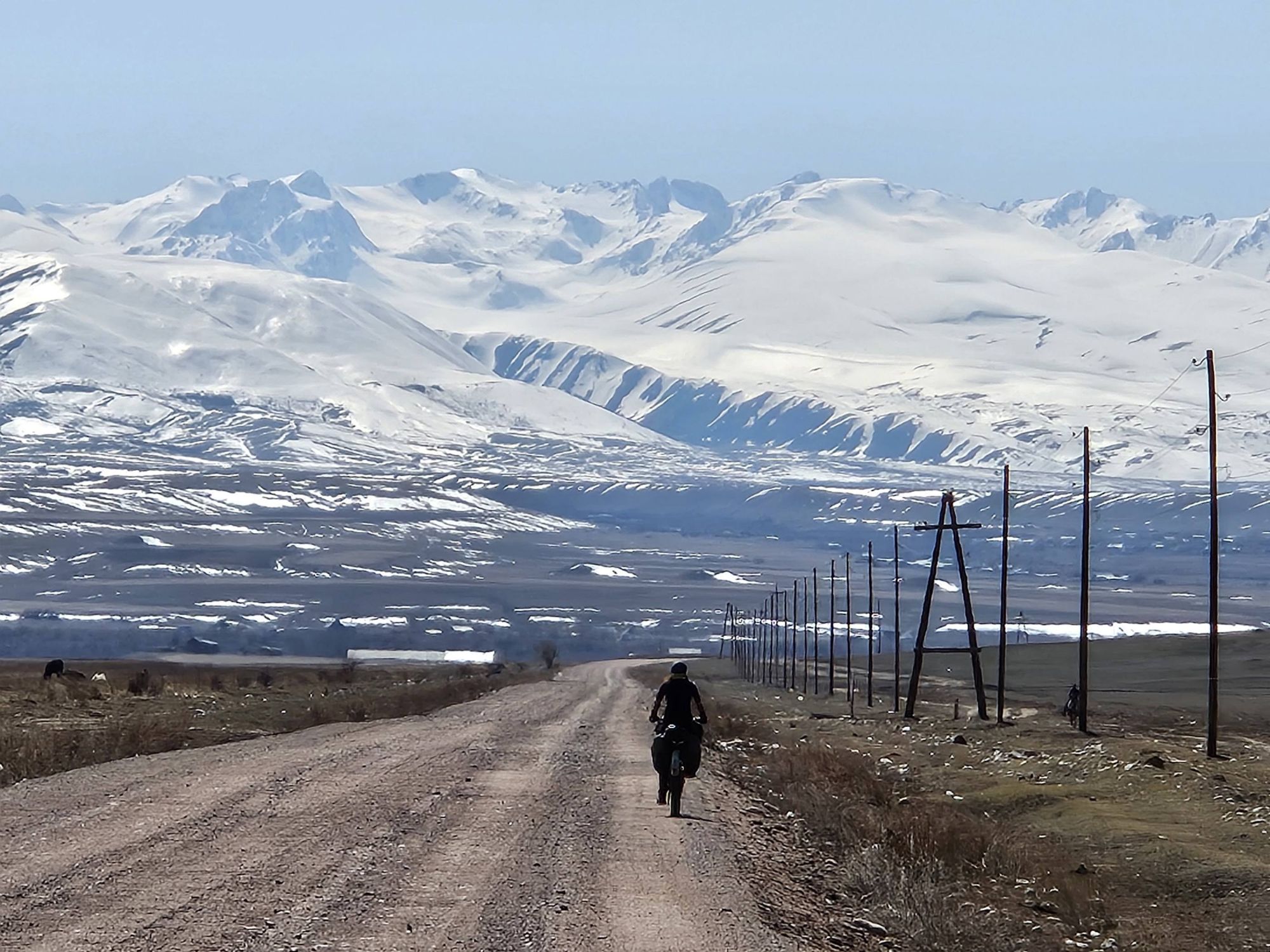 During the days, the landscapes of the open Kazakhstan steppe, with the backdrop of the snow covered Tien Shan mountains was an impressive sight. We were cycling through vast, barren scrubland, the earth still frozen solid. There was no sign of the lush green grasses that carpet the land in the warmer months. It was as if the whole place was frozen in time, just waiting for the warmth of Spring to arrive. And with every day, we crept a little closer to the looming Tien Shan mountains, closer to their imposing presence. We knew our route had us heading into those mountains and with every glance up towards their peaks the feeling of excited nervousness grew within us.