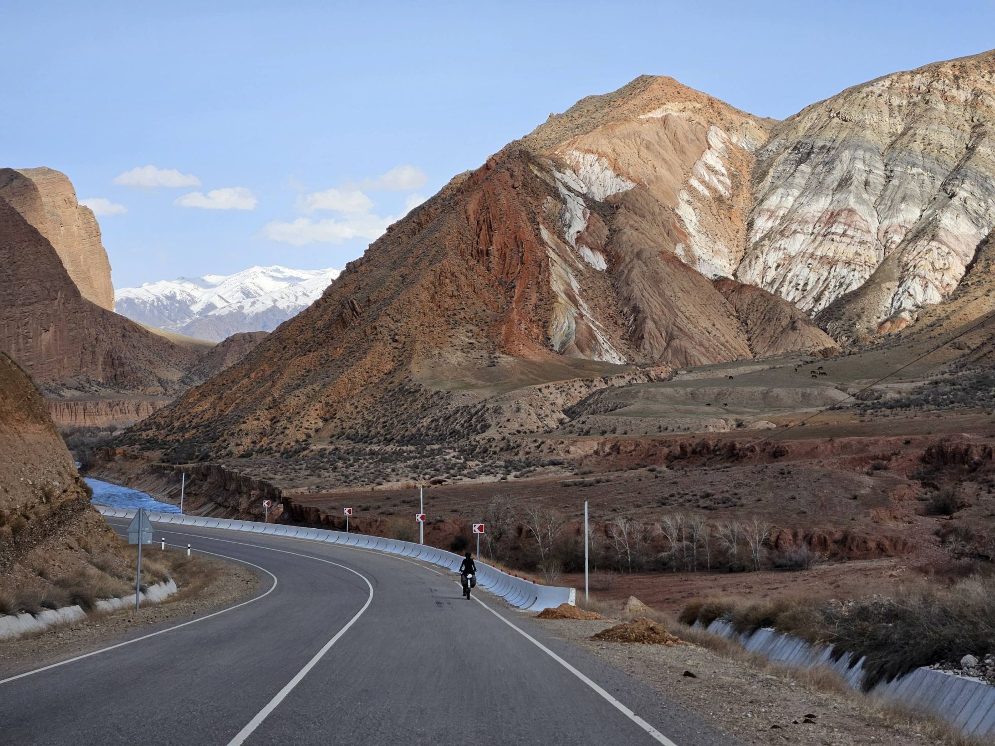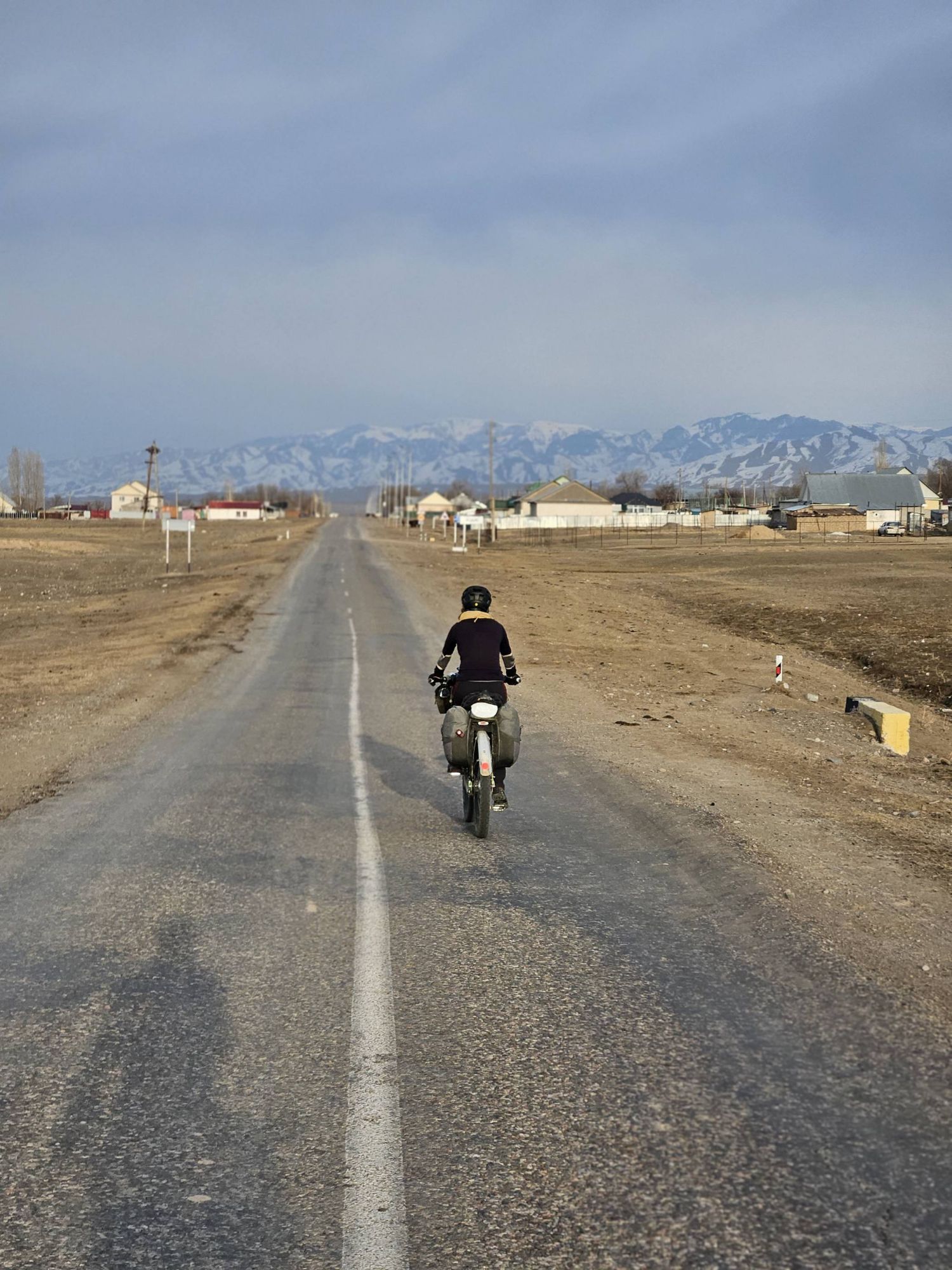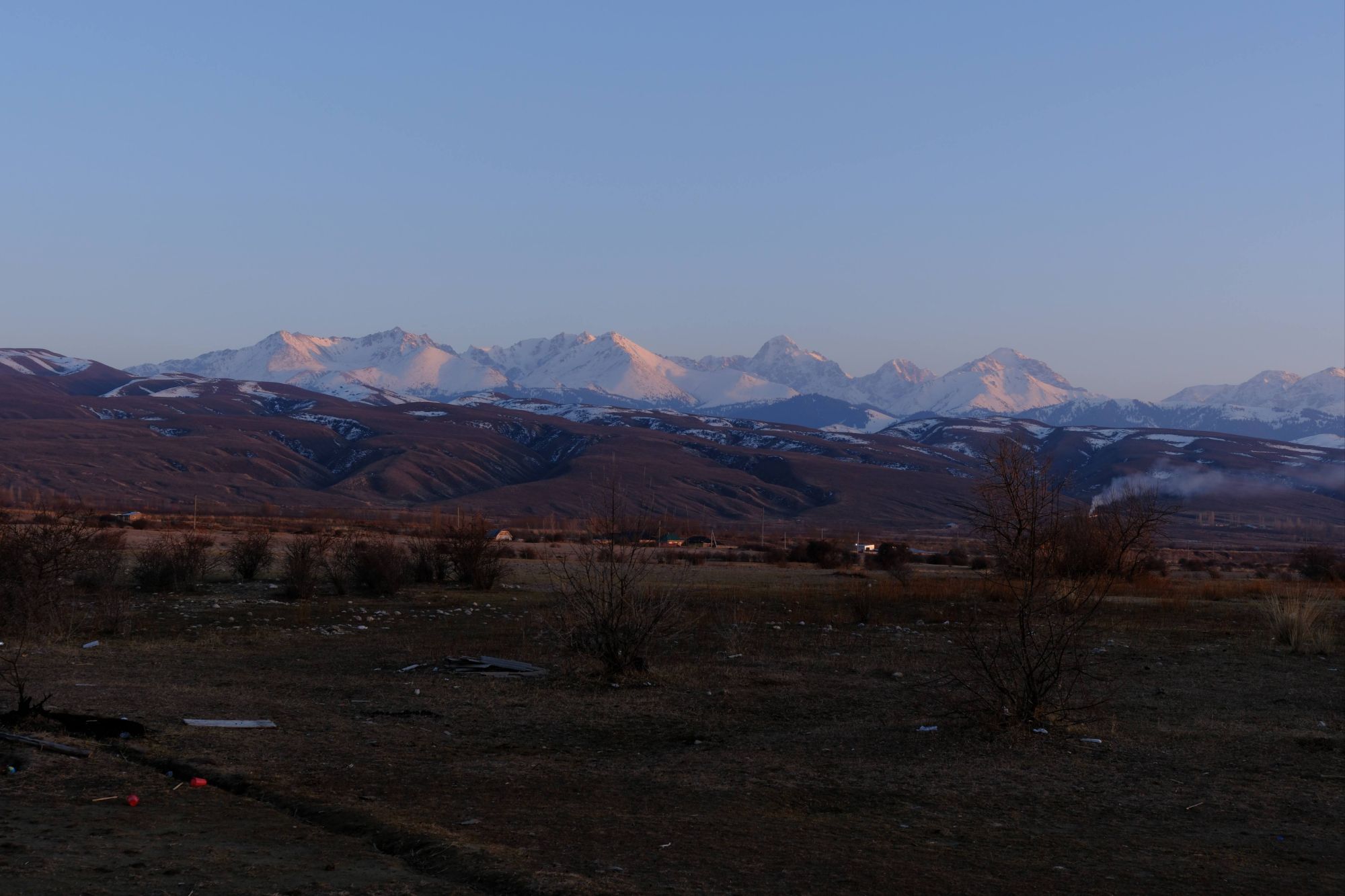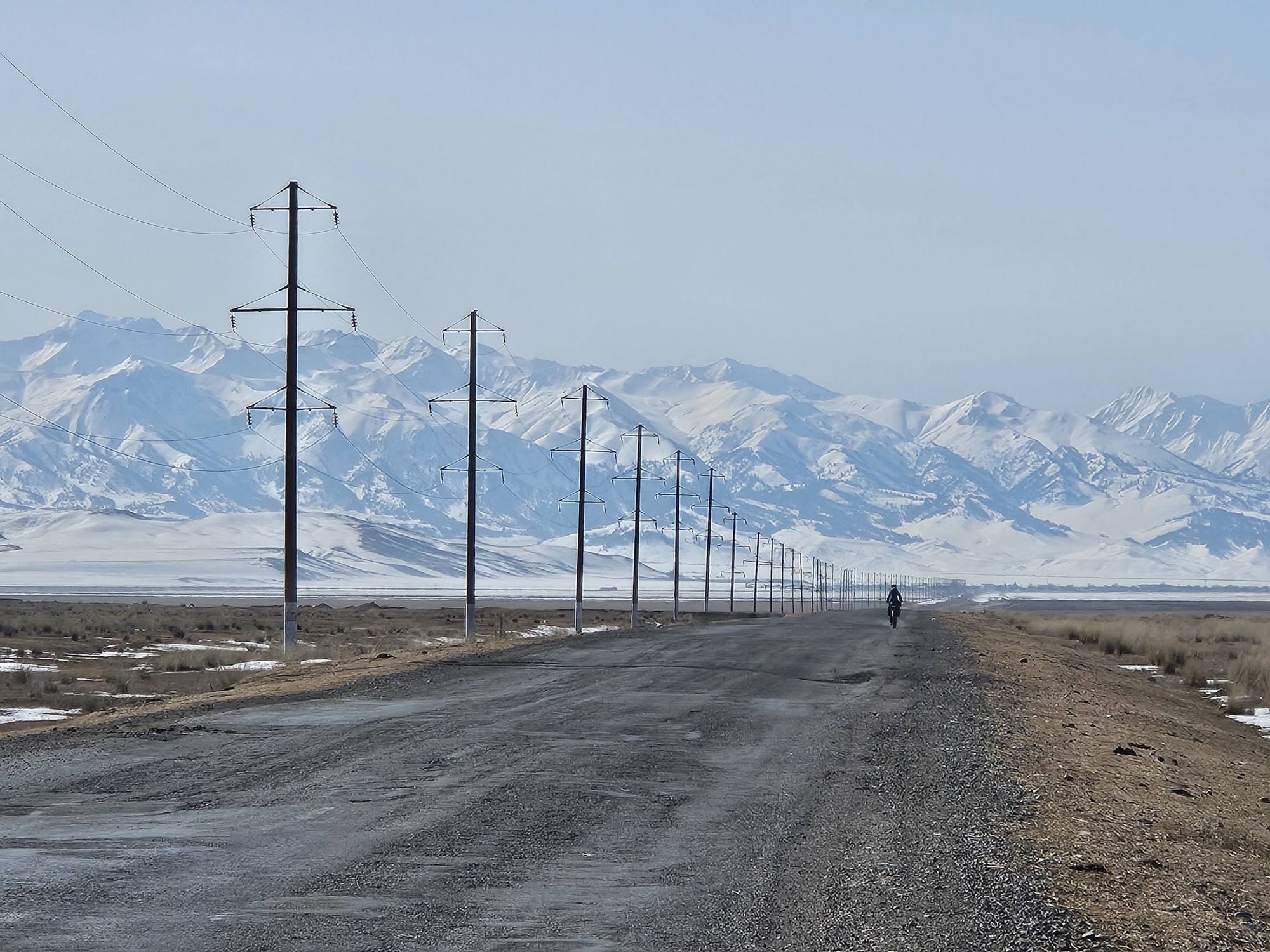During the days, the landscapes of the open Kazakhstan steppe, with the backdrop of the snow covered Tien Shan mountains was an impressive sight. We were cycling through vast, barren scrubland, the earth still frozen solid. There was no sign of the lush green grasses that carpet the land in the warmer months. It was as if the whole place was frozen in time, just waiting for the warmth of Spring to arrive. And with every day, we crept a little closer to the looming Tien Shan mountains, closer to their imposing presence. We knew our route had us heading into those mountains and with every glance up towards their peaks the feeling of excited nervousness grew within us.
