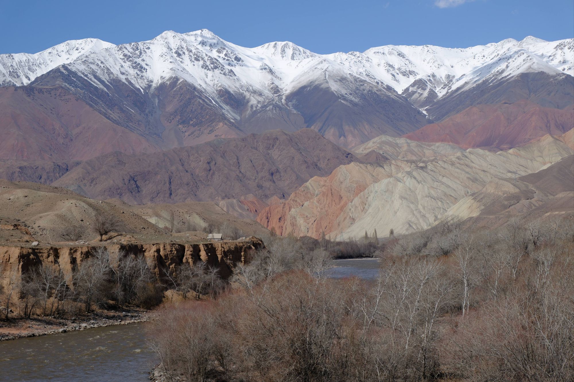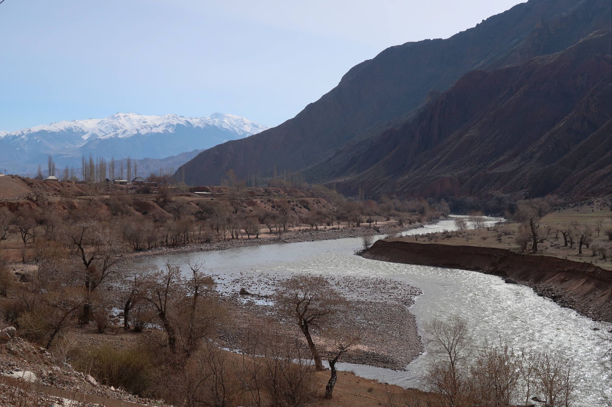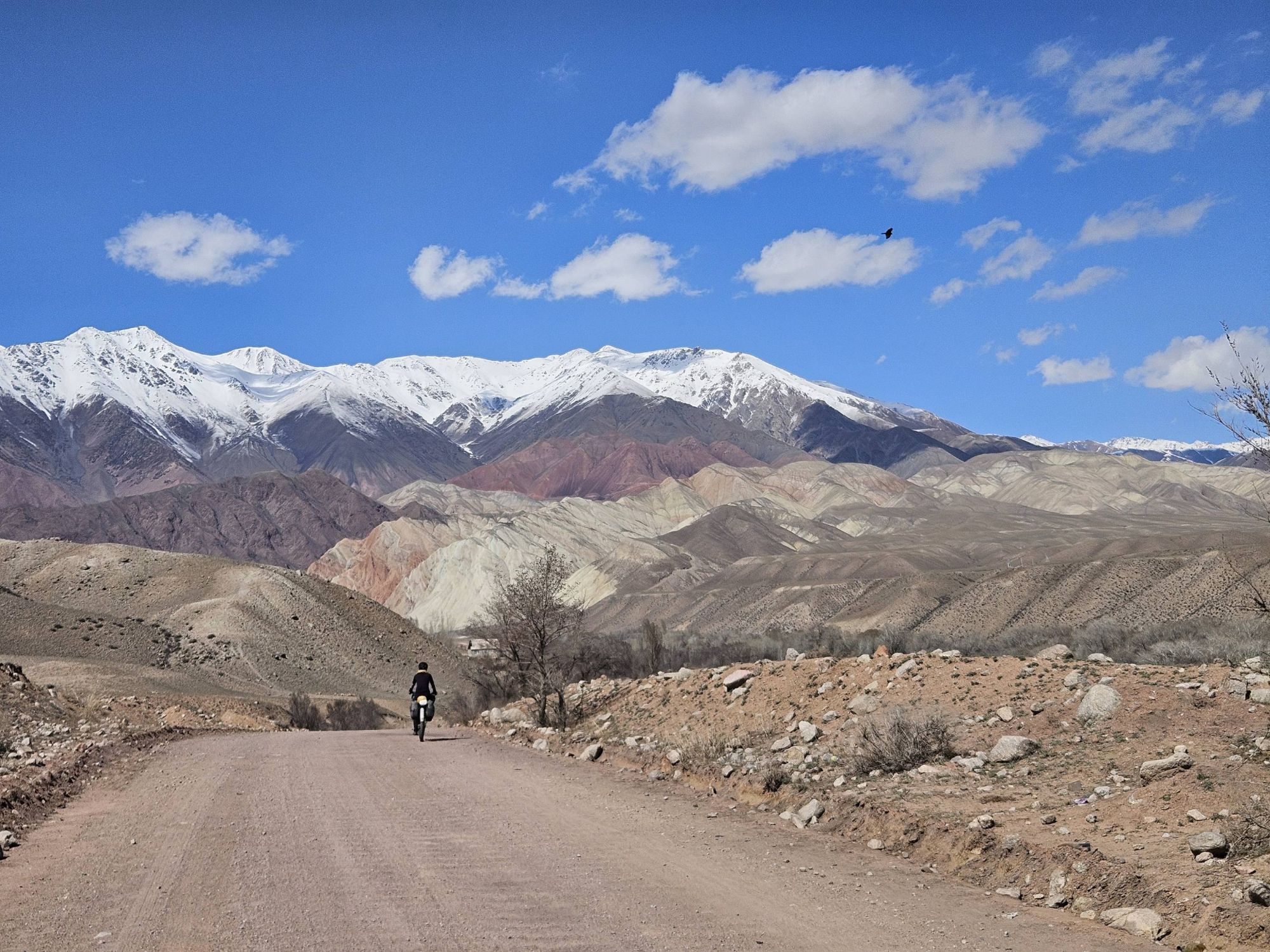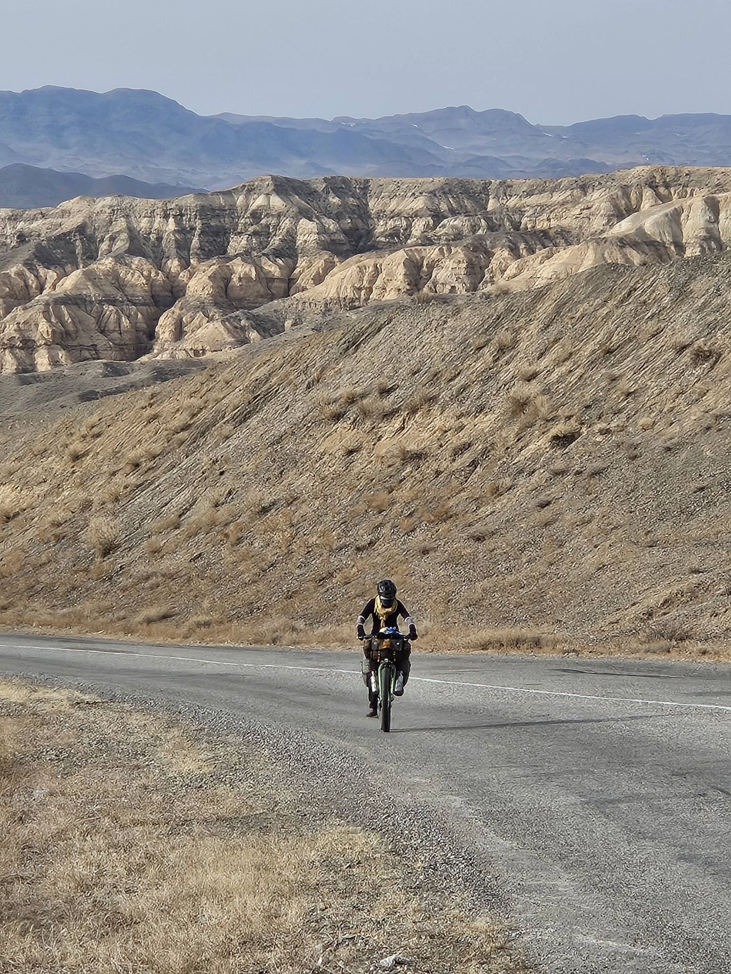 During the days, the landscapes of the open Kazakhstan steppe, with the backdrop of the snow covered Tien Shan mountains was an impressive sight. We were cycling through vast, barren scrubland, the earth still frozen solid. There was no sign of the lush green grasses that carpet the land in the warmer months. It was as if the whole place was frozen in time, just waiting for the warmth of Spring to arrive. And with every day, we crept a little closer to the looming Tien Shan mountains, closer to their imposing presence. We knew our route had us heading into those mountains and with every glance up towards their peaks the feeling of excited nervousness grew within us.