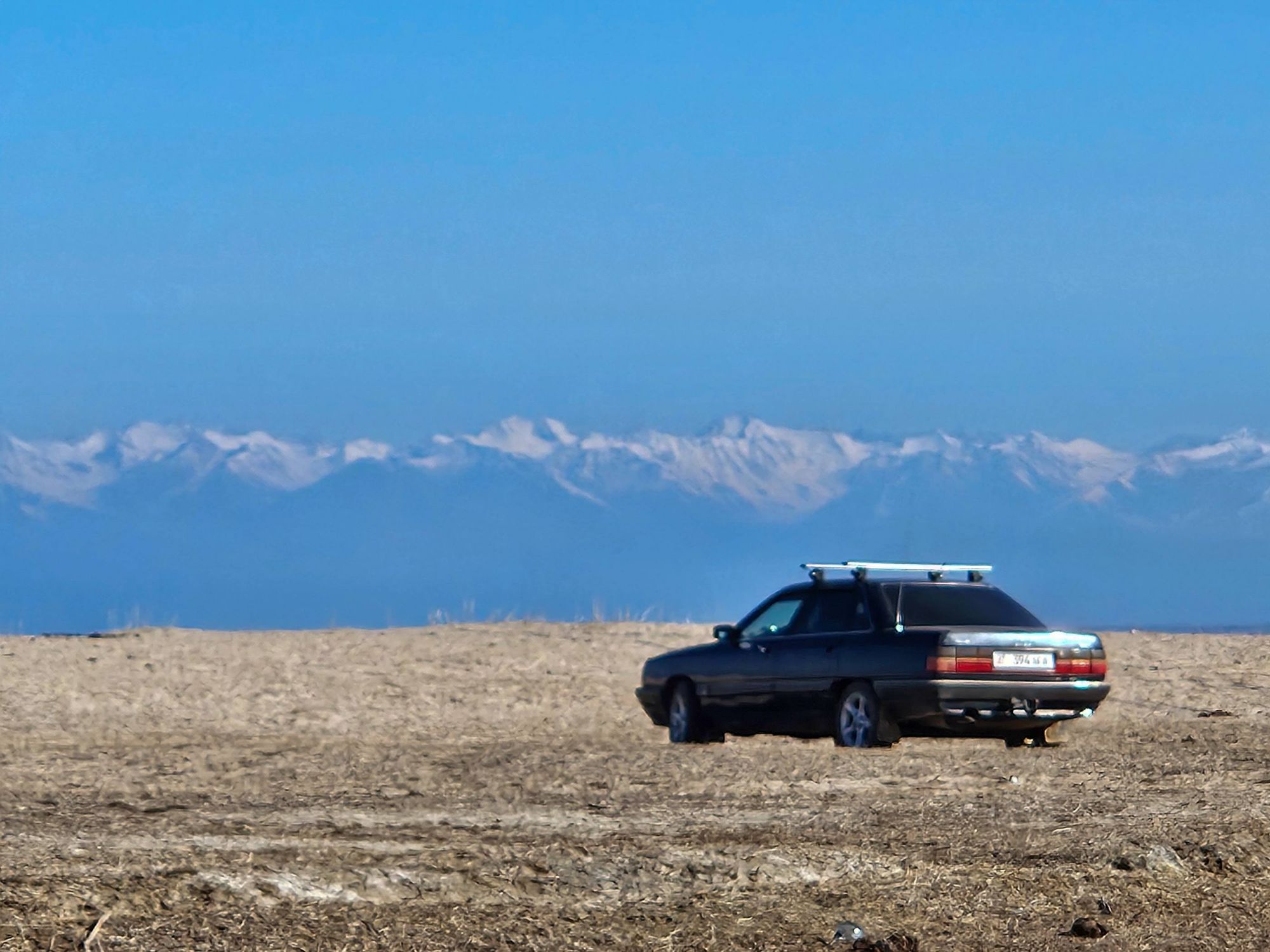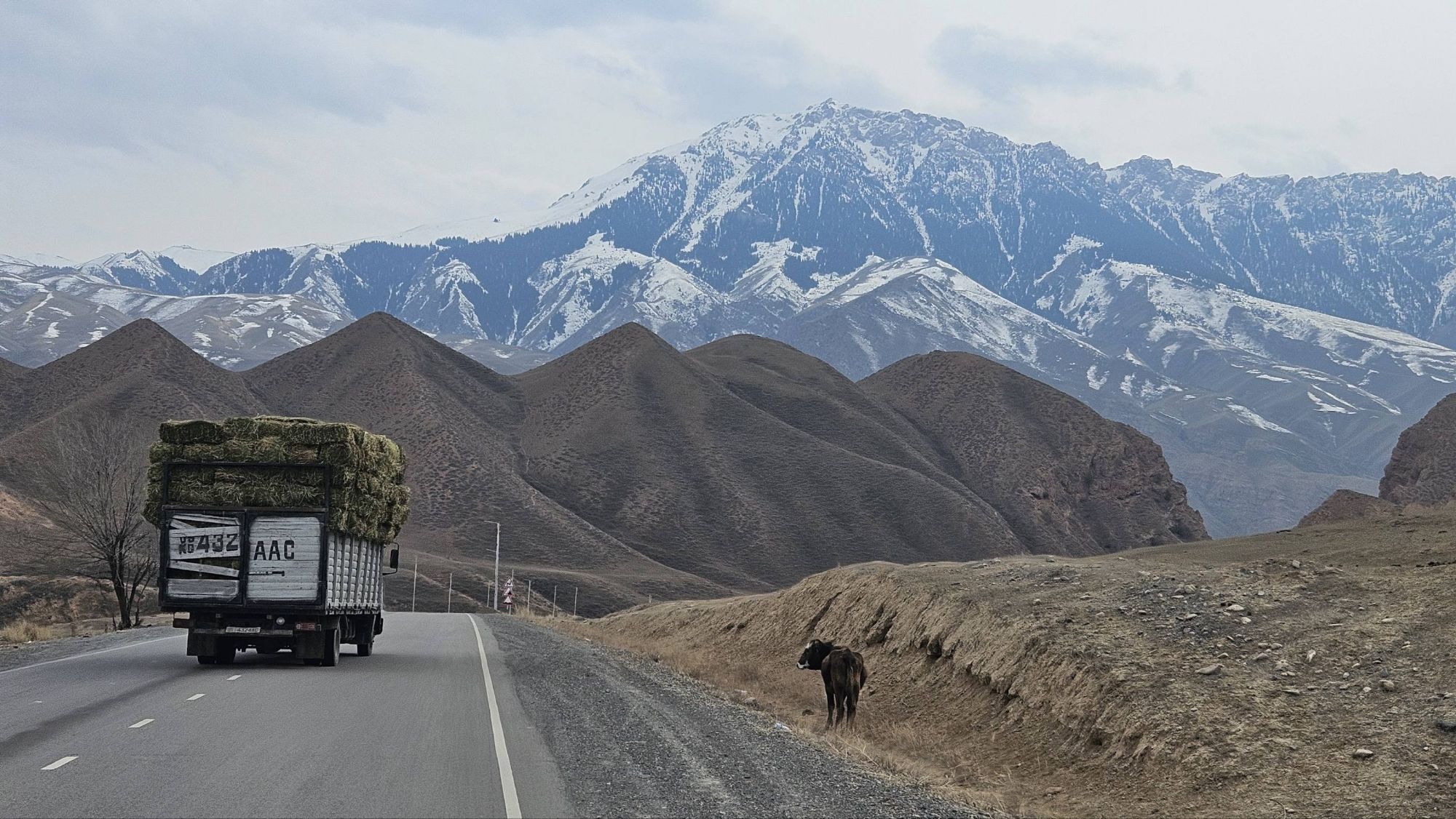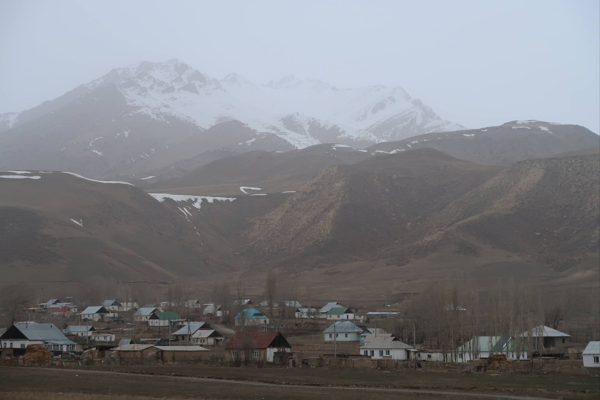 Climbing ever closer to the border with Kyrgyzstan, the snowline of the mountain peaks was getting nearer and nearer. We knew that the road over the border between Kazakhstan and Kyrgyzstan was supposedly kept open all year but at 2000m elevation, at the tail end of winter, we also knew that the conditions can change quickly. We kept an eye on the weather forecast and timed our crossing the pass into Kyrgyzstan, on the one day gap between two weather fronts. We were lucky. There was a fresh thick layer of snow on all the peaks surrounding the pass, the road itself was busier with horses than it was vehicles, the border guards were snoozing when we arrived, there was some serious snowdrift across the road, but it was open and we passed through with no problem – another stamp in the passports.